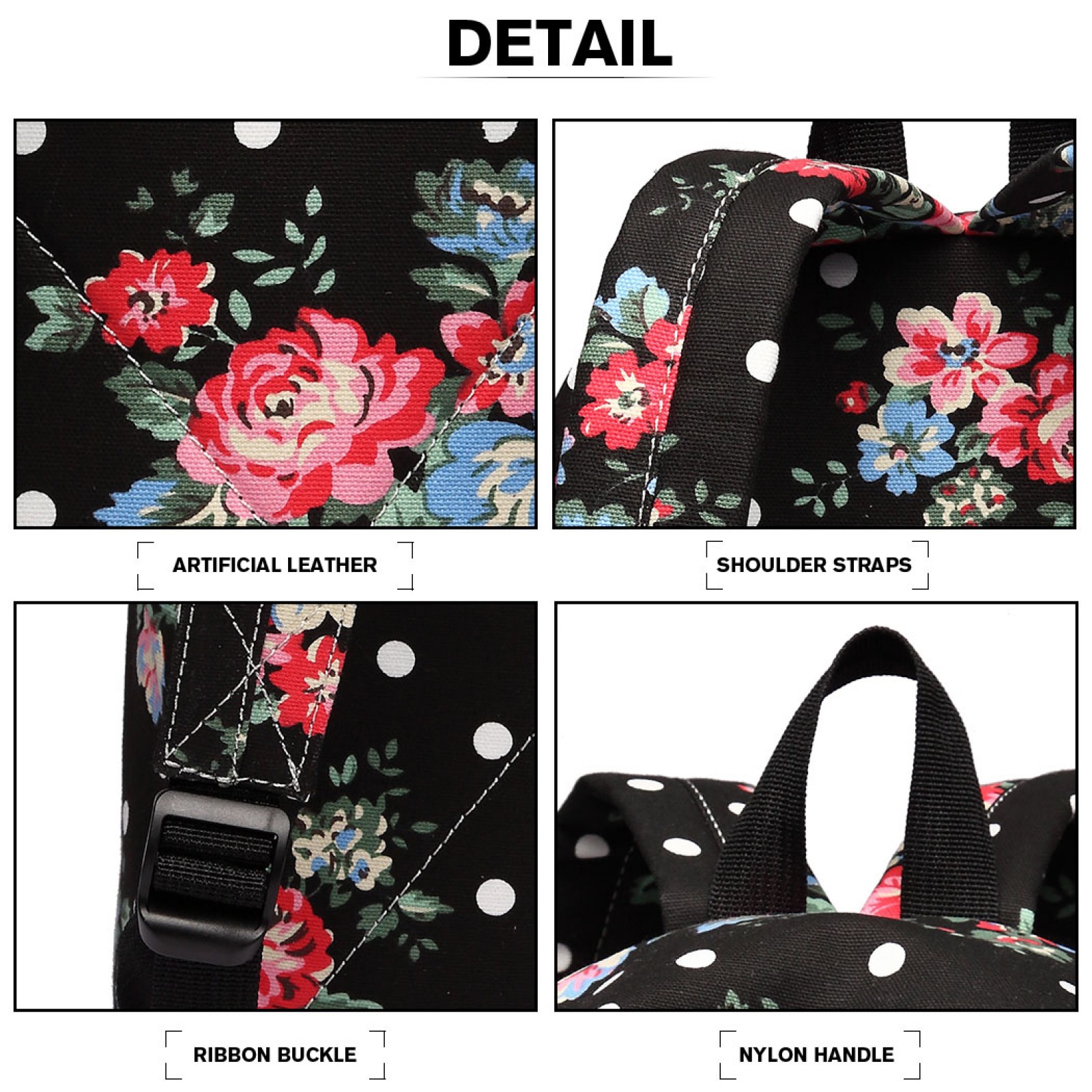 E1401F - Miss Lulu Large Backpack Flower Polka Dot - Black