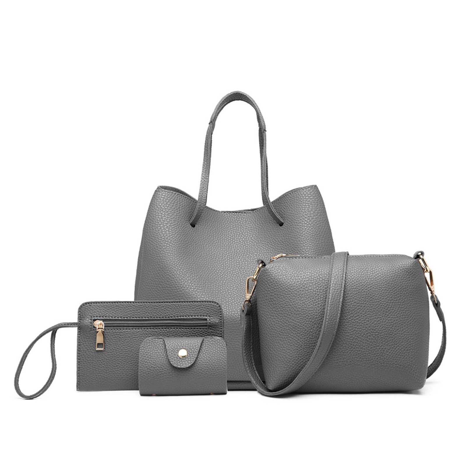 LB1937 - MISS LULU 4 PIECE SET SHOULDER TOTE HANDBAG - GREY