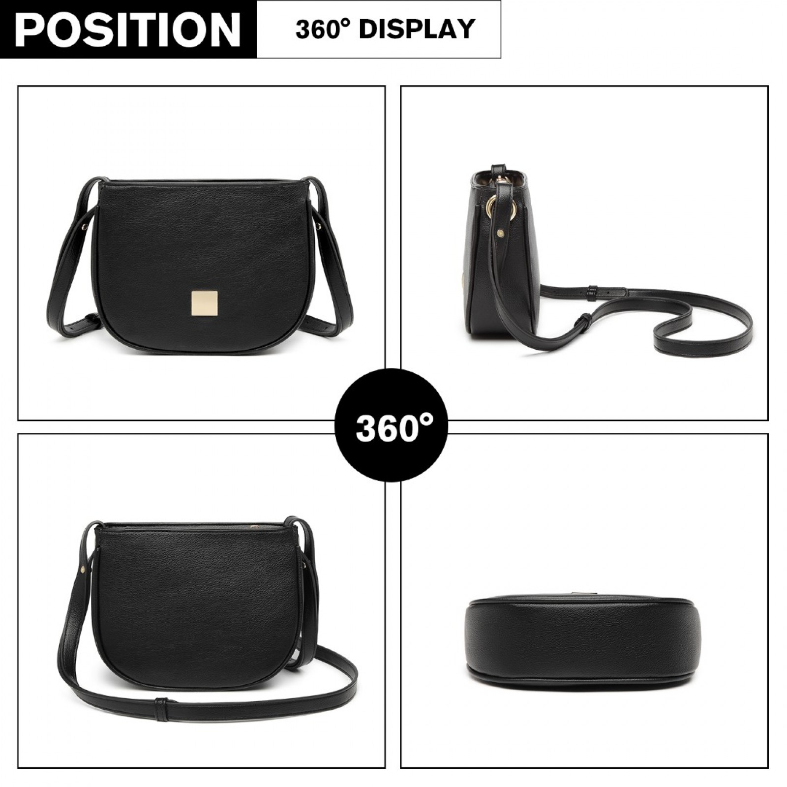 LB2102 - Miss Lulu Simple Cross-Body Handbag - Black