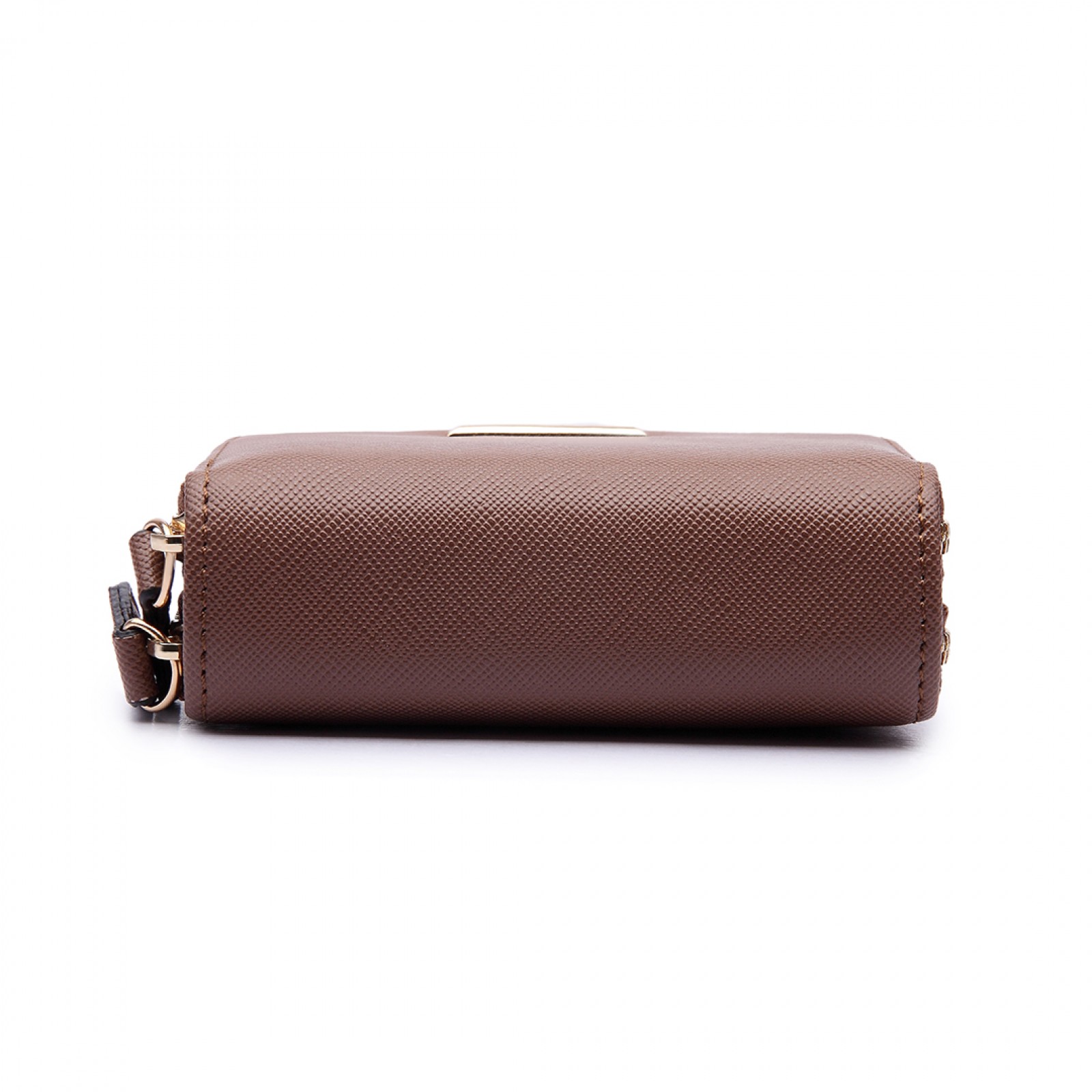 LP6680 - Miss Lulu Leather Look Double Zipped Coin Purse Brown