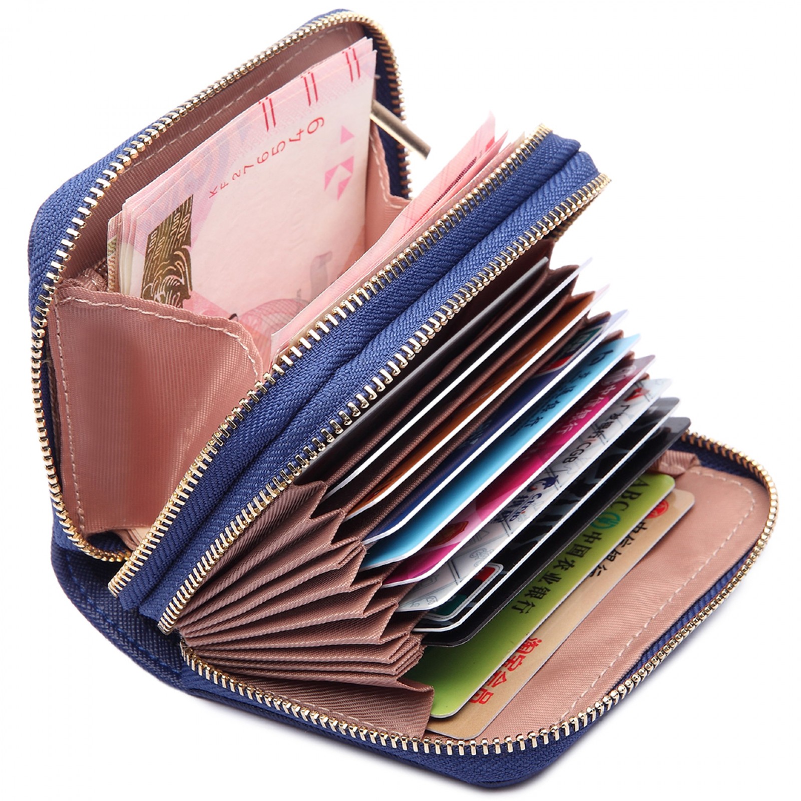LP6680 - Miss Lulu Leather Look Double Zipped Coin Purse Navy