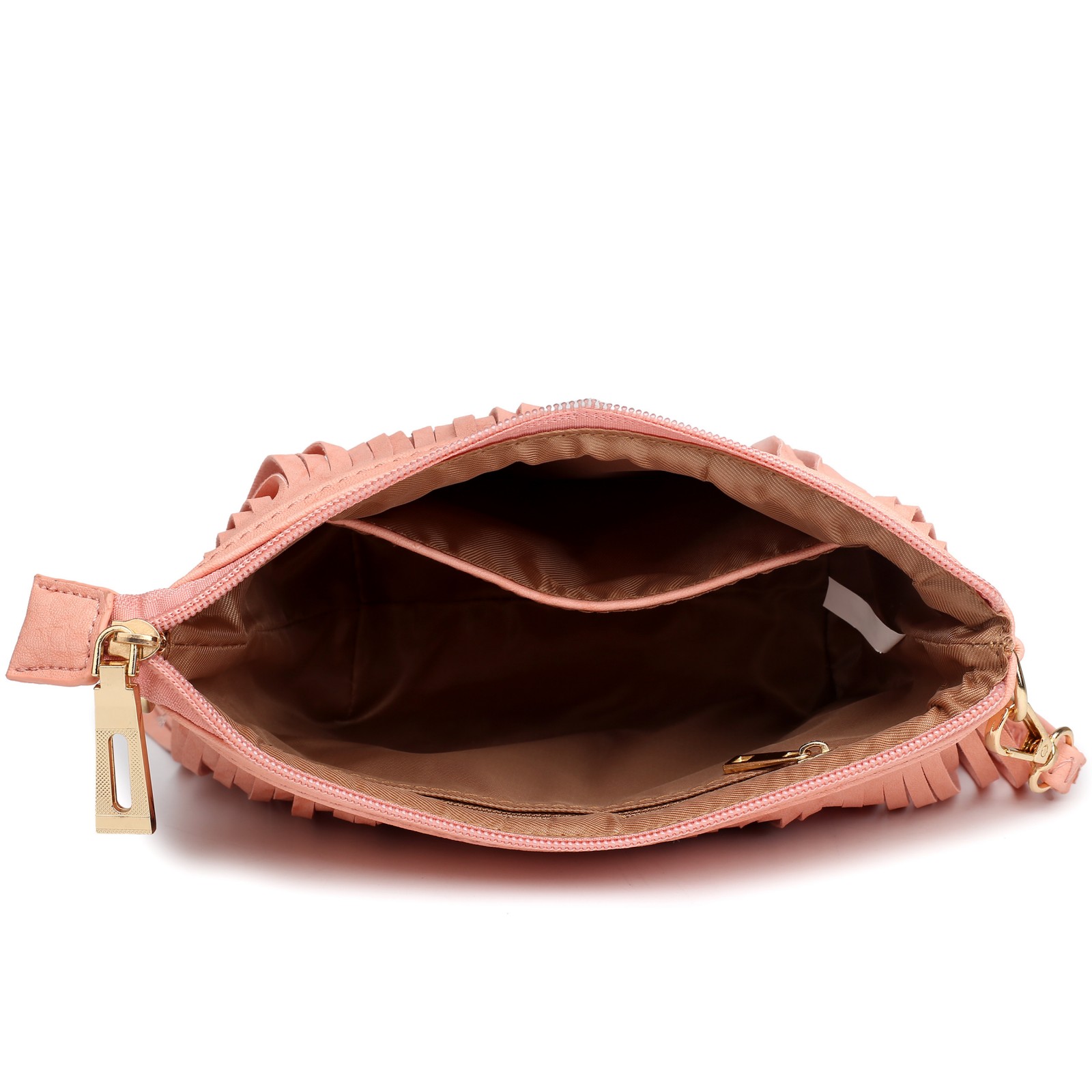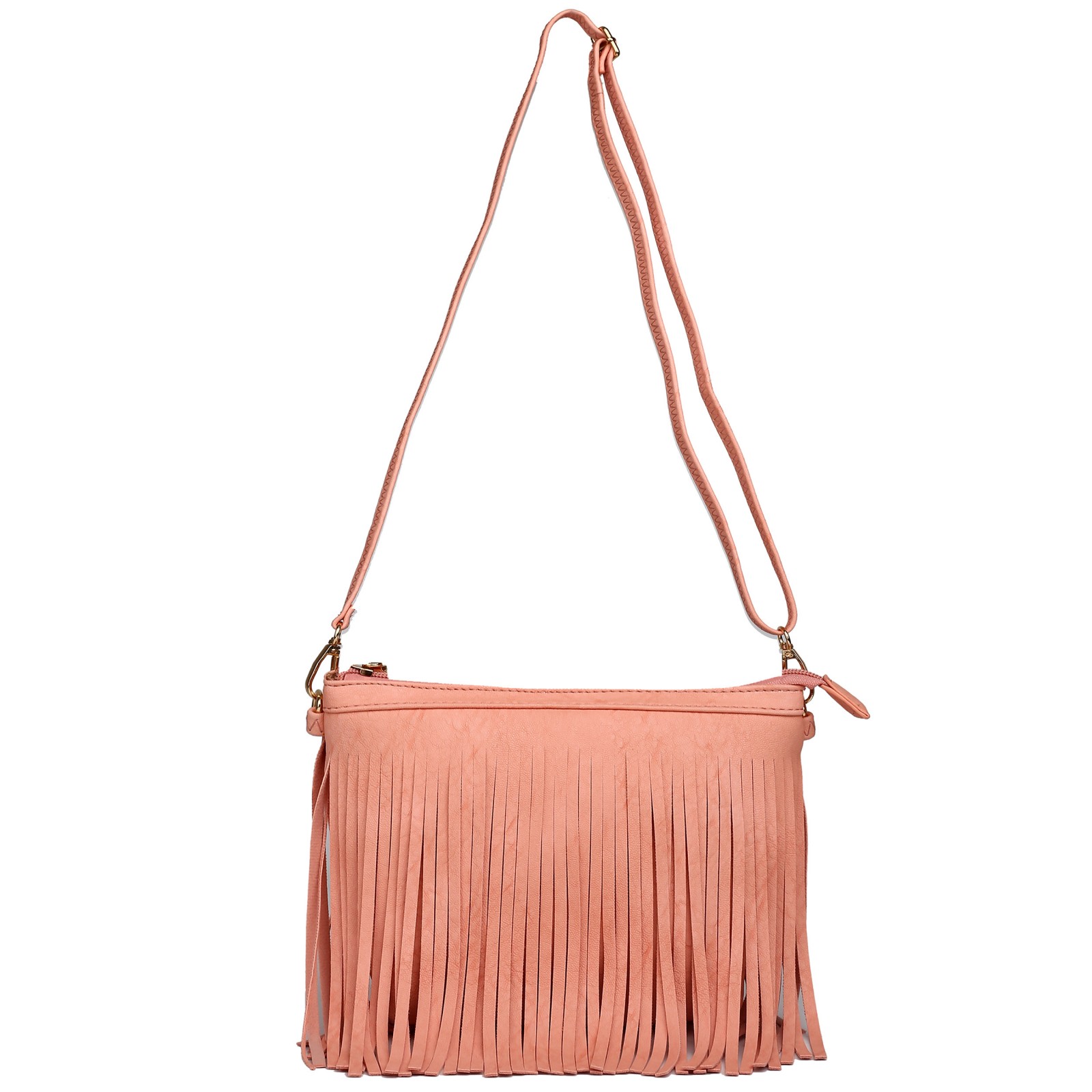 LA1626 - Miss Lulu Leather Look Small Cross Body Fringe Bag Pink
