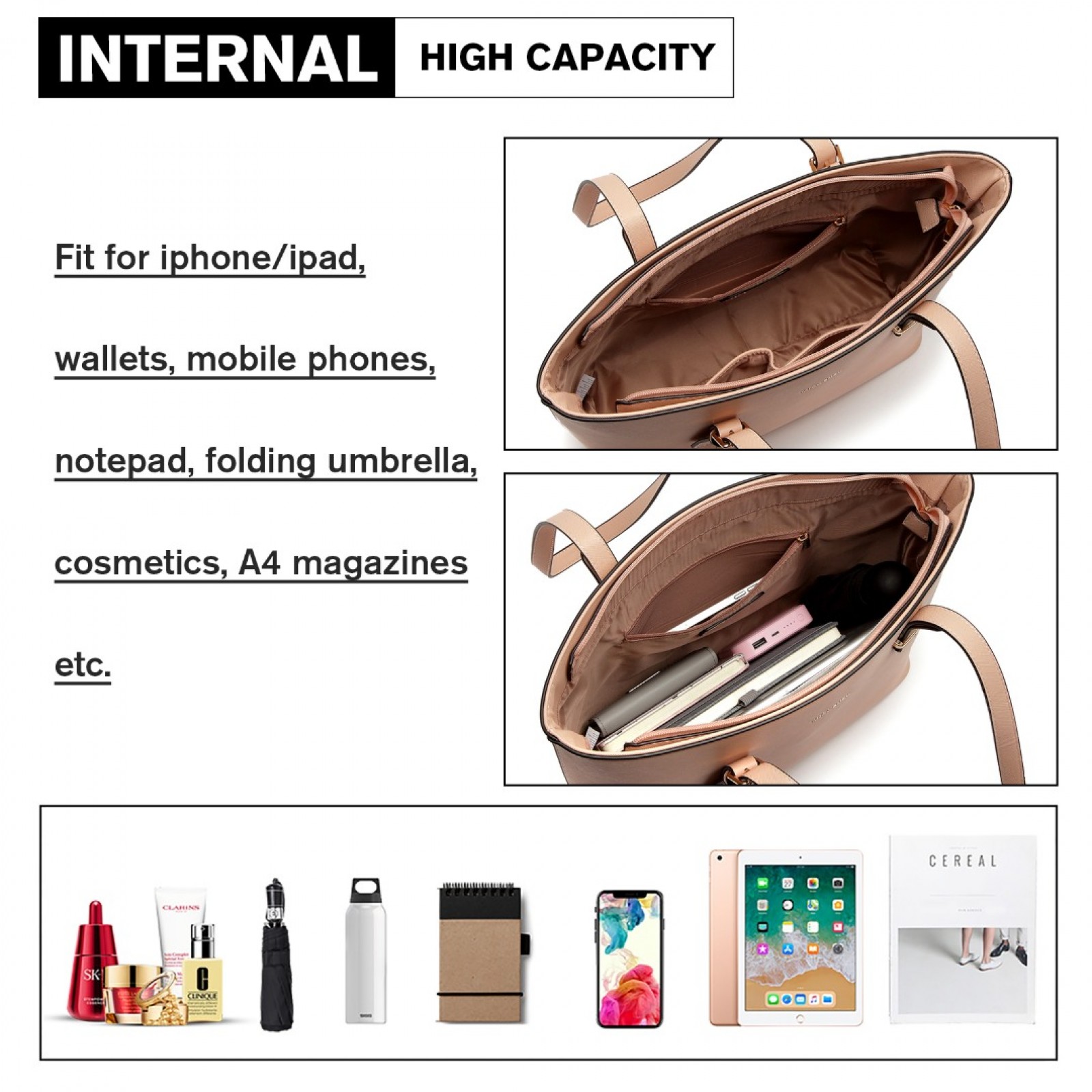 LG2110 - Miss Lulu 4 Piece Classic Sleek Handbag Set - Pink