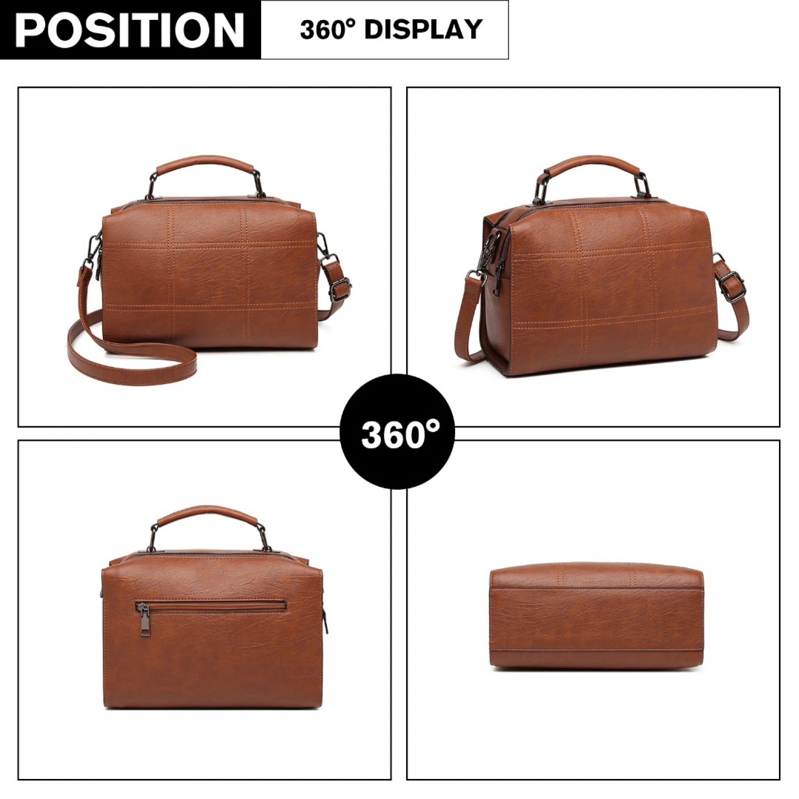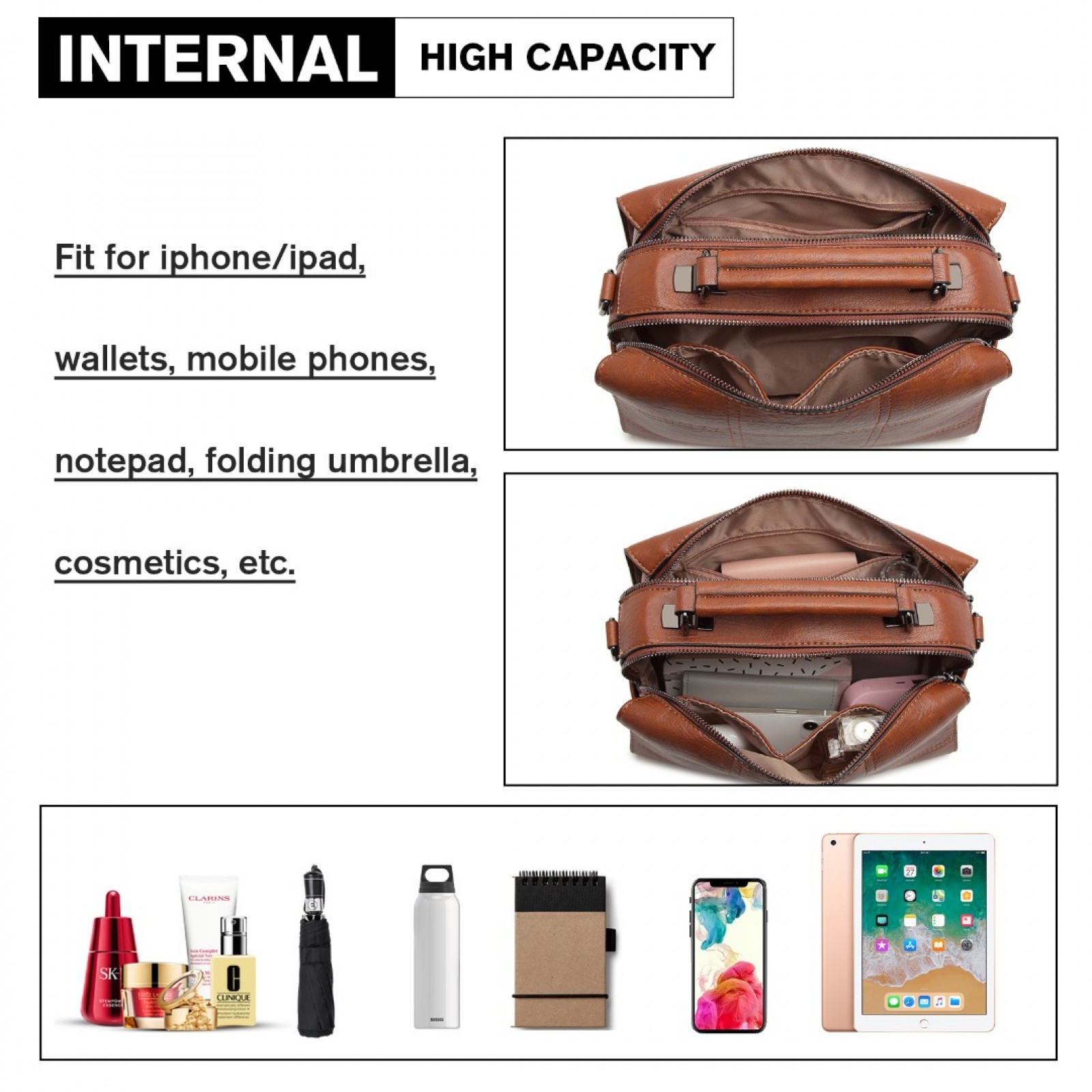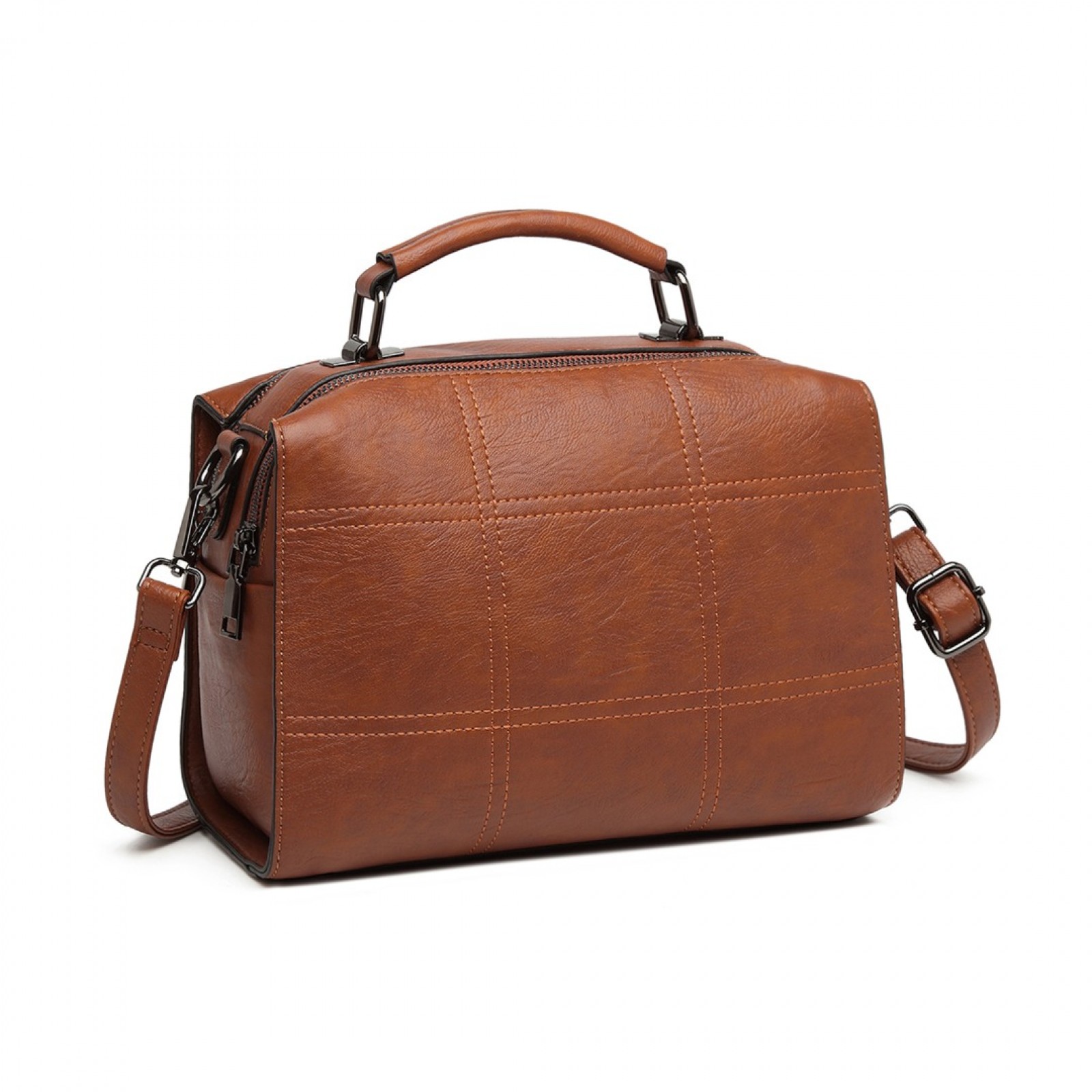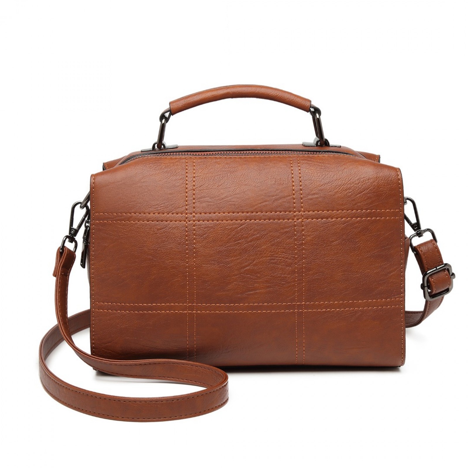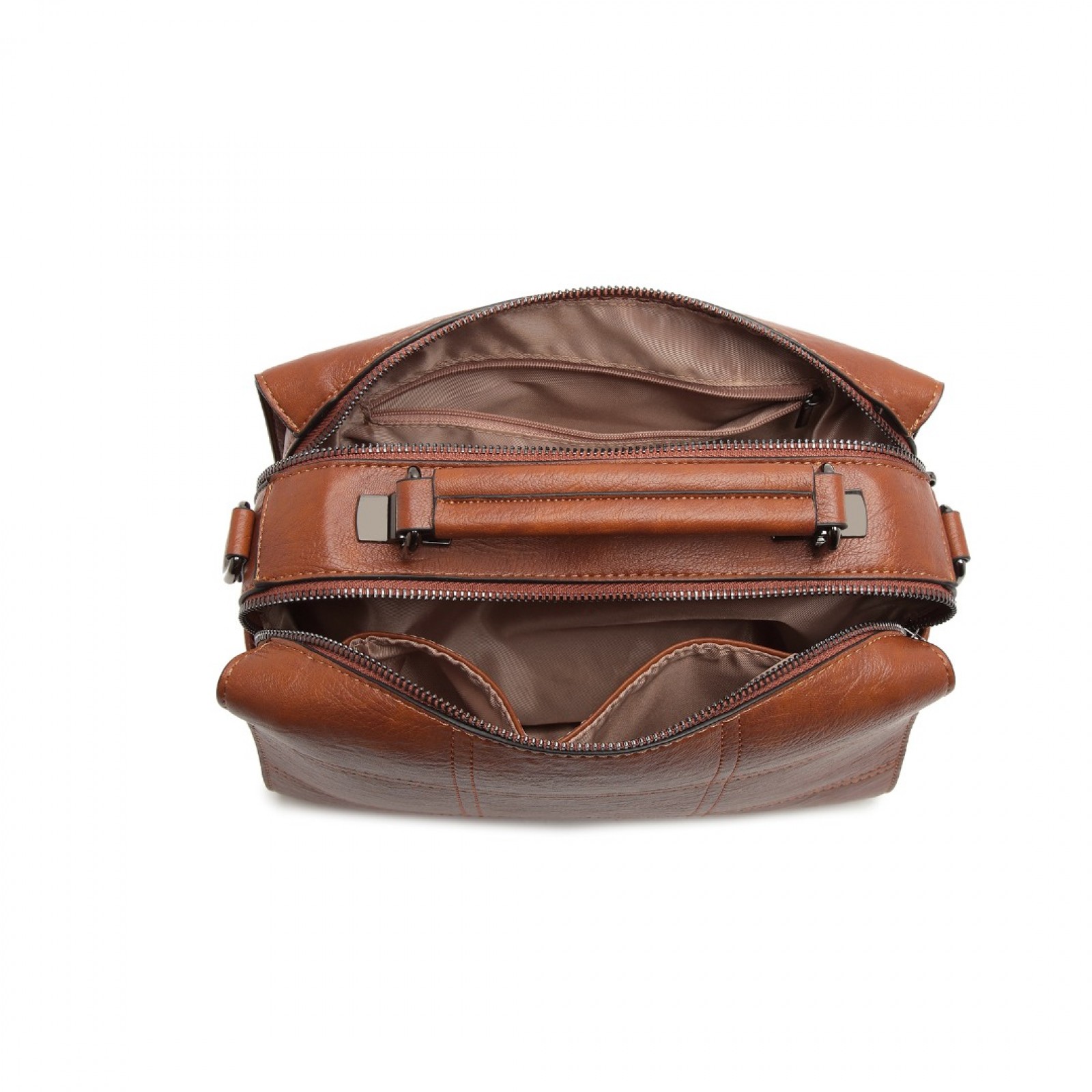 LH2067 - Miss Lulu Multi-Compartment Cross-Body Handbag - Brown