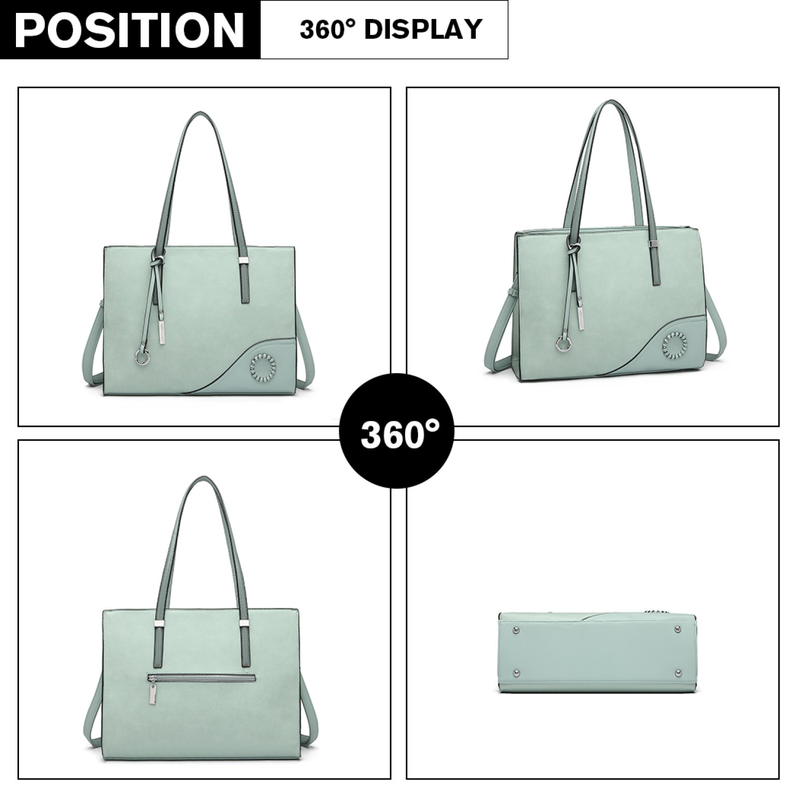 LN1909 - Miss Lulu Glossy Detail Shoulder Bag - Green