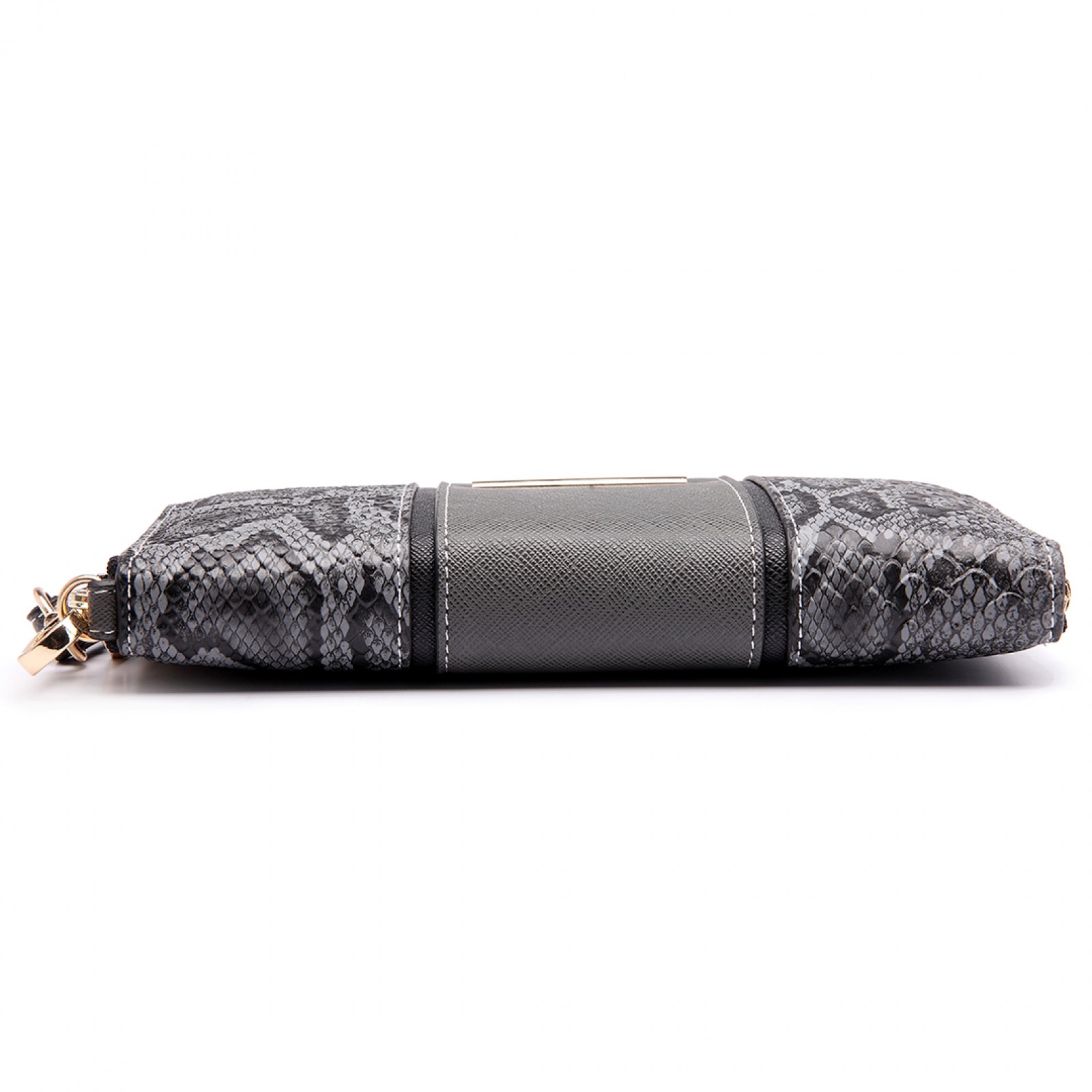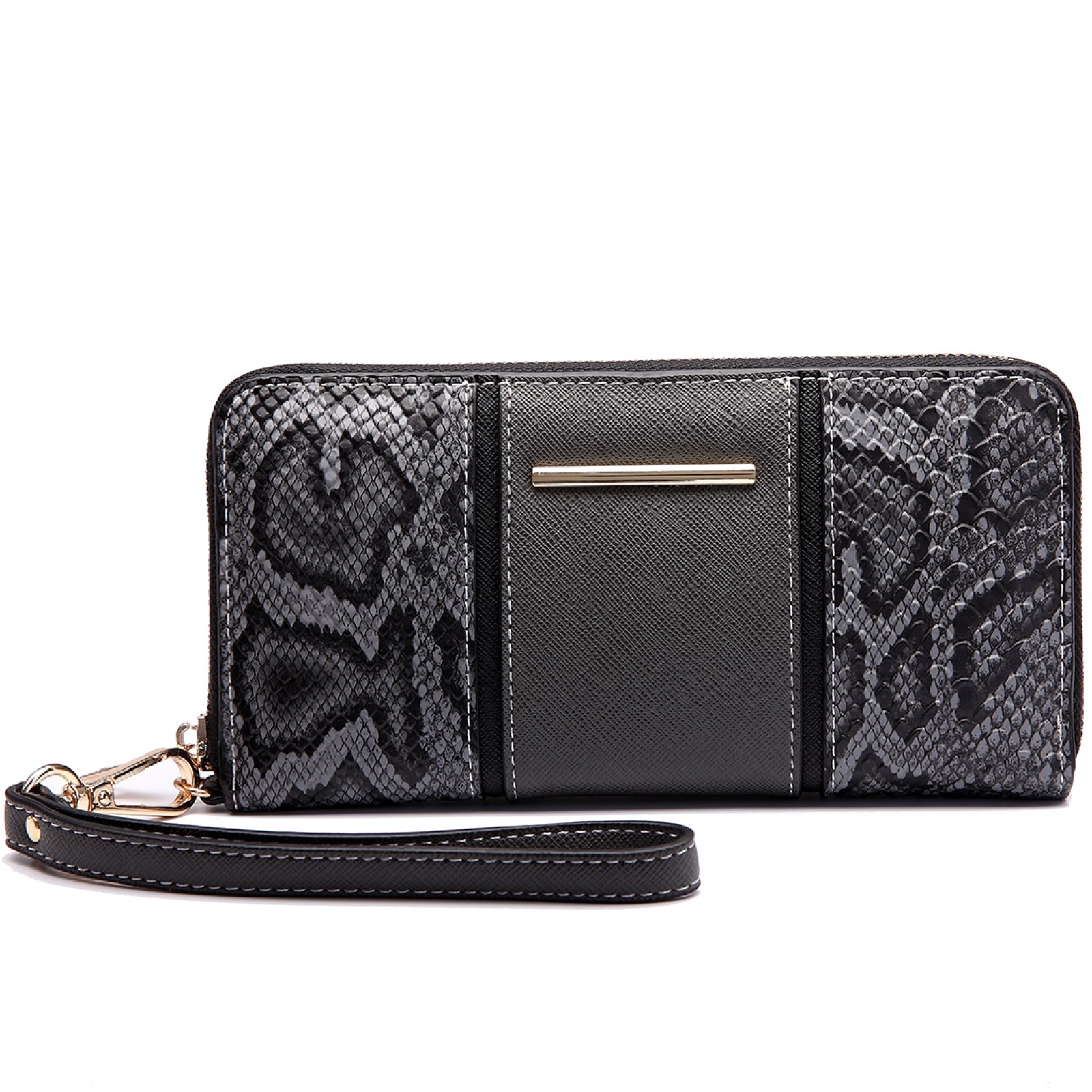 LP6681 - Miss Lulu Snake Print Panel Long Purse Grey