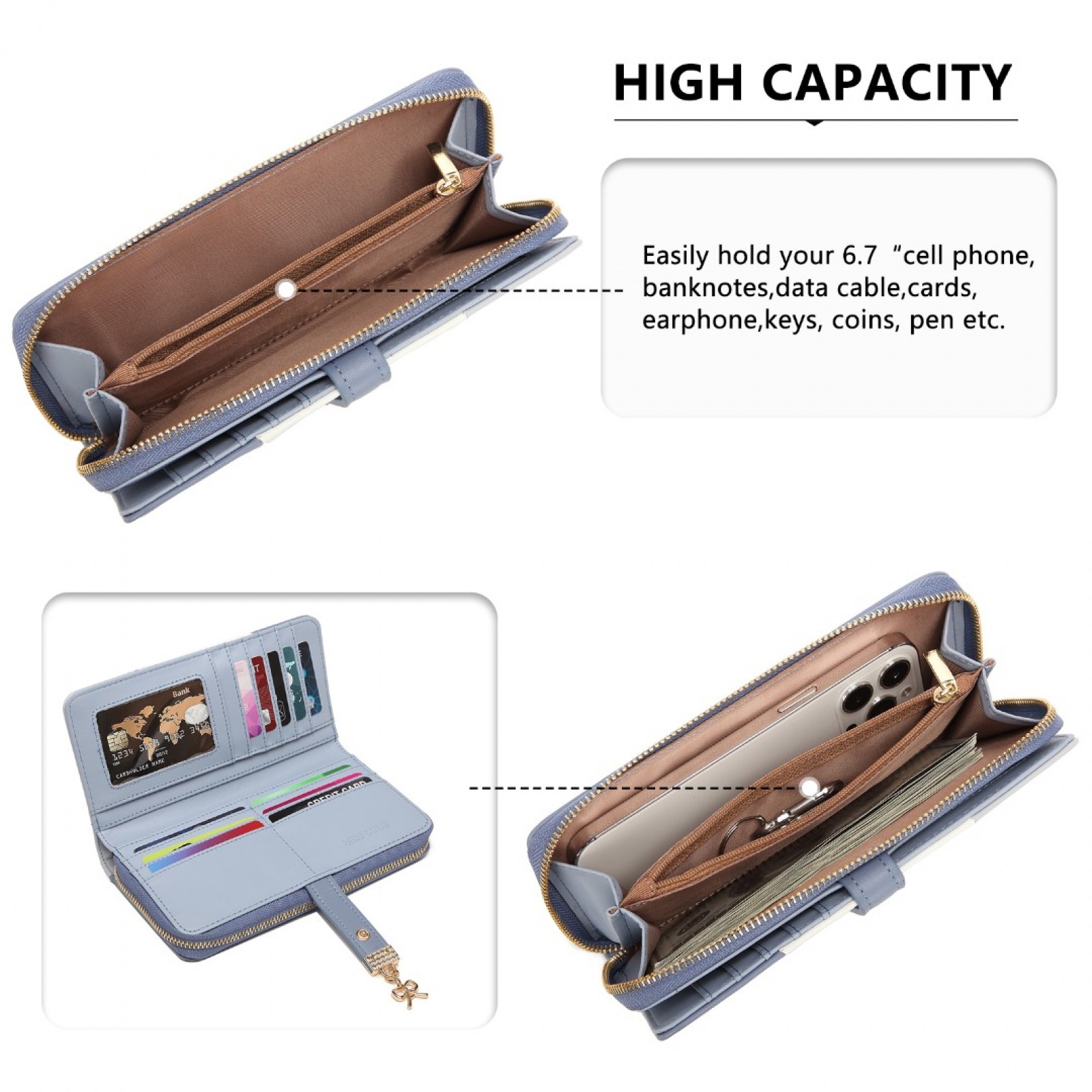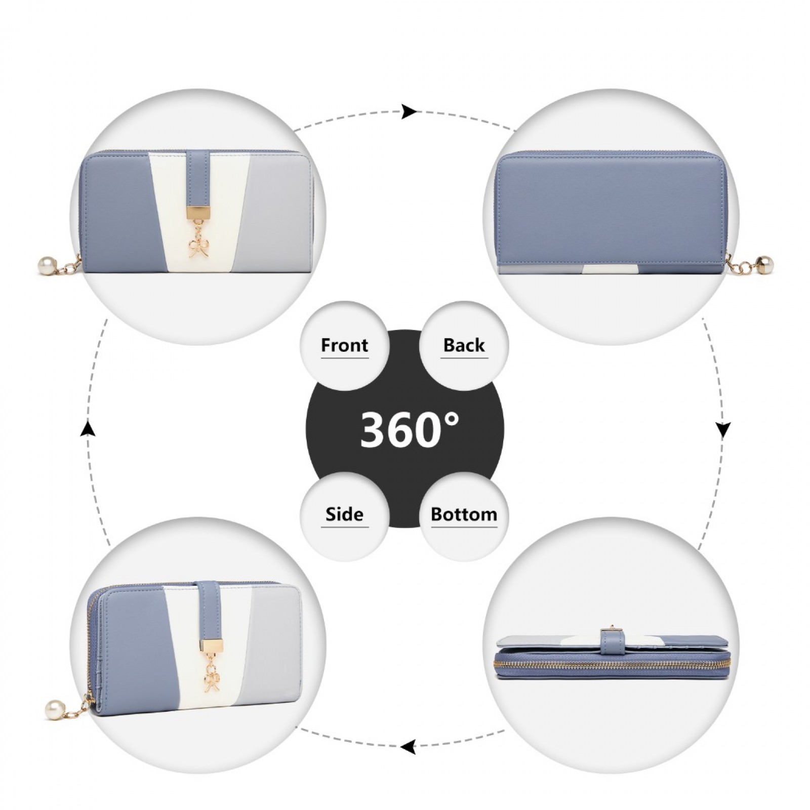 LP2030 - Miss Lulu Tri Colour Women's Leather Look Purse - Azure
