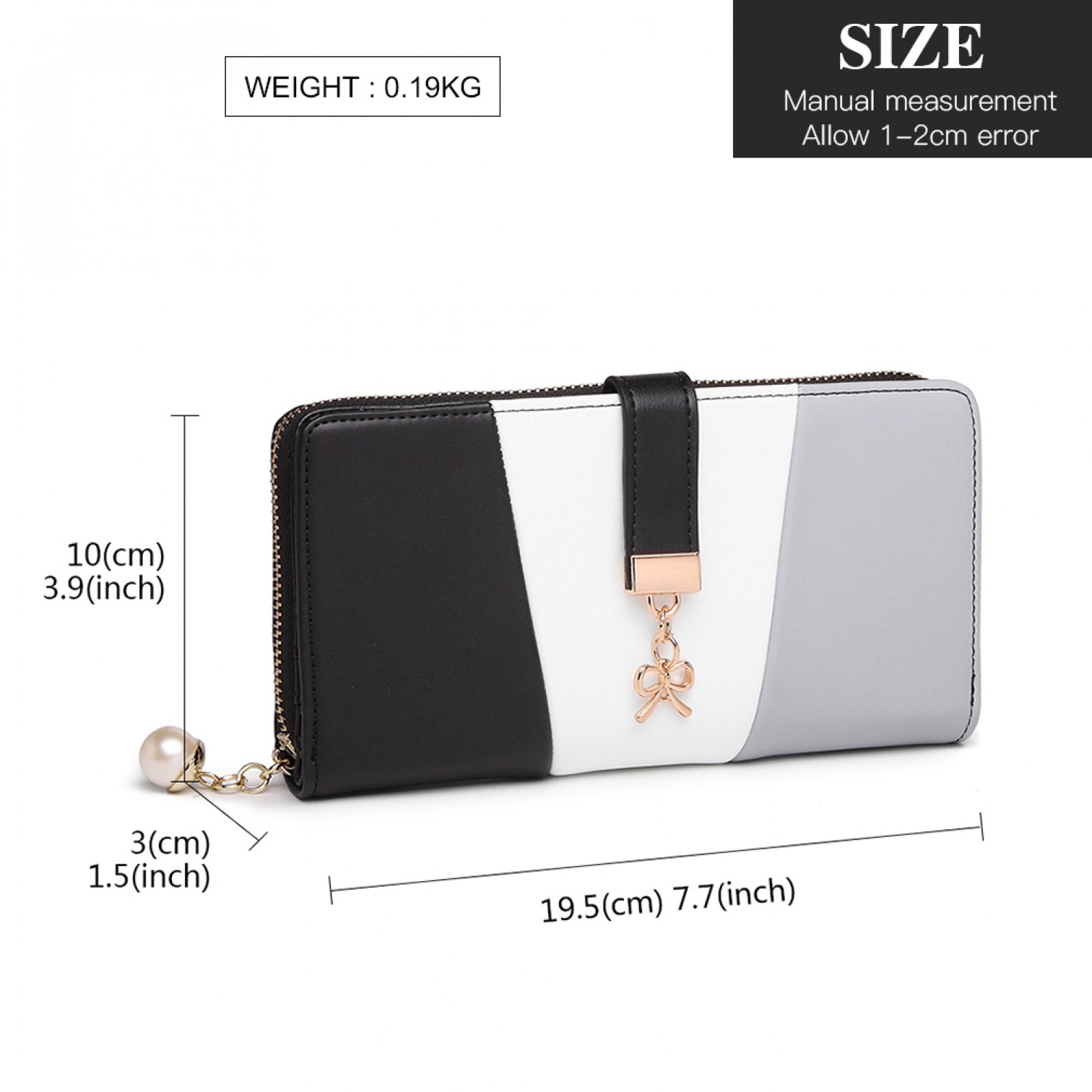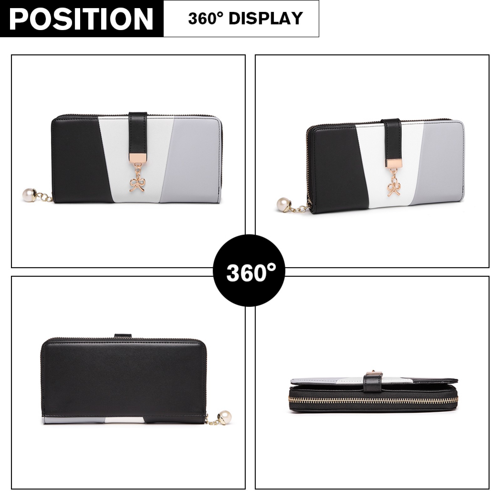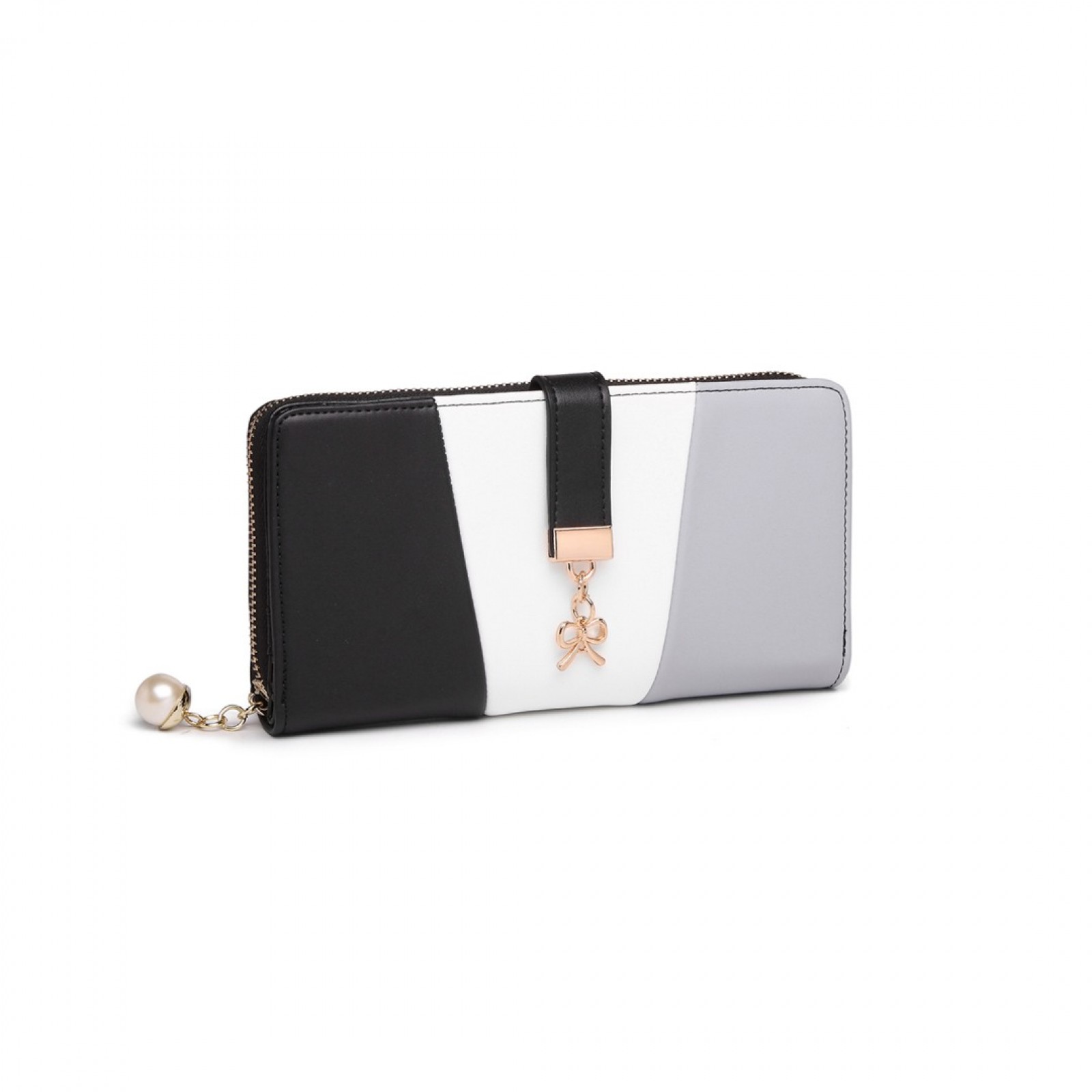 LP2030 - Miss Lulu Tri Colour Women's Leather Look Purse - Black