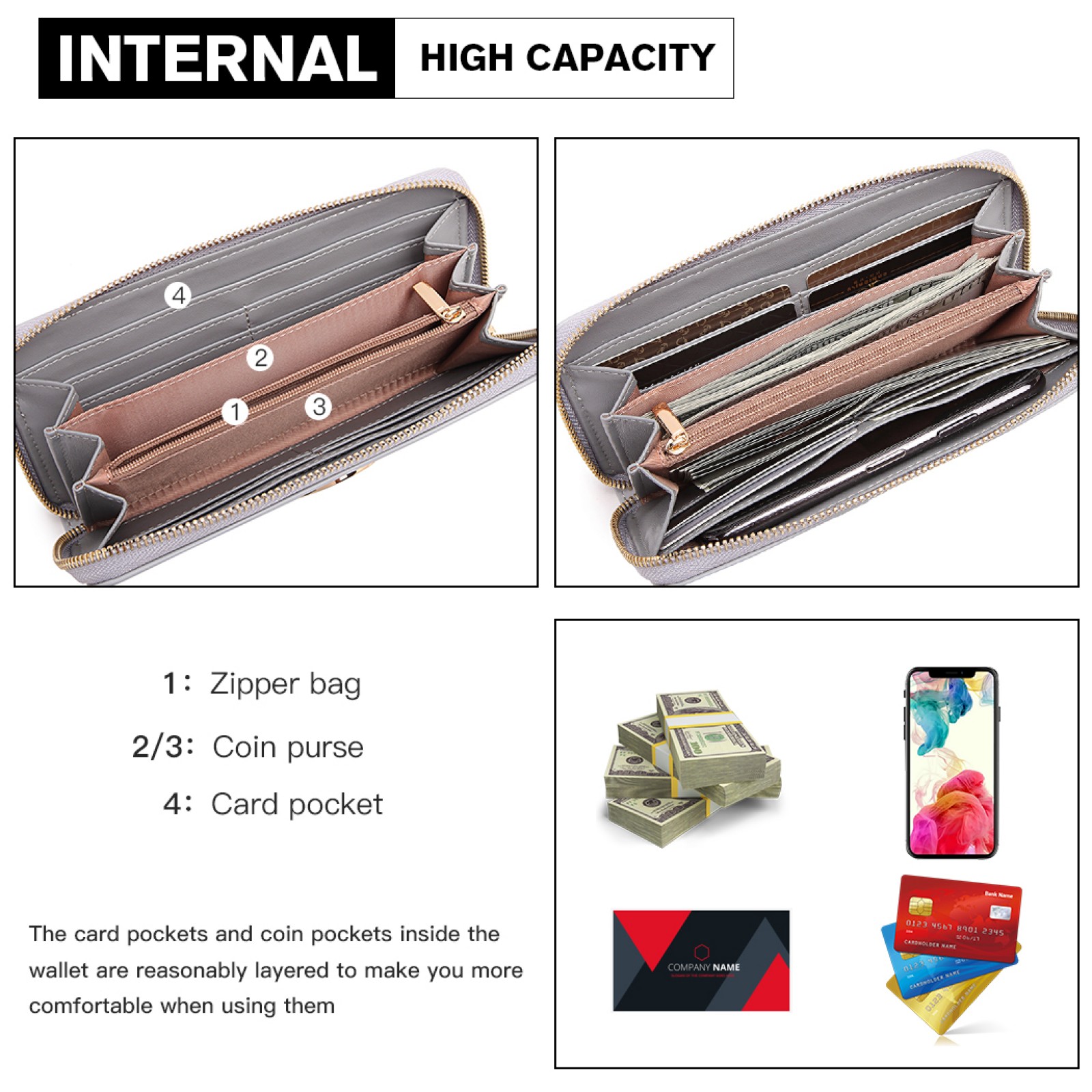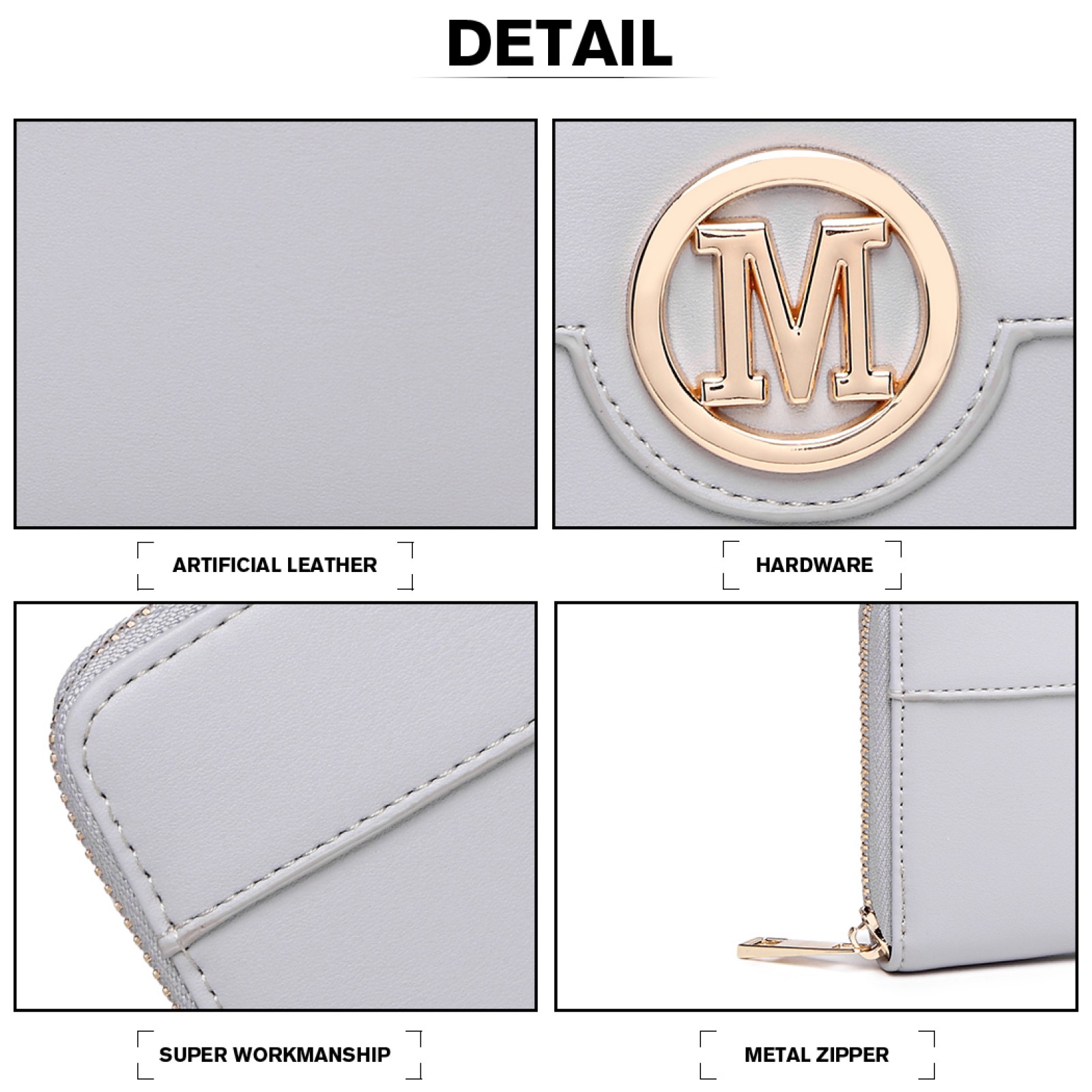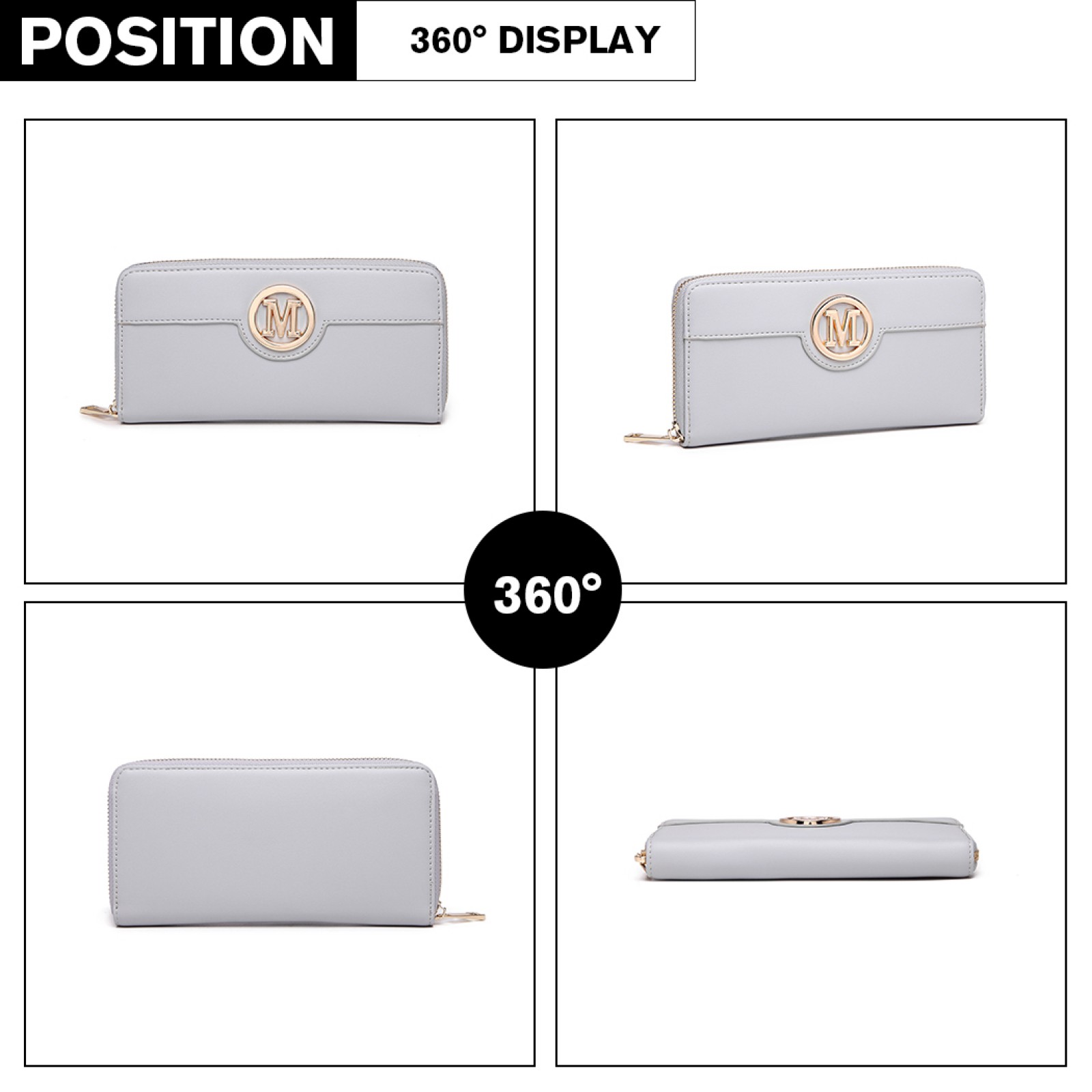 LP2031 - Miss Lulu Women's Leather Look Purse - Grey