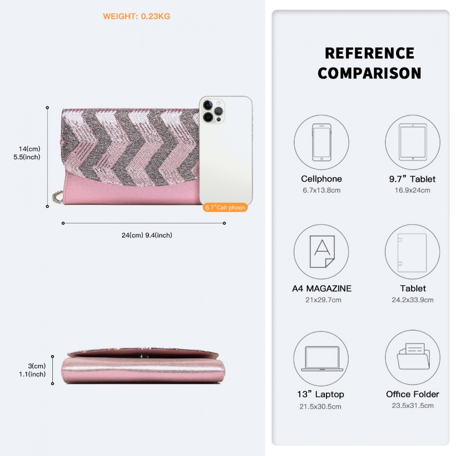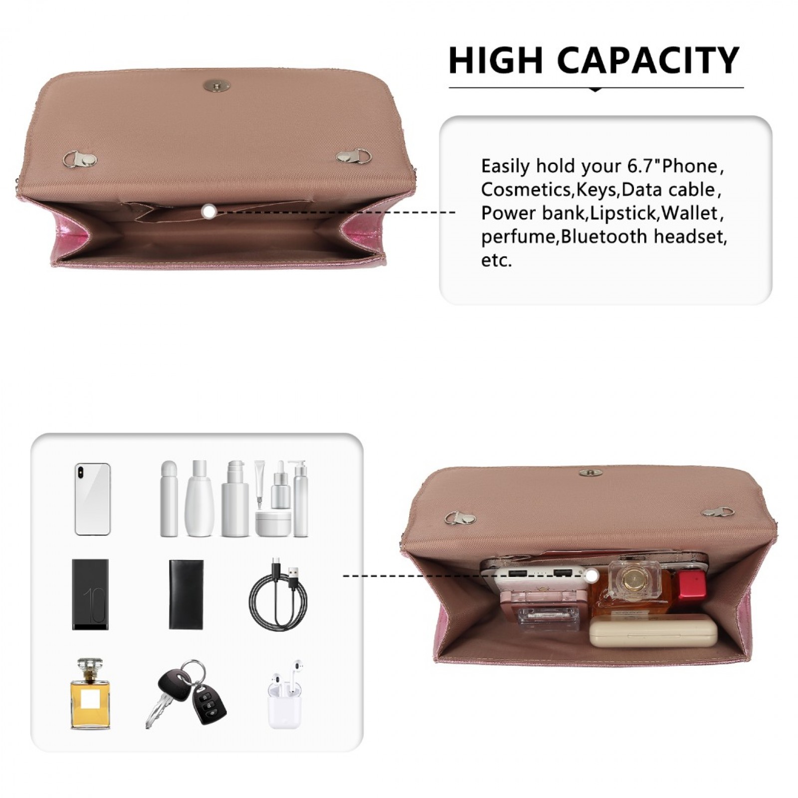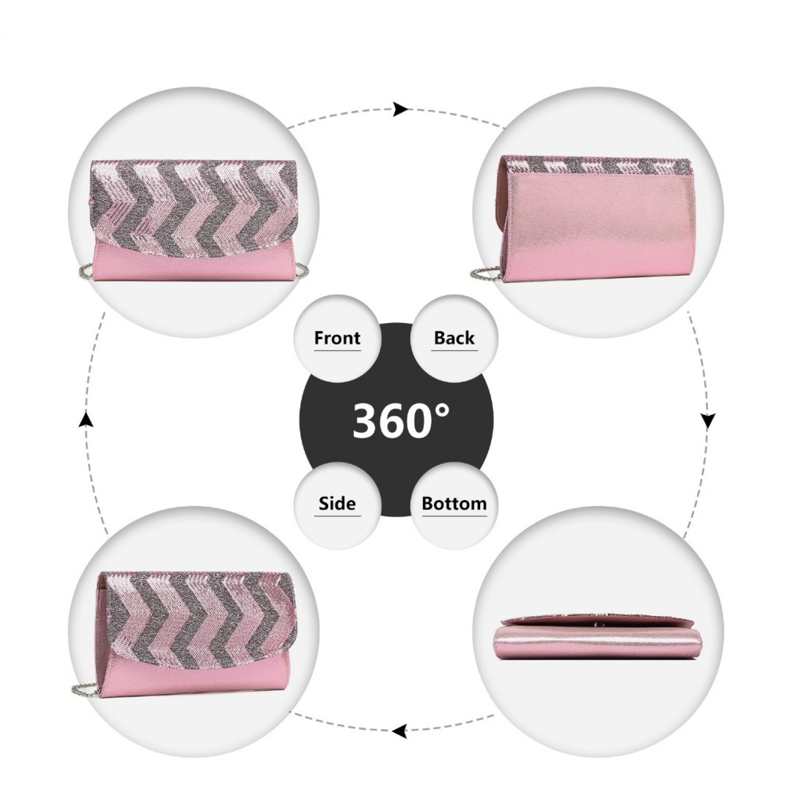 LP2311 - Miss Lulu Gorgeous Sequins Evening Clutch Bag Chain Shoulder Bag - Pink