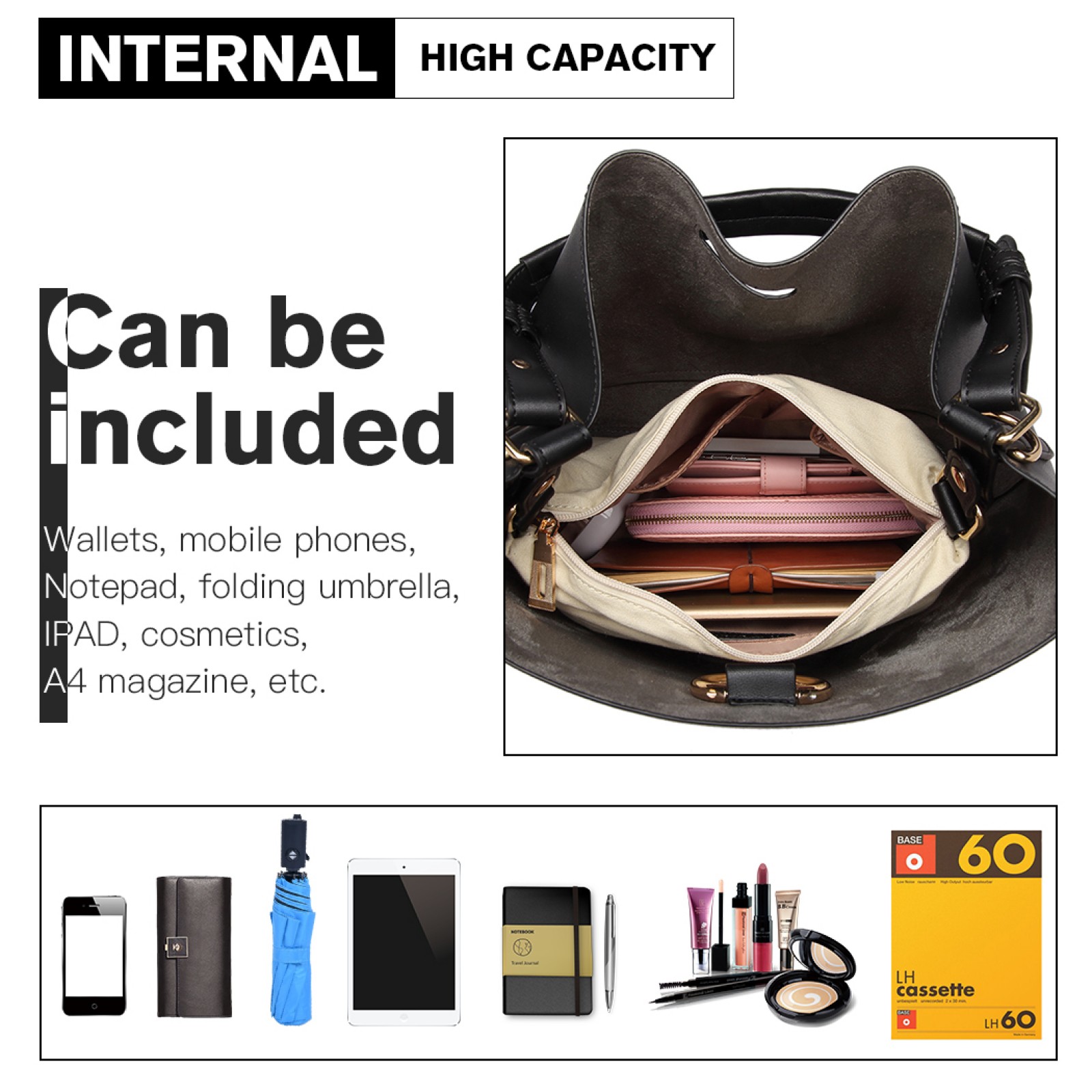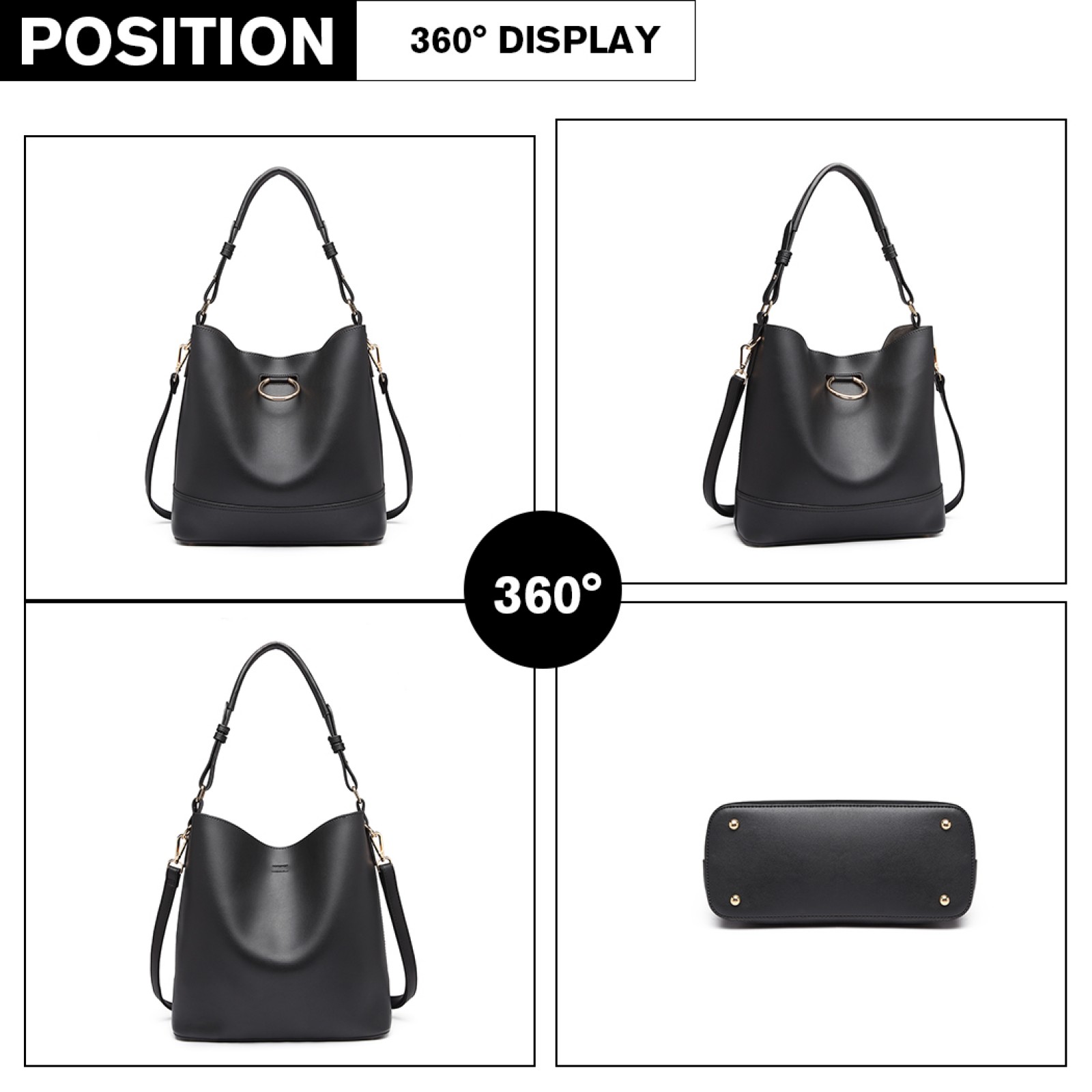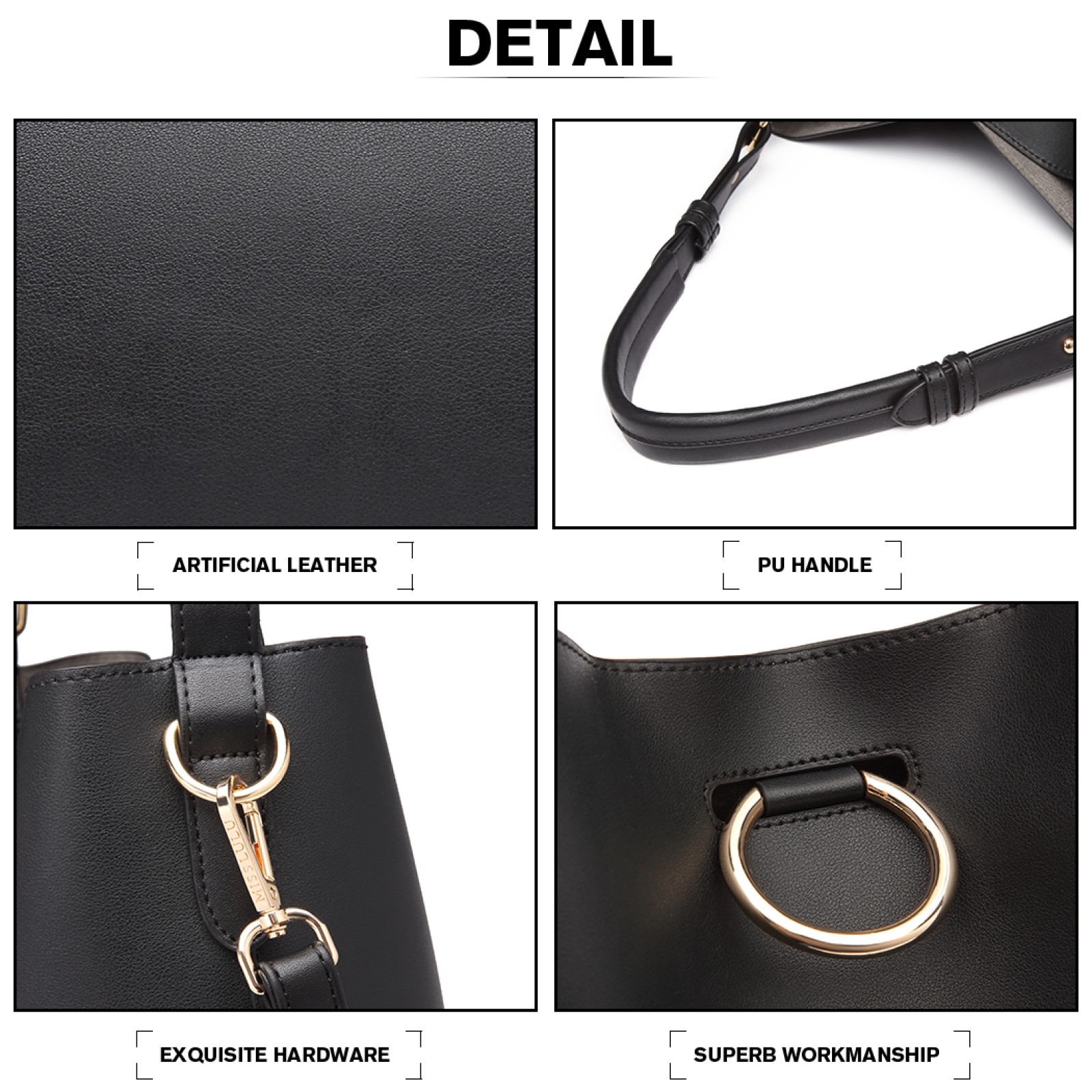LT1917 - Miss Lulu 2 Piece Bucket Tote Bag Set - Black