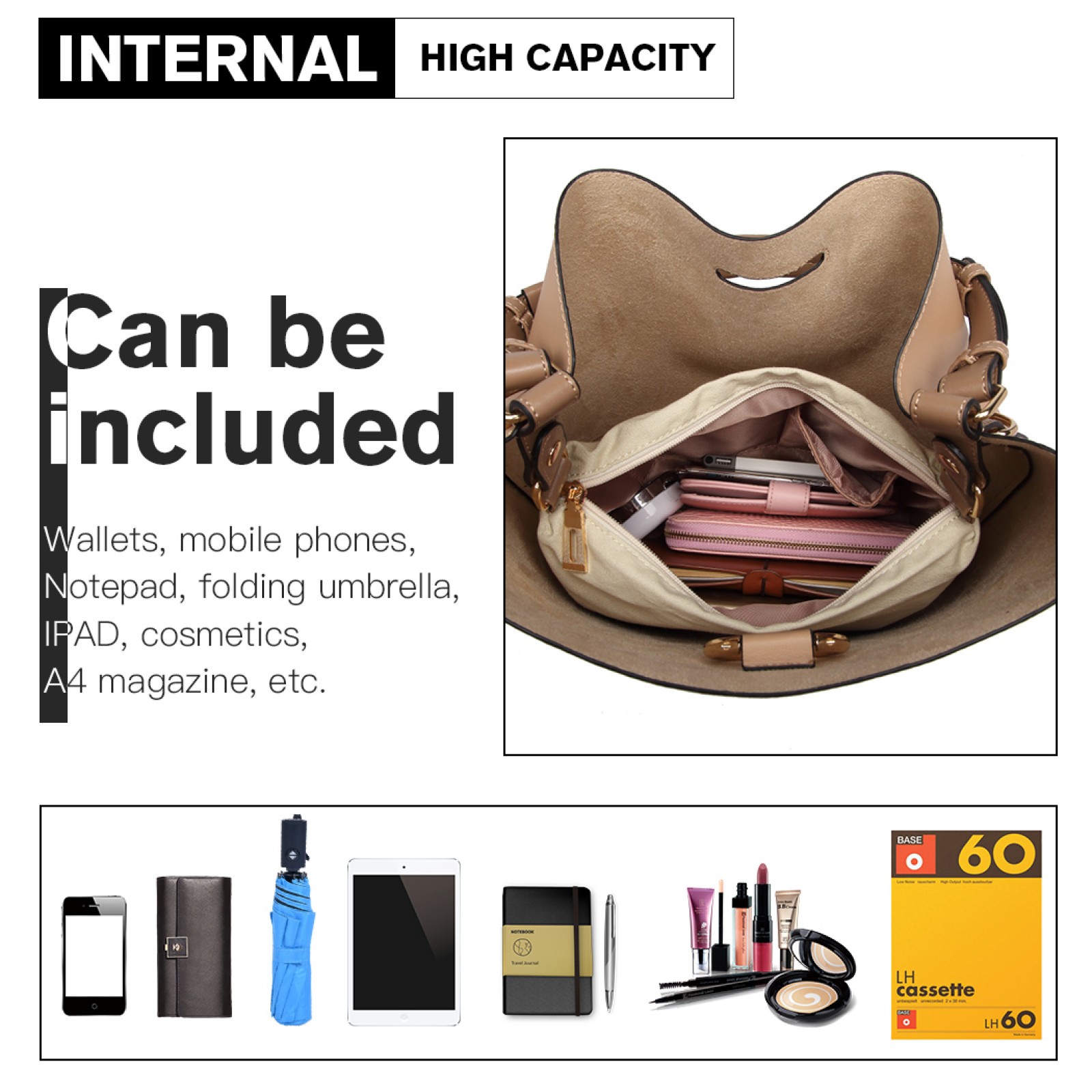 LT1917 - Miss Lulu 2 Piece Bucket Tote Bag Set - Khaki
