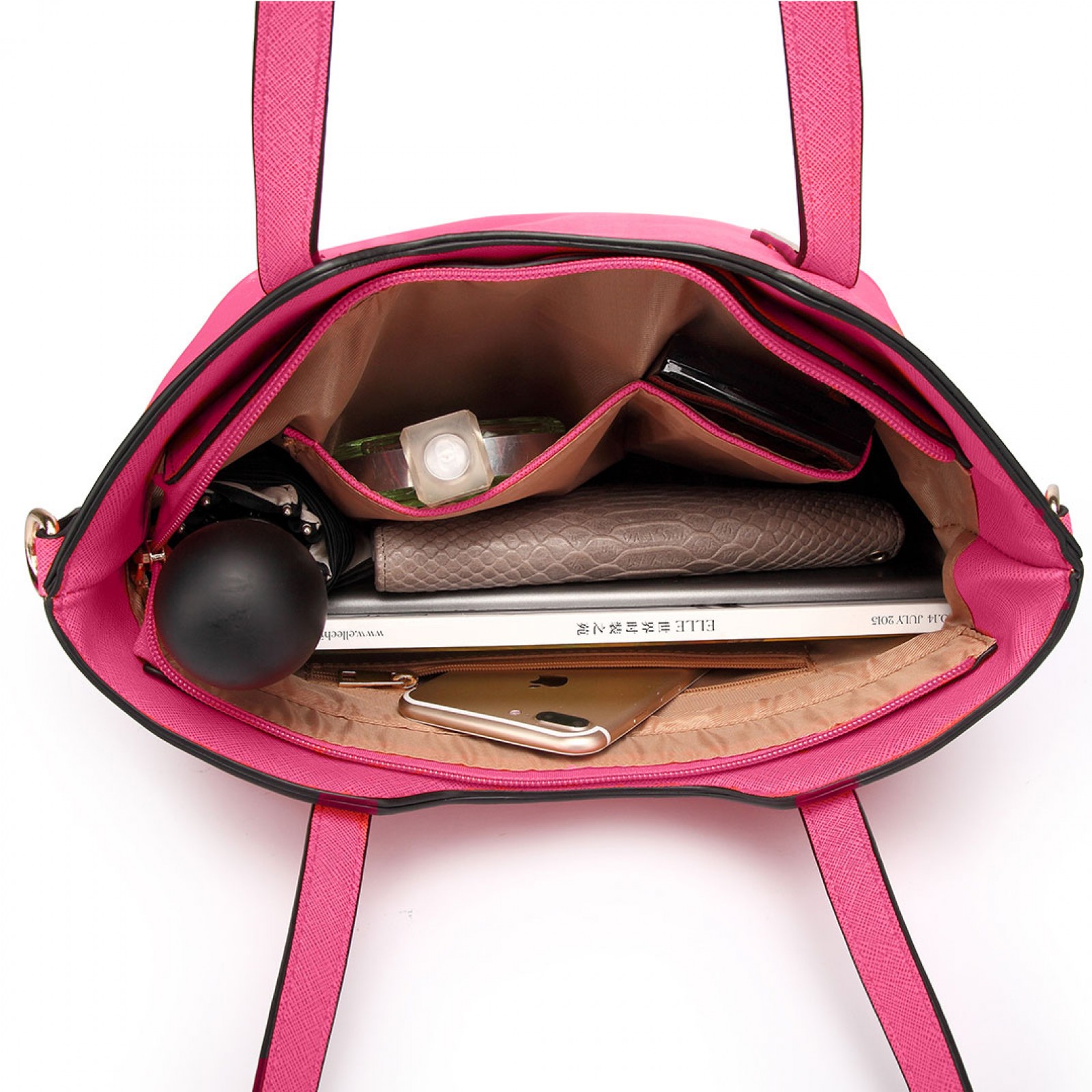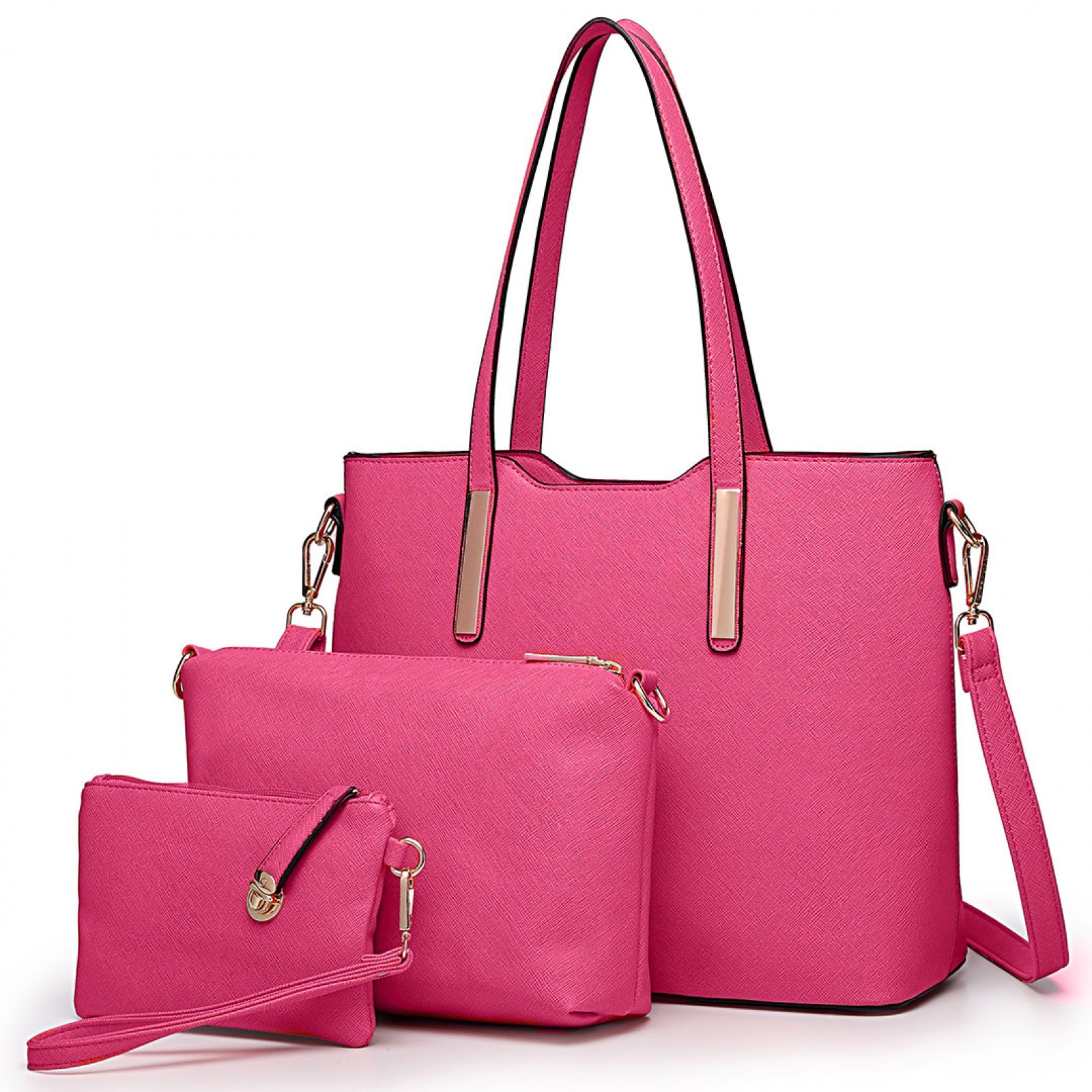 LT6648 - Miss Lulu Three Piece Tote Shoulder Bag And Clutch - Plum