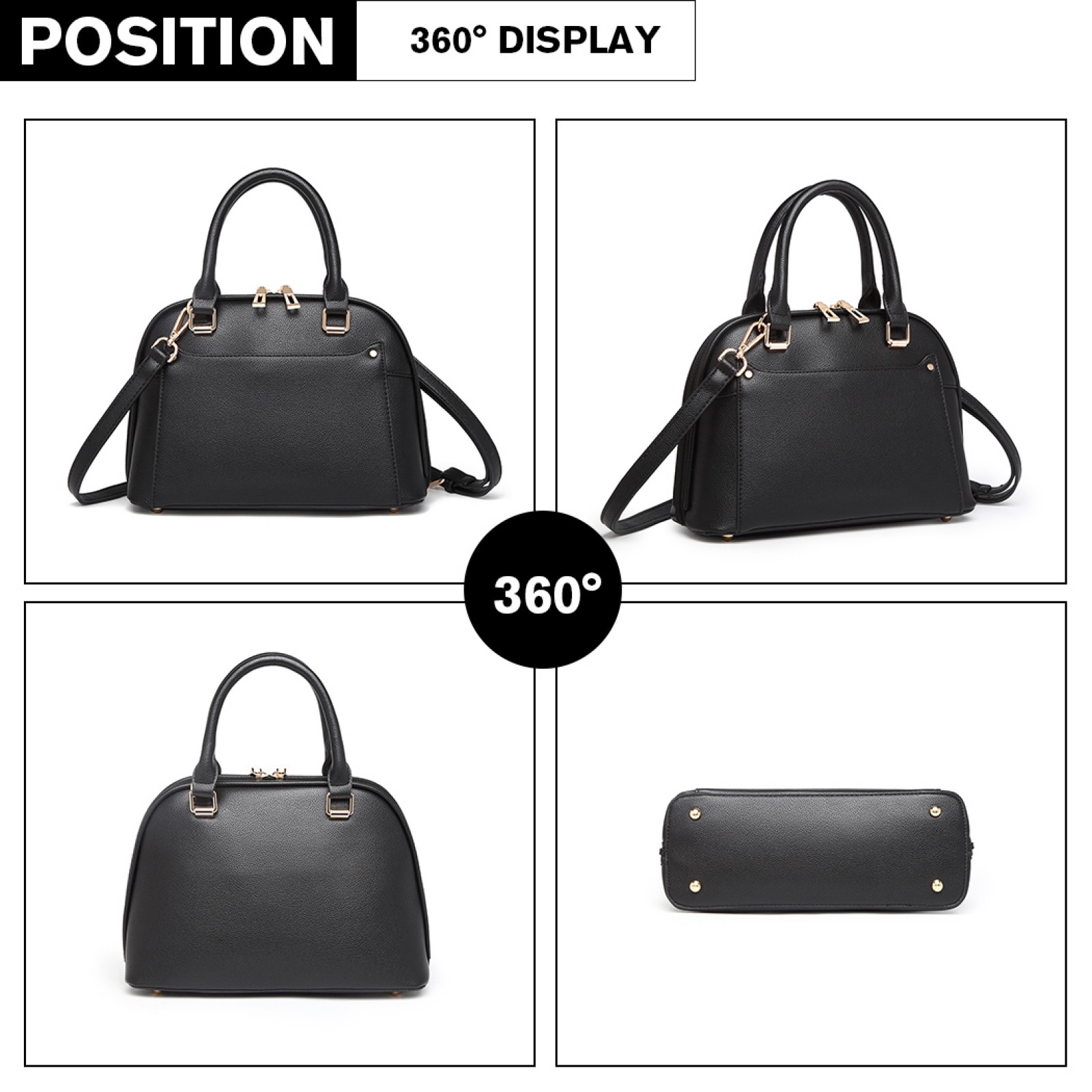 LT6922 - Miss Lulu Classic Bowler Handbag - Black