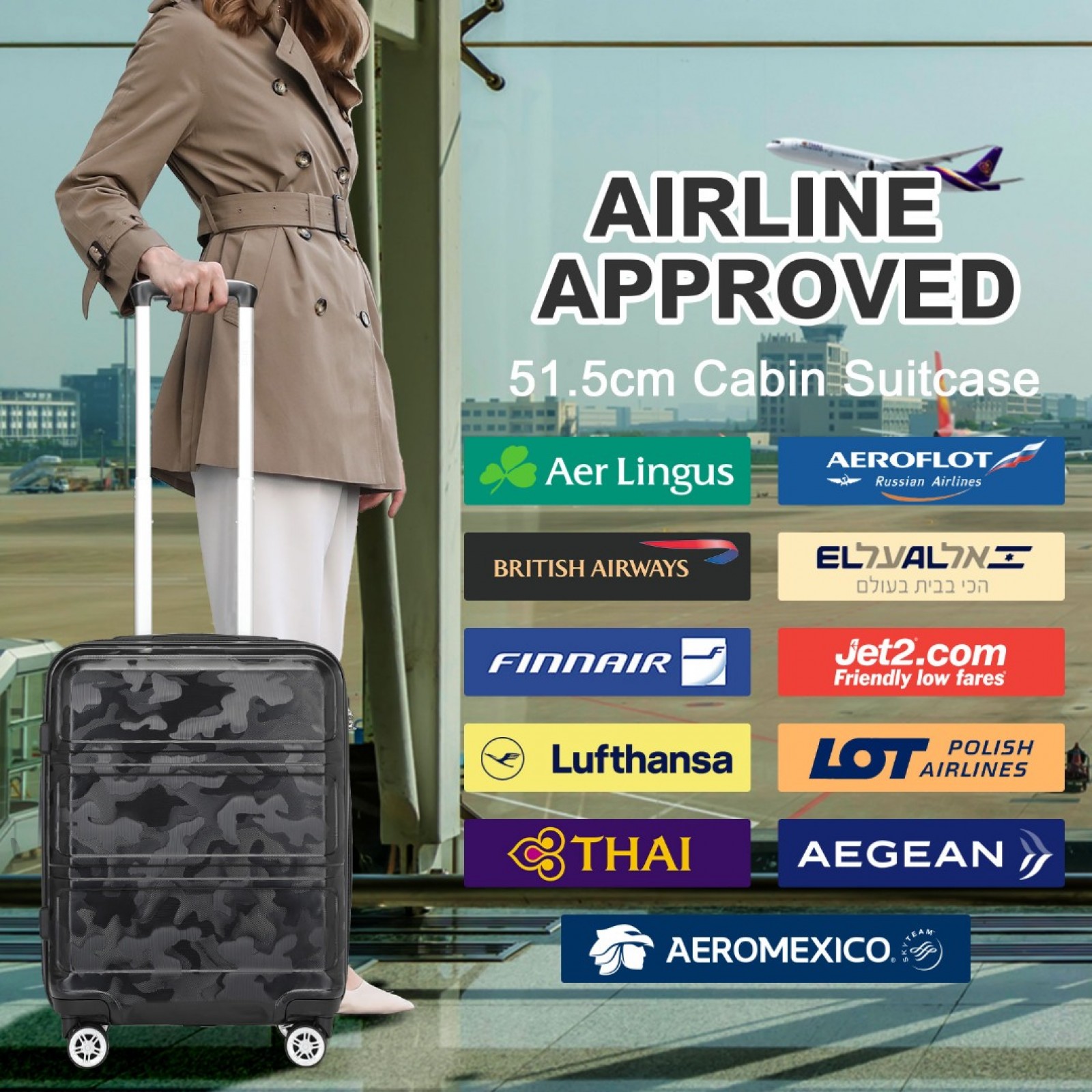 K1871-1L - Kono ABS 20 Inch Sculpted Horizontal Design Cabin Luggage - Camouflage Black
