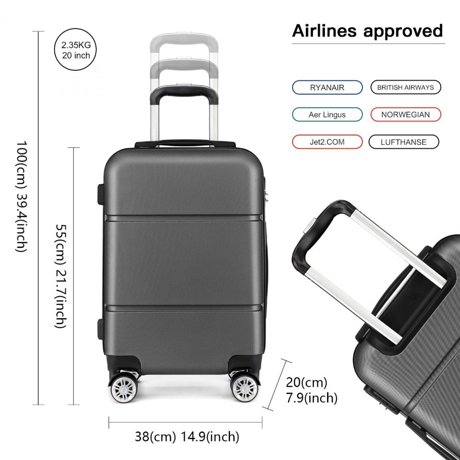 K1995L - Kono Hard Shell ABS Carry On Suitcase 20 Inch - Grey