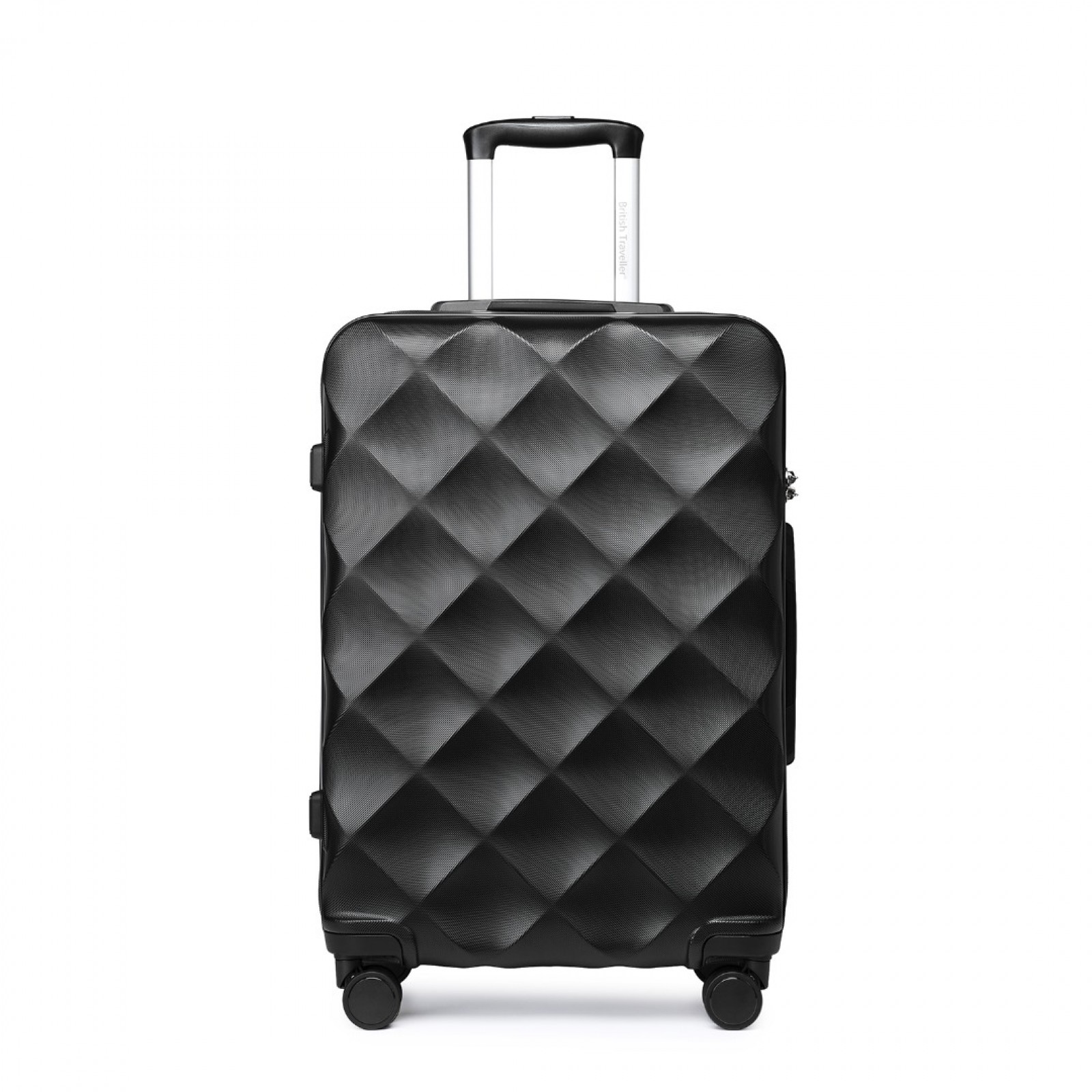K2395L - British Traveller 24 Inch Ultralight ABS And Polycarbonate Bumpy Diamond Suitcase With TSA Lock - Black