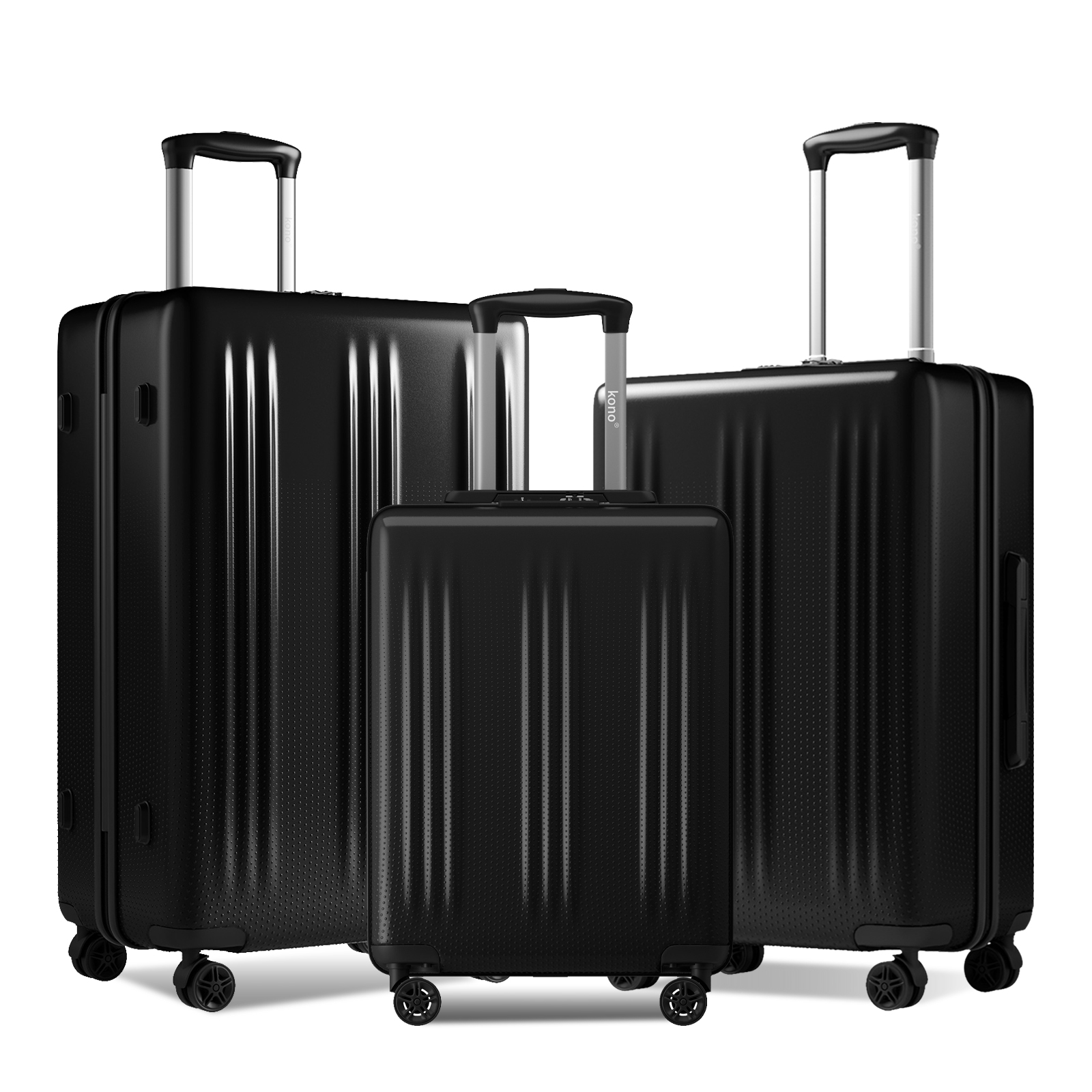 KSK2583 - Kono Premium ABS+PC 3-Piece Hard Shell Luggage Set with TSA Lock & 360° Silent Spinner Wheels - Black