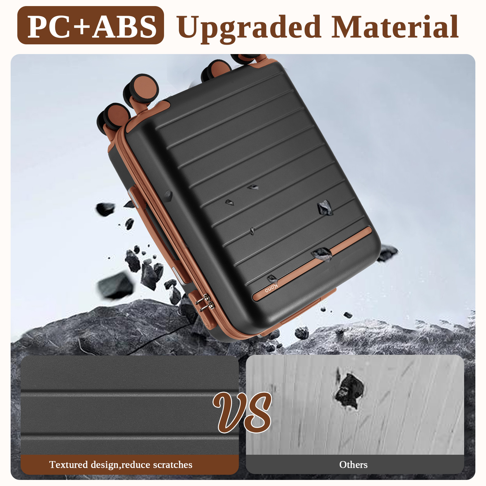 KSK2584 - Kono Scratch-Resistant 20-Inch Hard Shell Cabin Suitcase with Horizontal Stripe Design, Brown Accents & Spinner Wheels - Grey and Brown