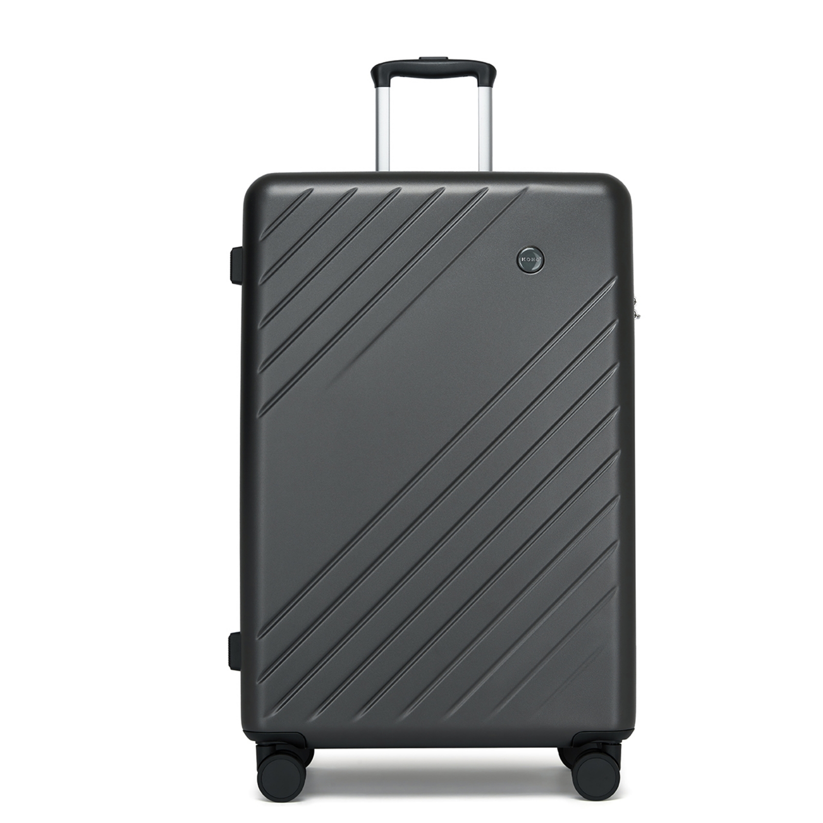 KSK2585 - Kono 28 Inch Large ABS+PC Hard Shell Checked Luggage, Spacious Diagonal Stripe Travel Suitcase with Silent Wheels & Combination Lock - Grey