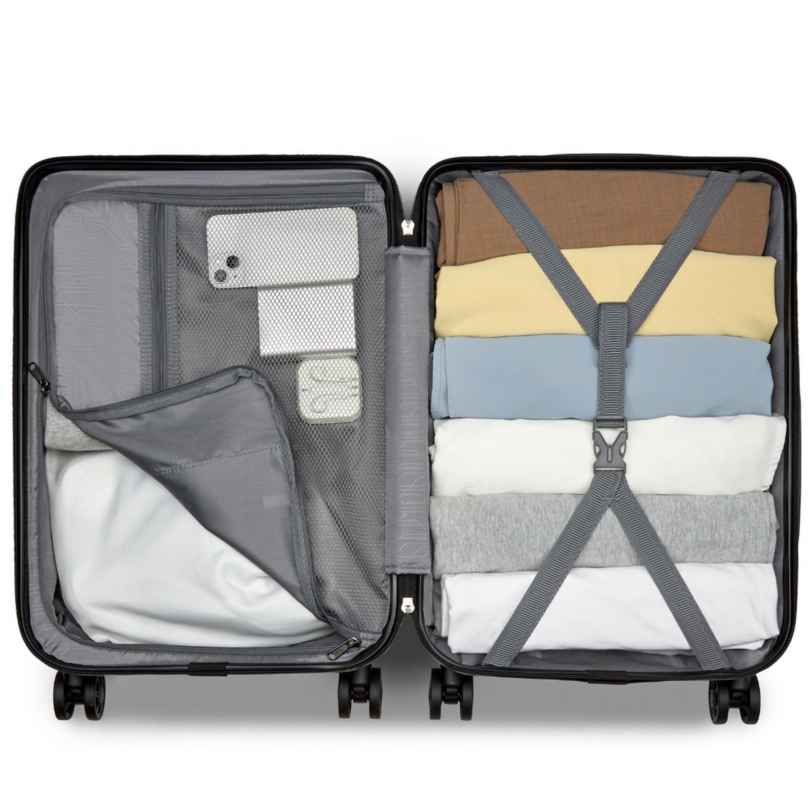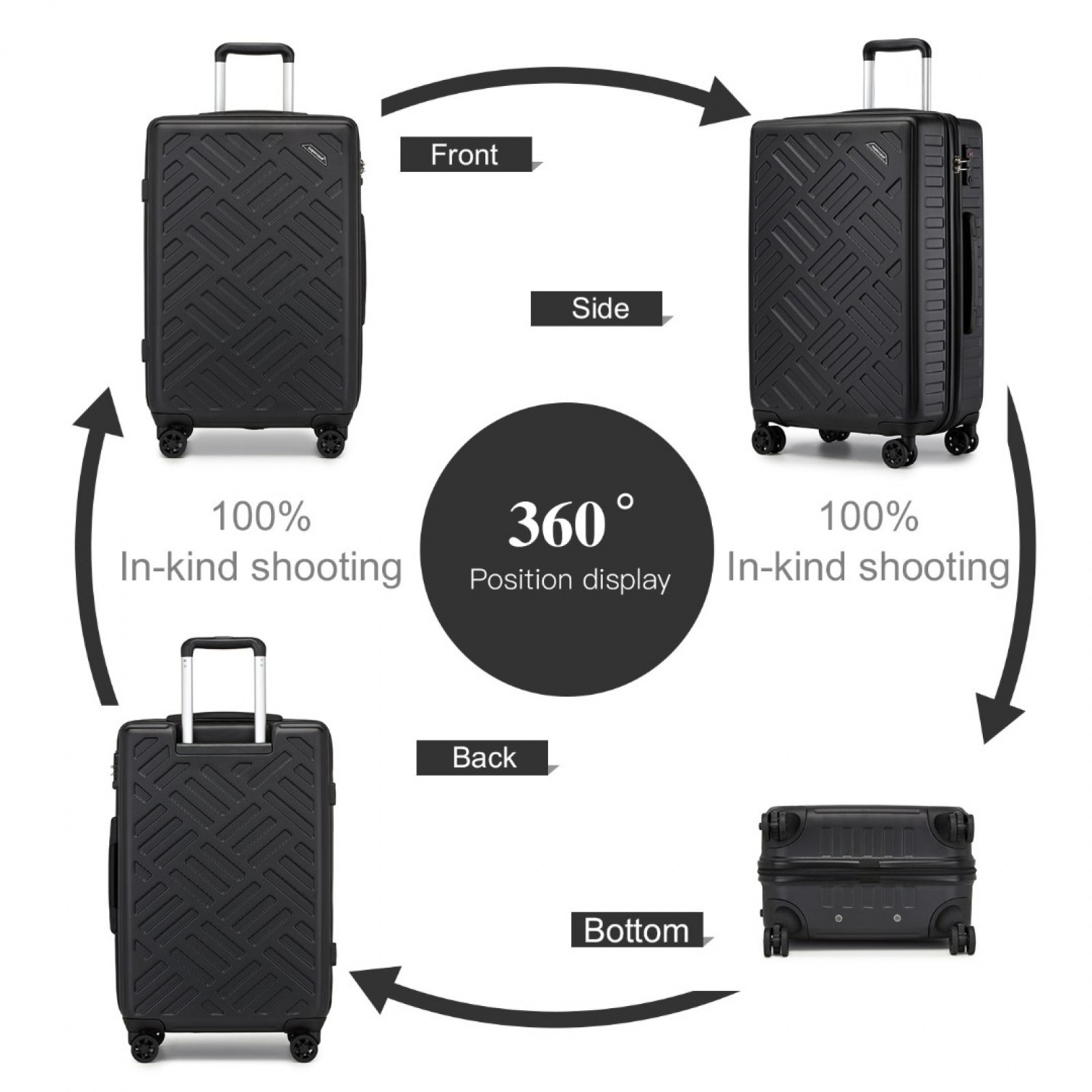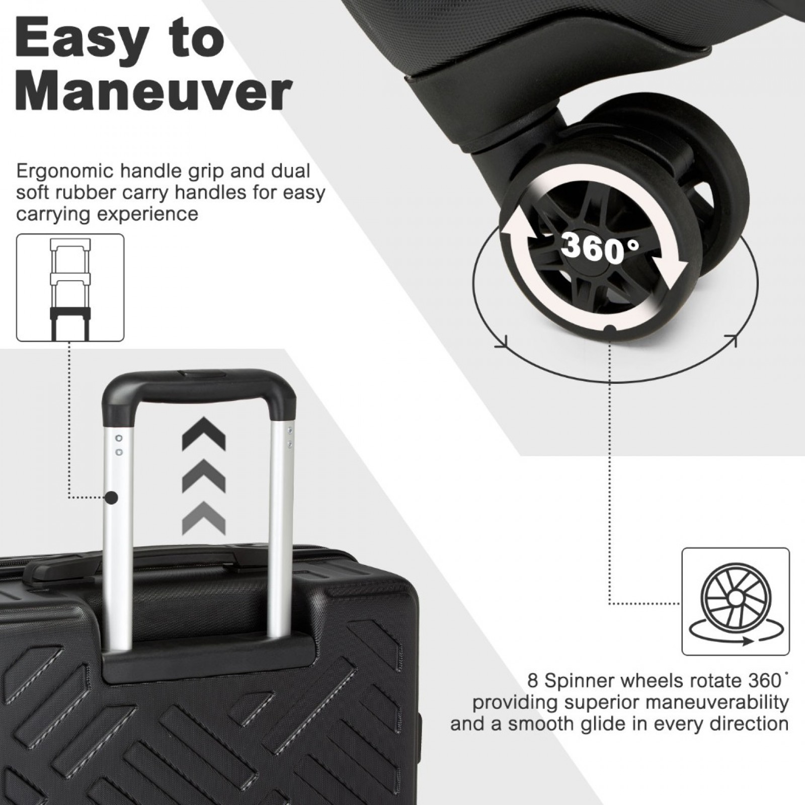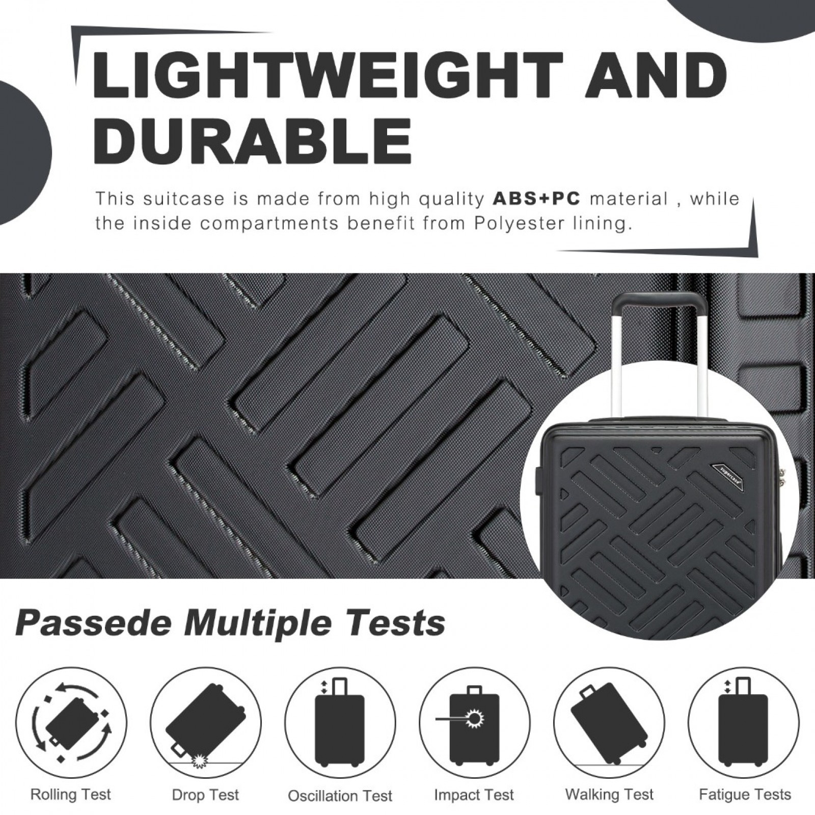 KSS2495 - Supercase 20 Inch Sleek Geometric Pattern Hard Shell ABS+PC Cabin Carry-On Suitcase with TSA Lock - Black