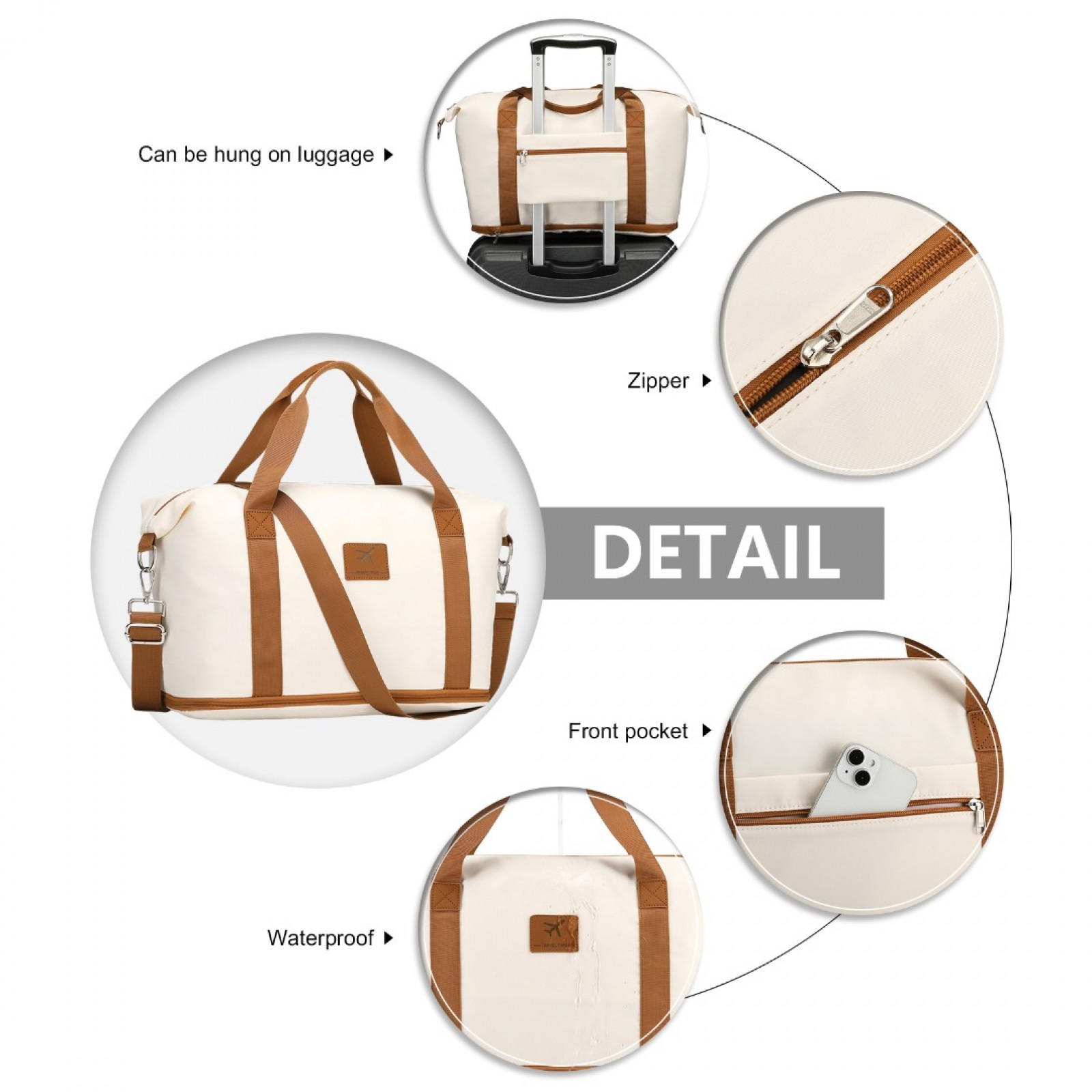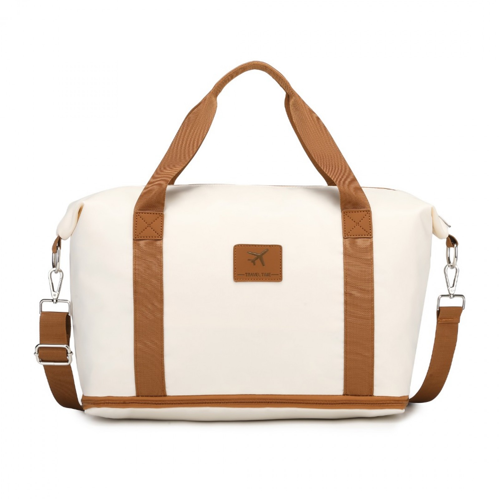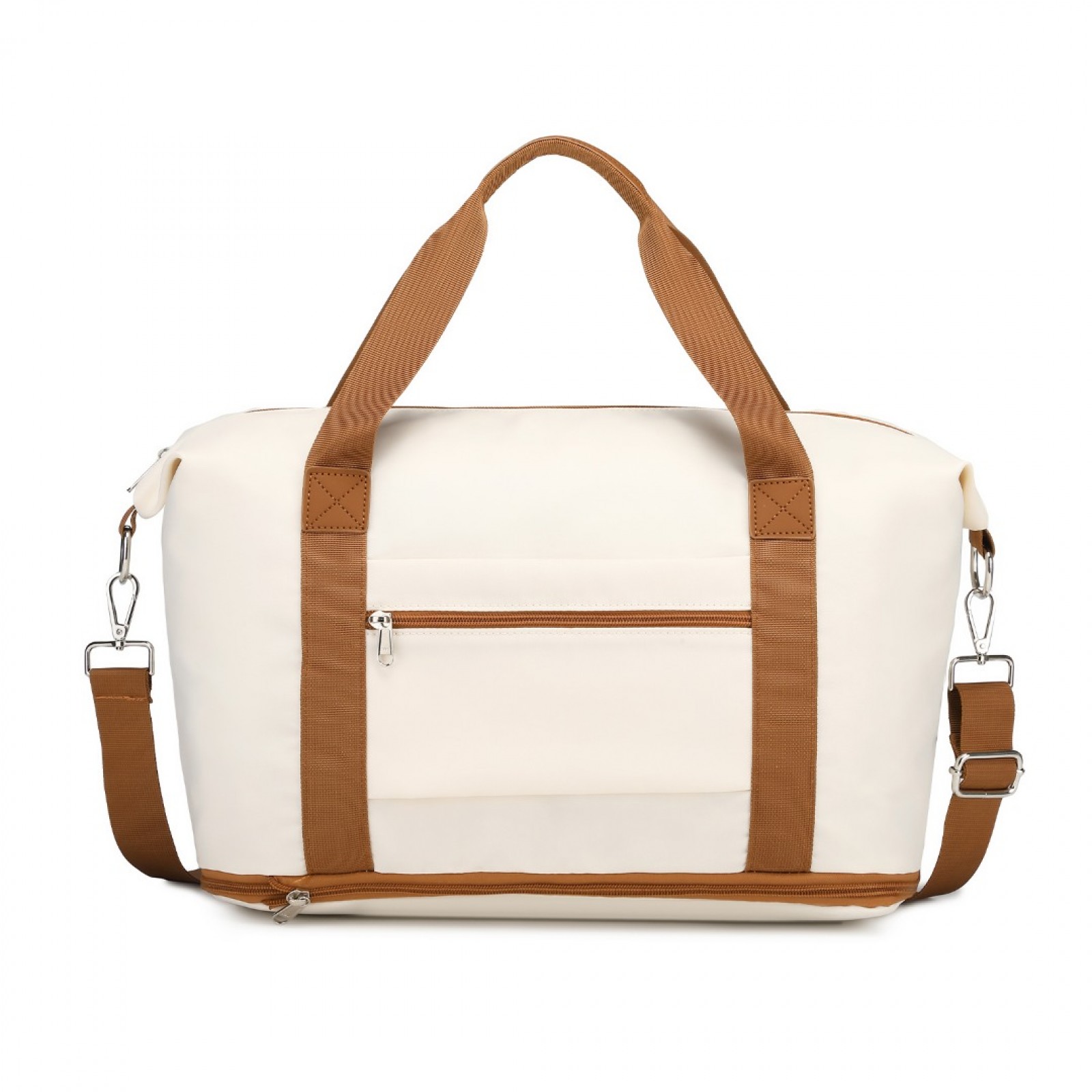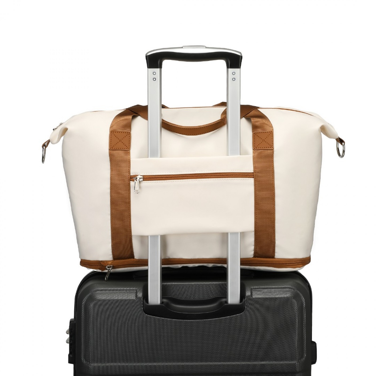 S2366 - 36L Expandable Water-Resistant Travel Tote Set with Cosmetic Pouch Versatile Carry-On Duffel Bag - Beige And Brown