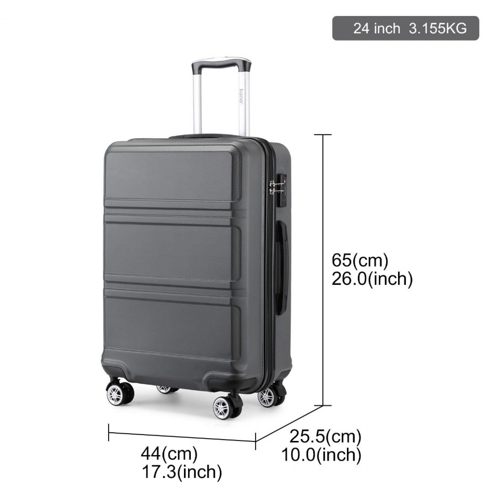 K1871-1L - Kono ABS 24 Inch Sculpted Horizontal Design Suitcase - Grey