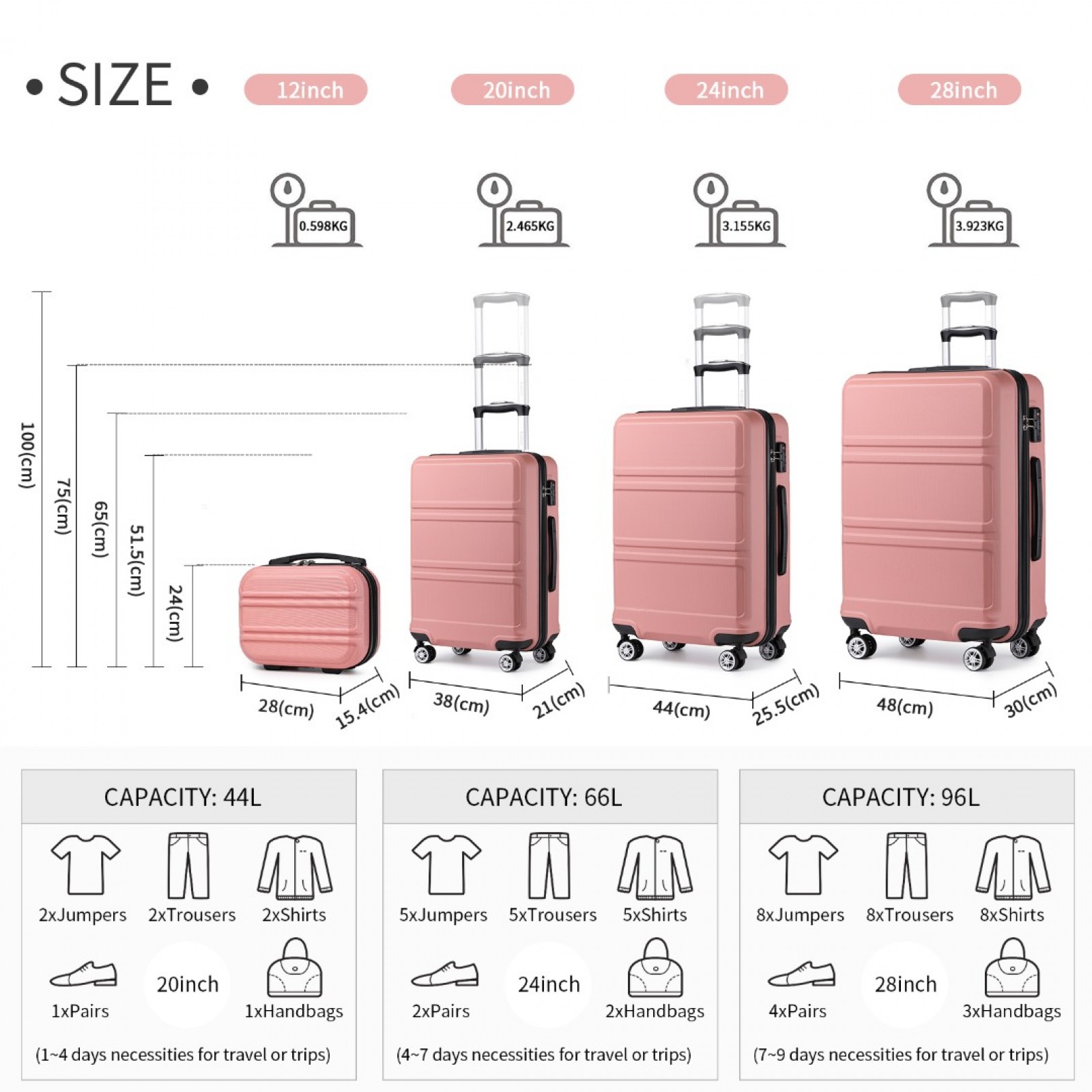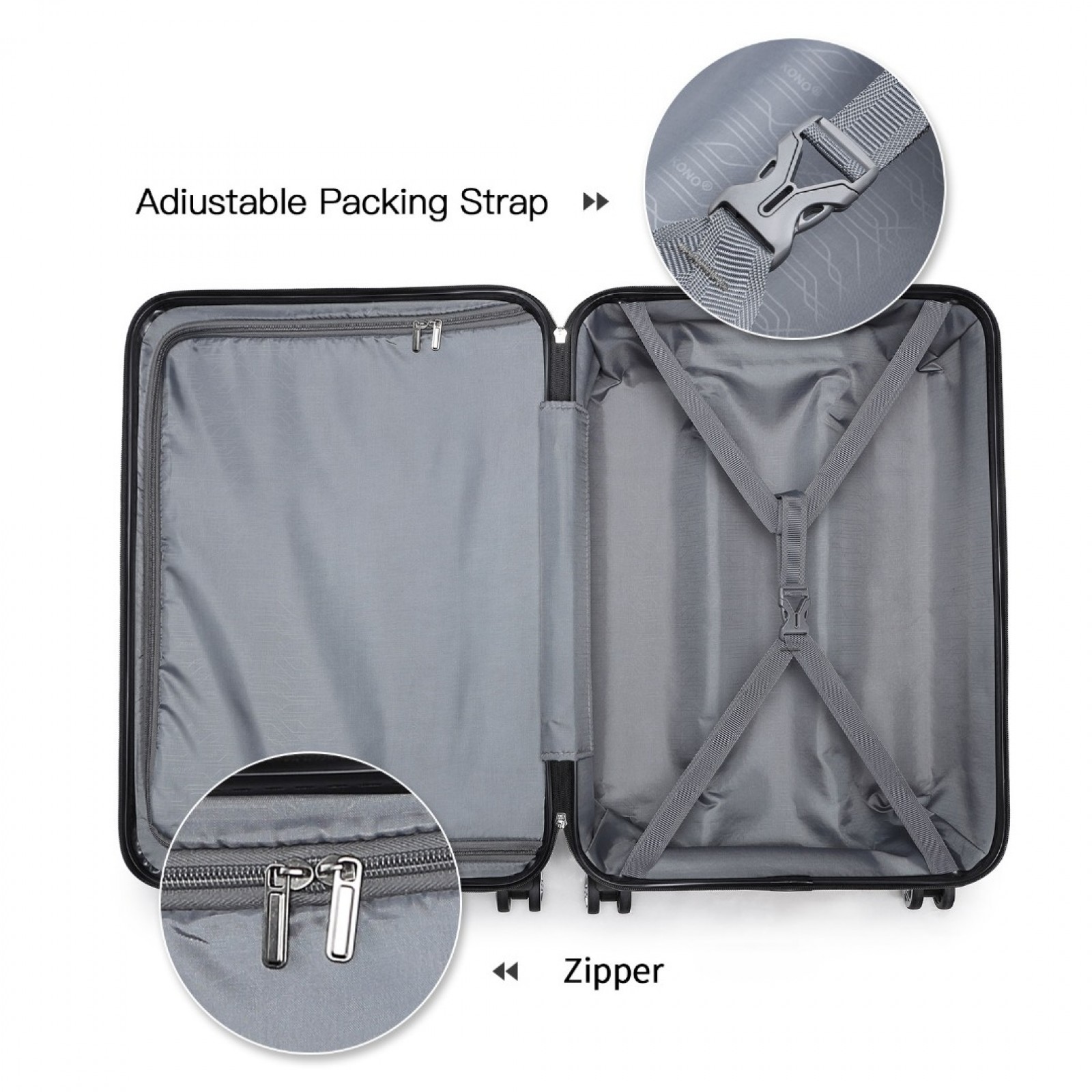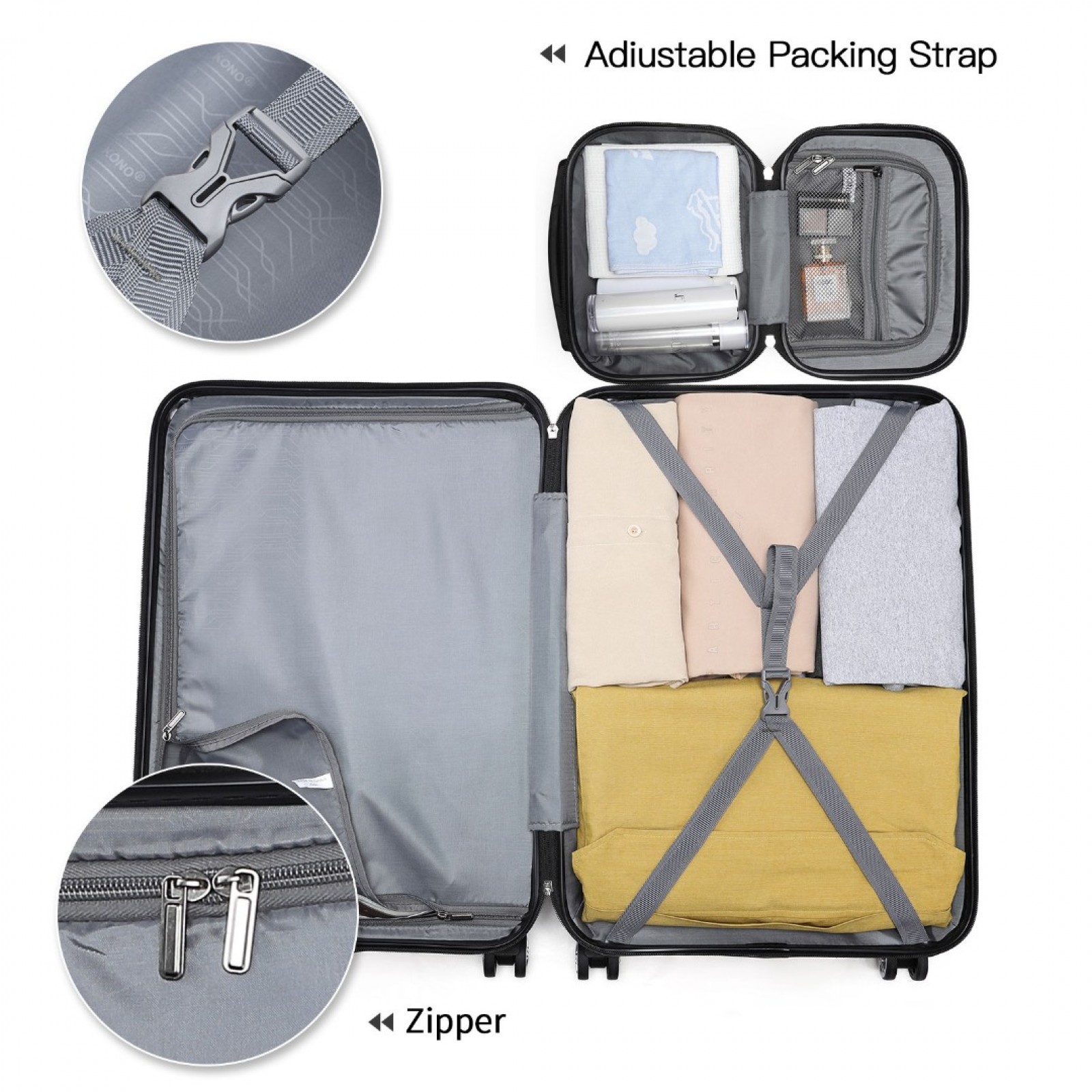 K1871-1L - Kono ABS Sculpted Horizontal Design 4 Pcs Suitcase Set With Vanity Case - Nude