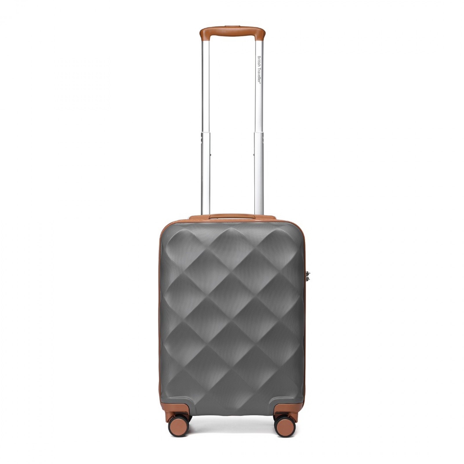 K2395L - British Traveller 20 Inch Ultralight ABS And Polycarbonate Bumpy Diamond Suitcase With TSA Lock - Grey And Brown