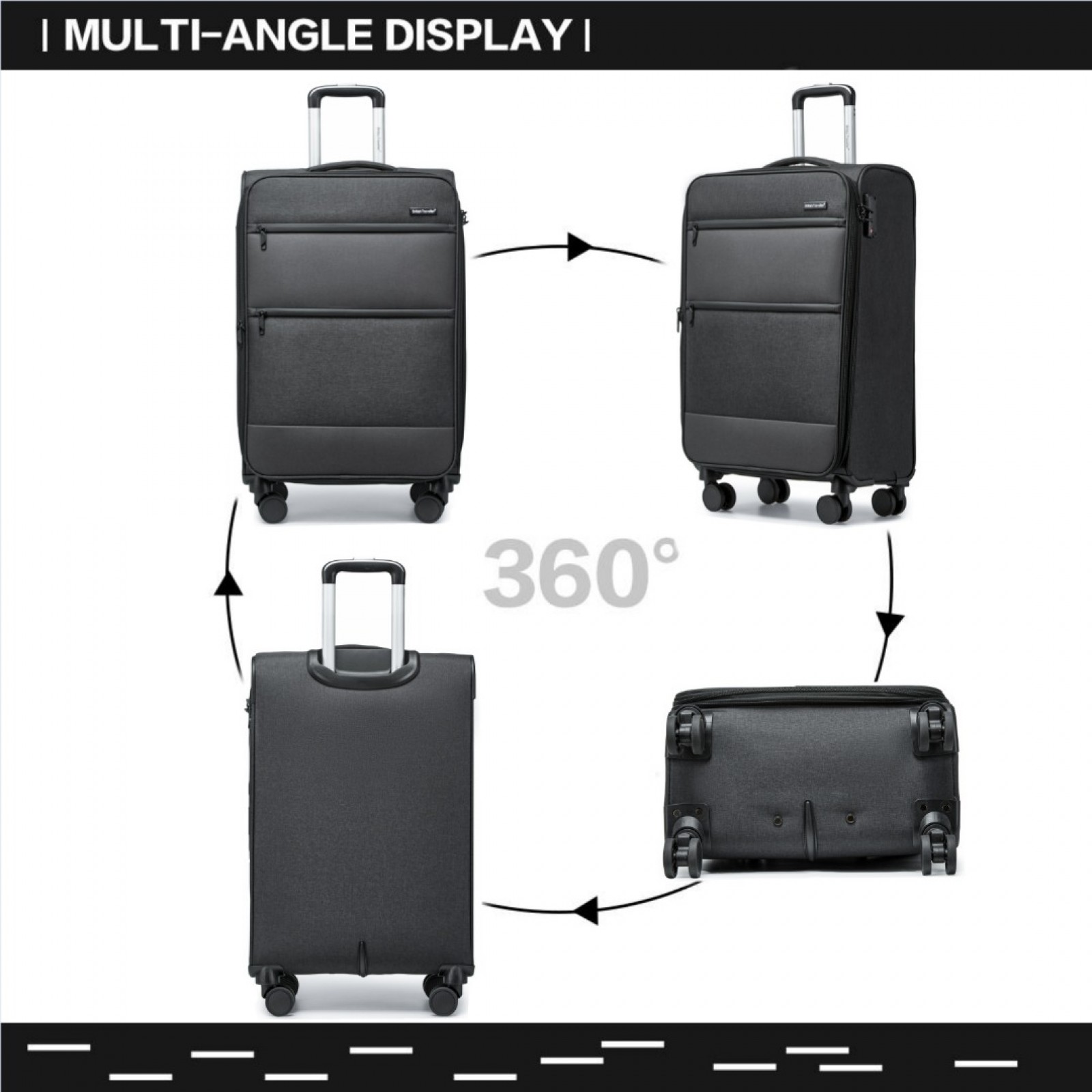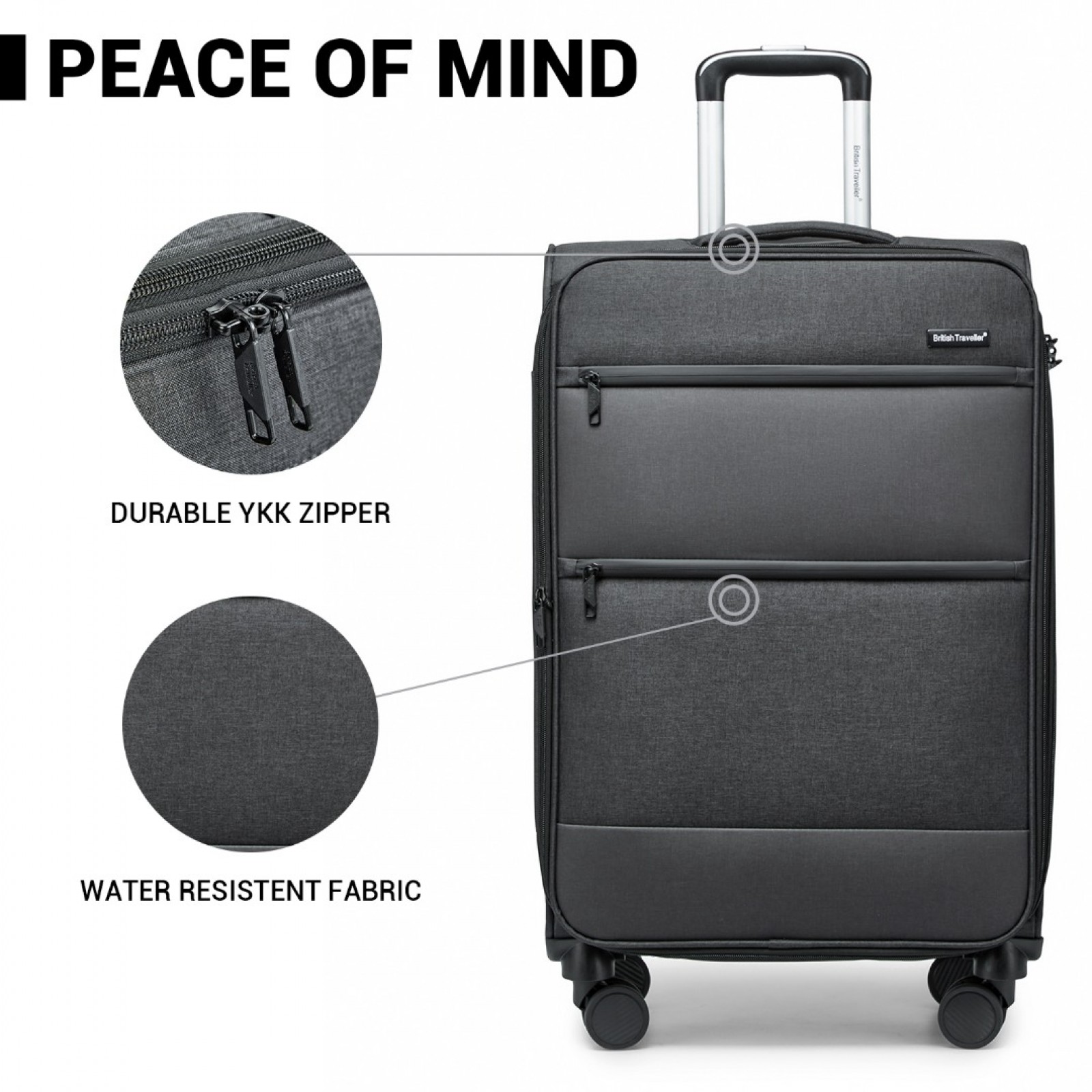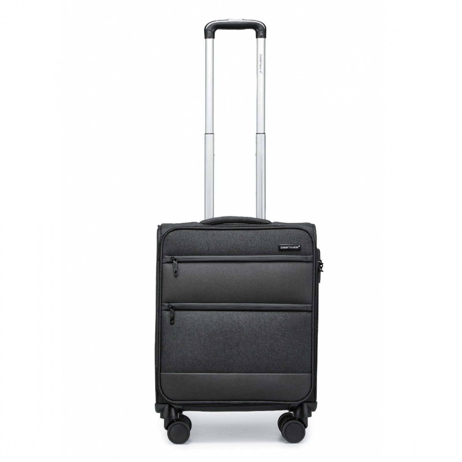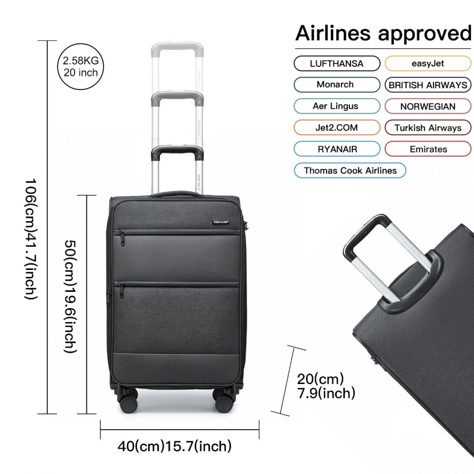 K2397L - British Traveller 20 Inch Lightweight Cabin Carry-On Suitcase with Soft Shell and Laptop Compartment - Black
