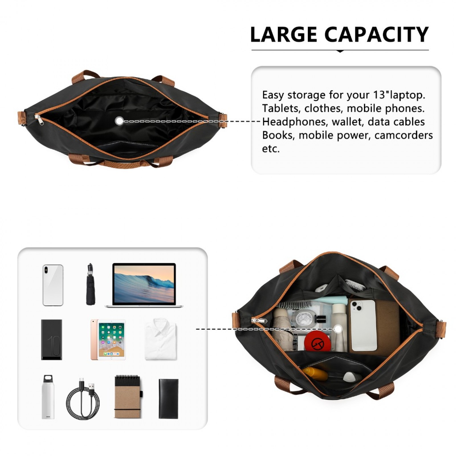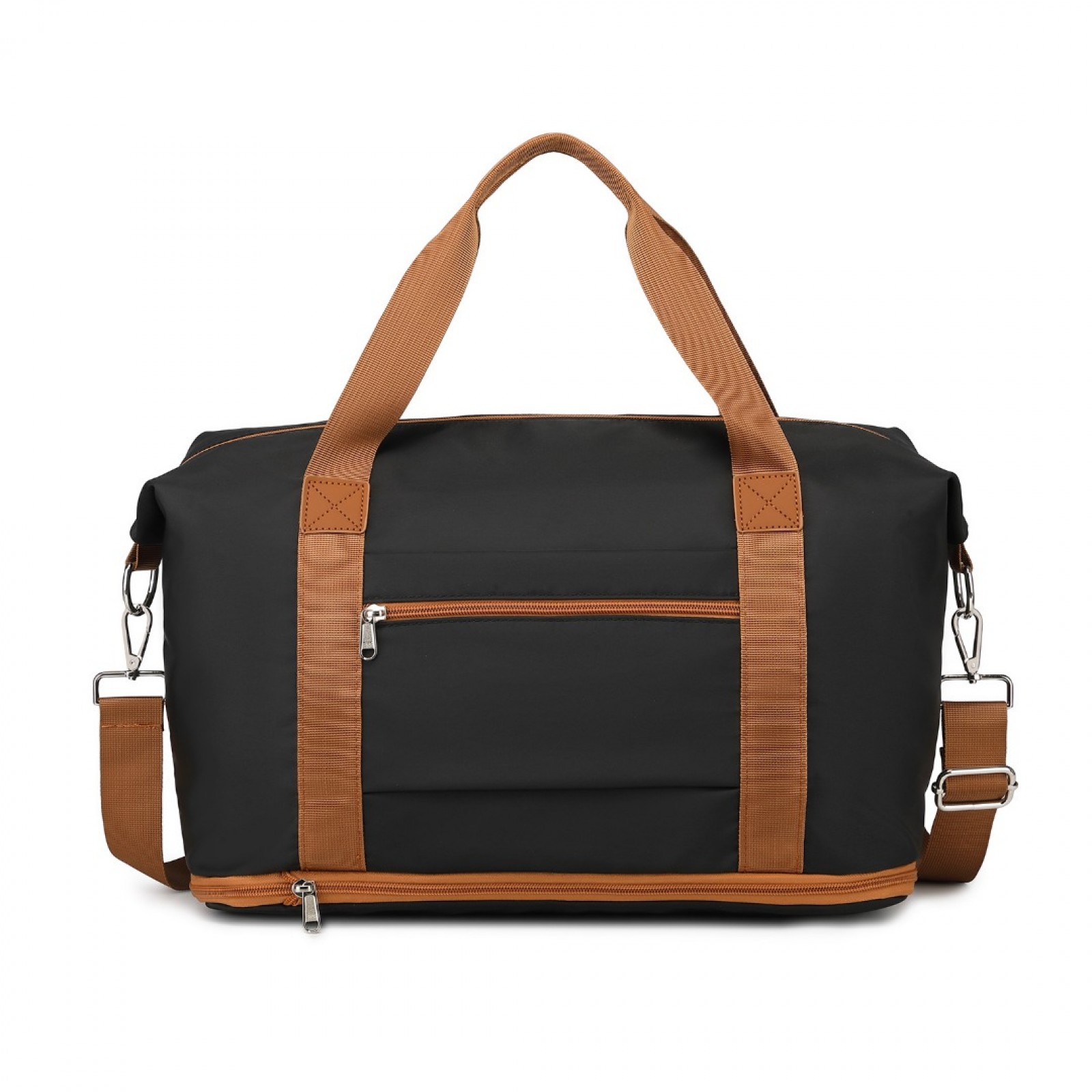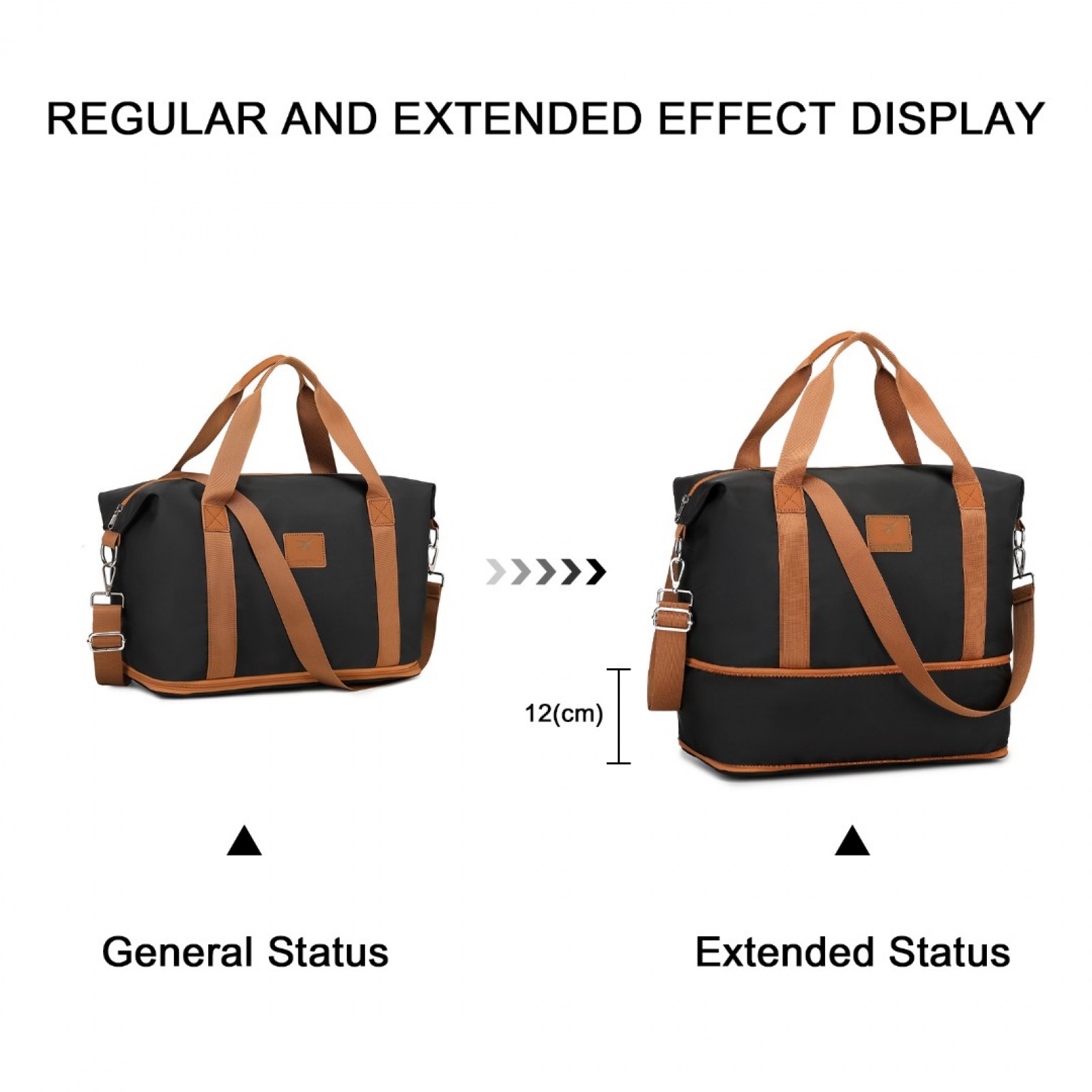 S2366 - 36L Expandable Water-Resistant Travel Tote Set with Cosmetic Pouch Versatile Carry-On Duffel Bag - Black And Brown