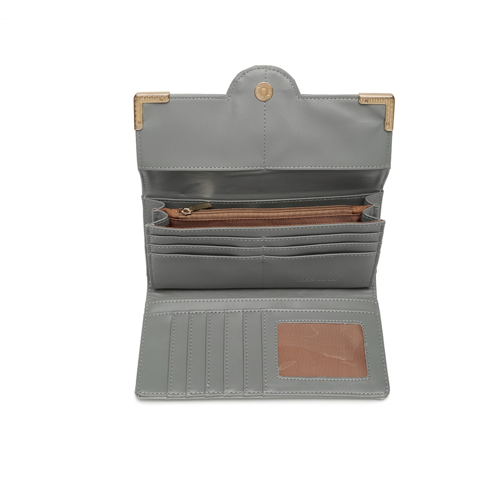LP2022 - Miss Lulu Leather Look Classic Long Purse - Grey