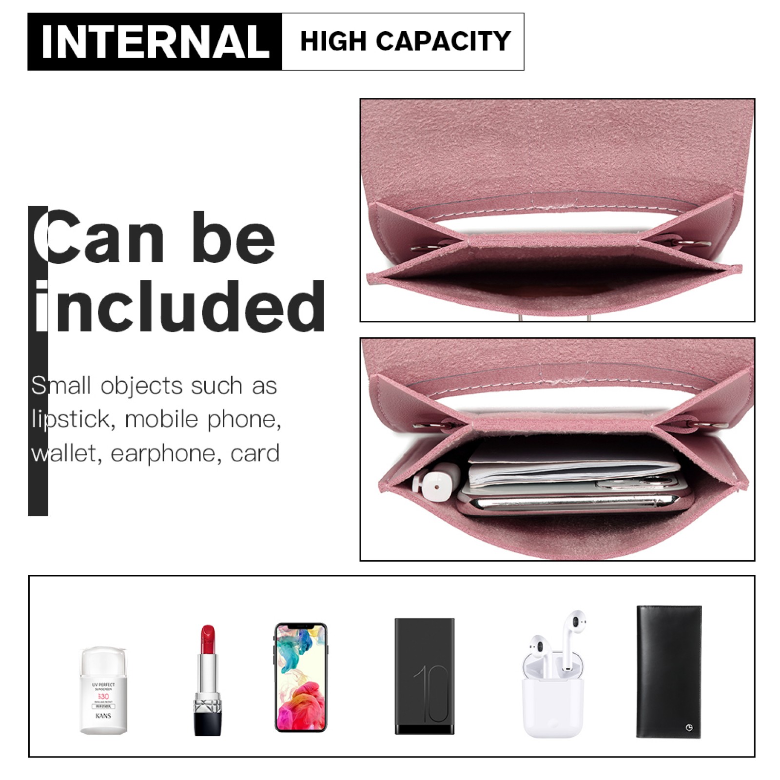 Large enough for your phone, money/cards, and a pen/cosmetic item