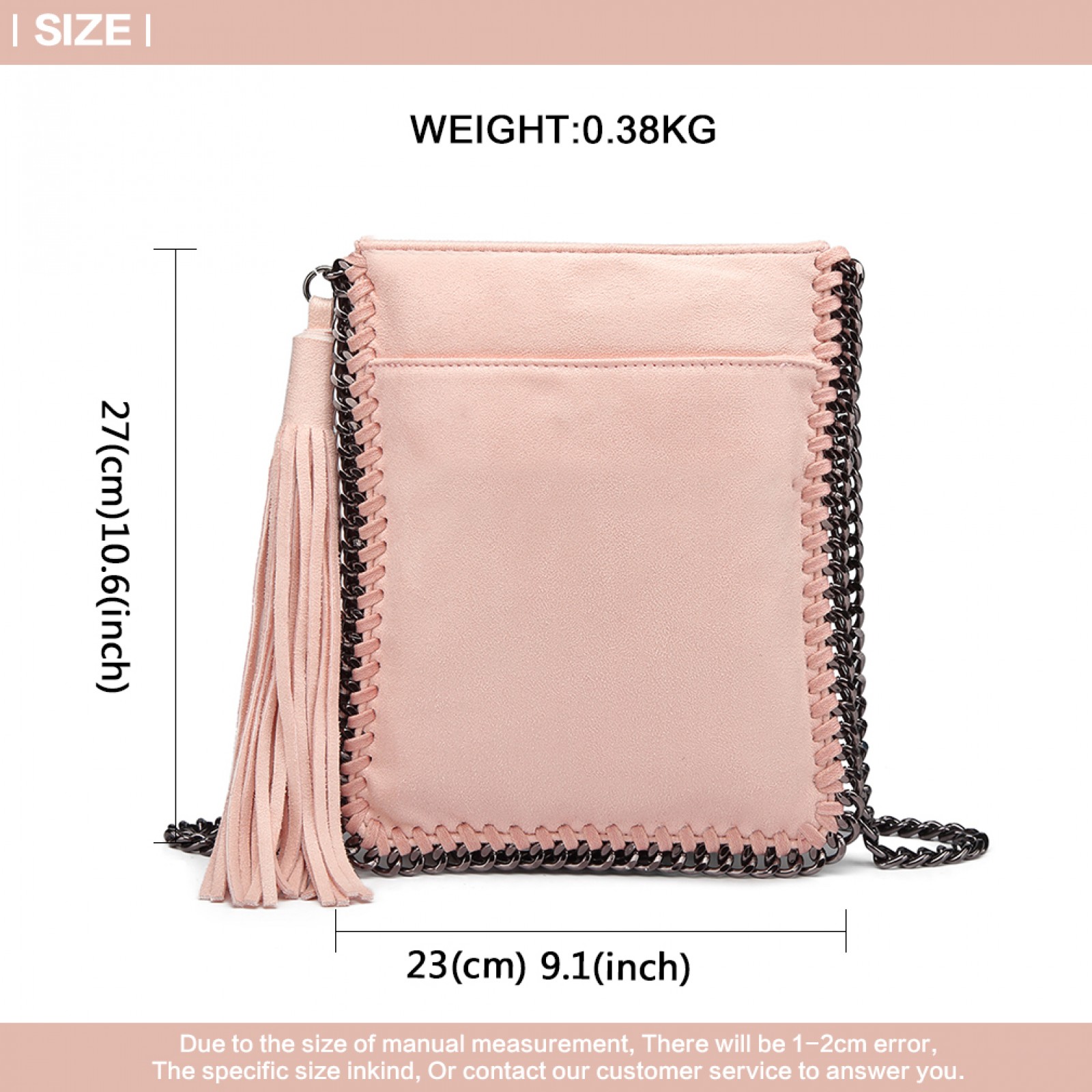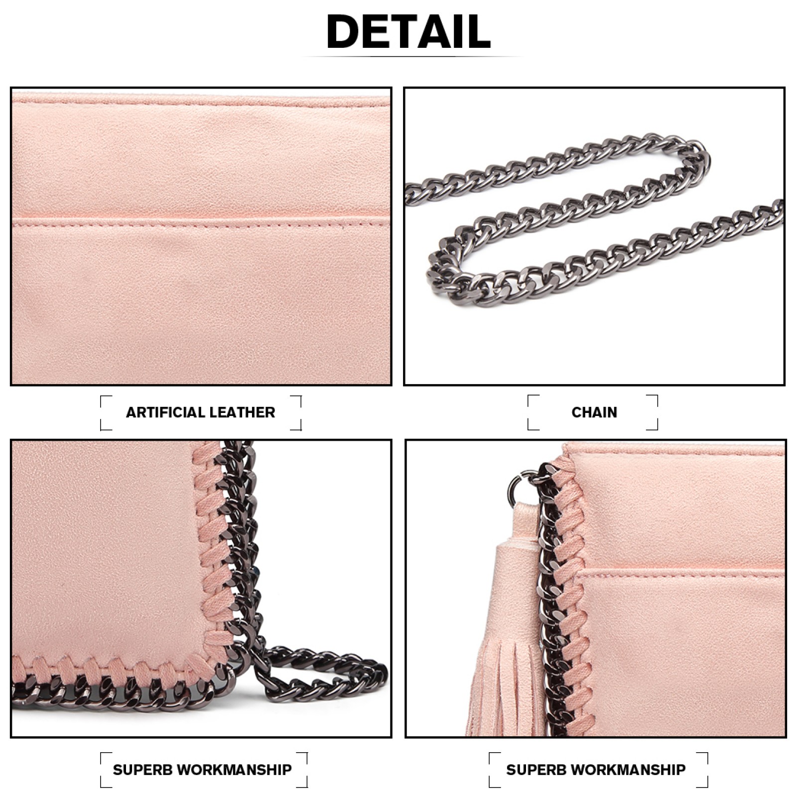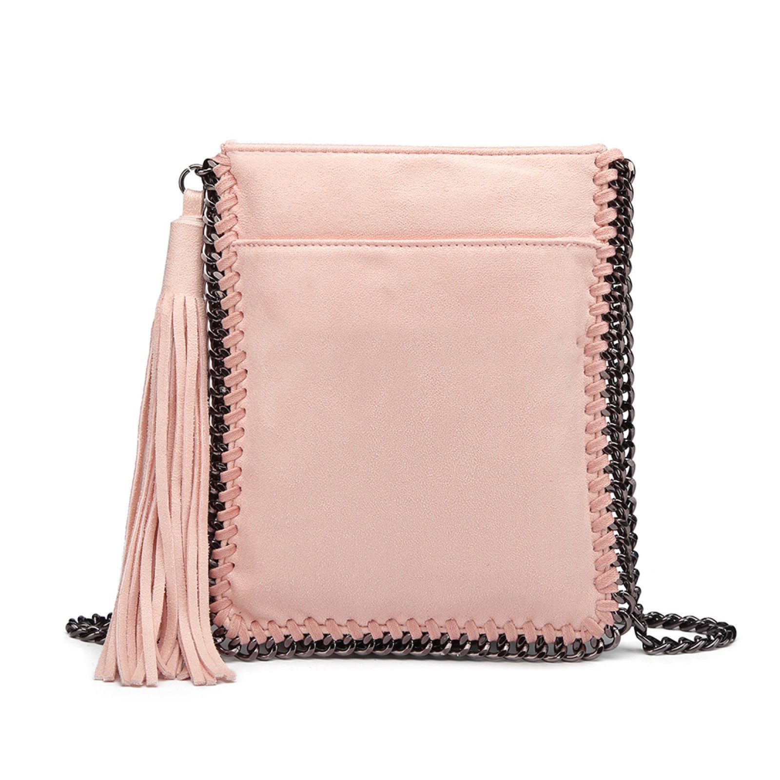 E6845 - Miss Lulu Leather Look Chain Shoulder Bag with Tassel Pendant - Pink