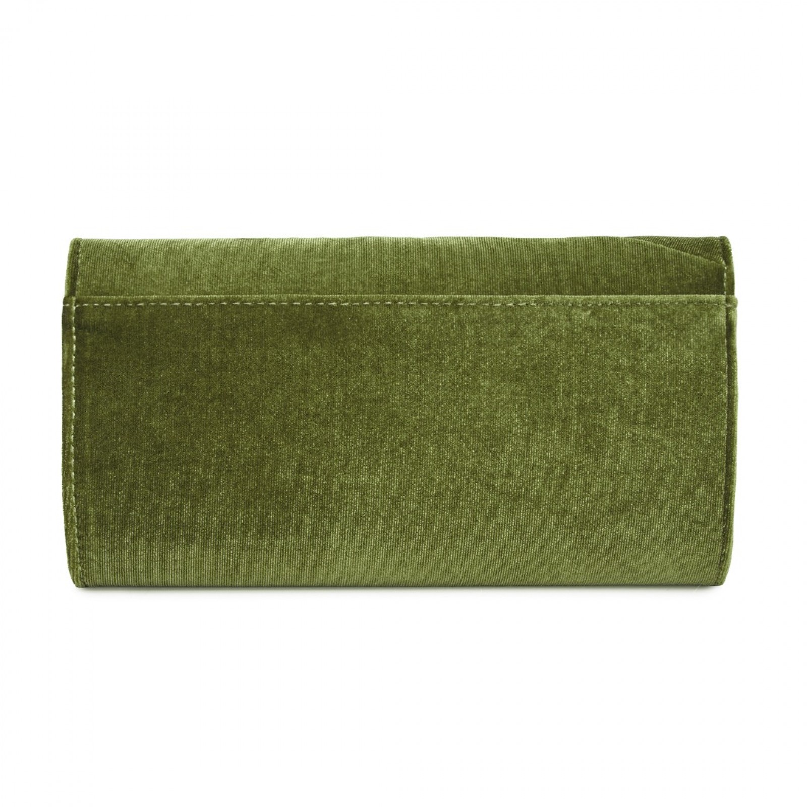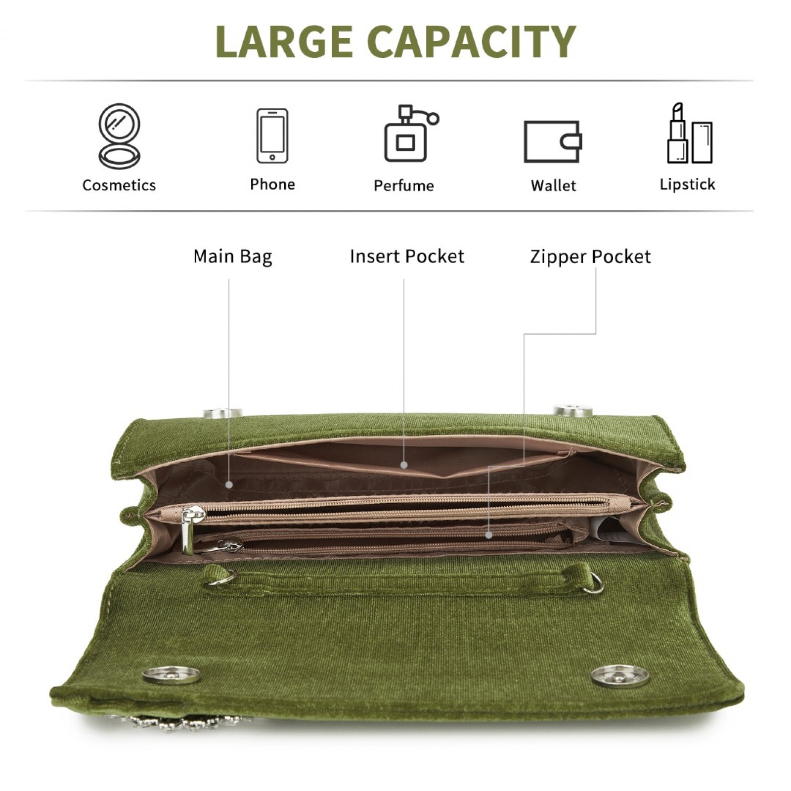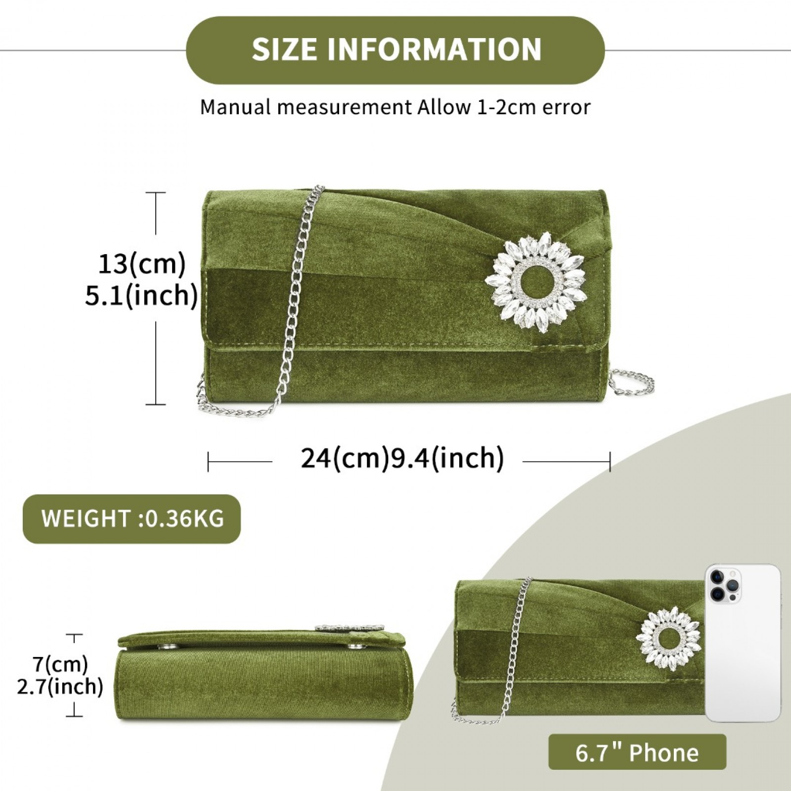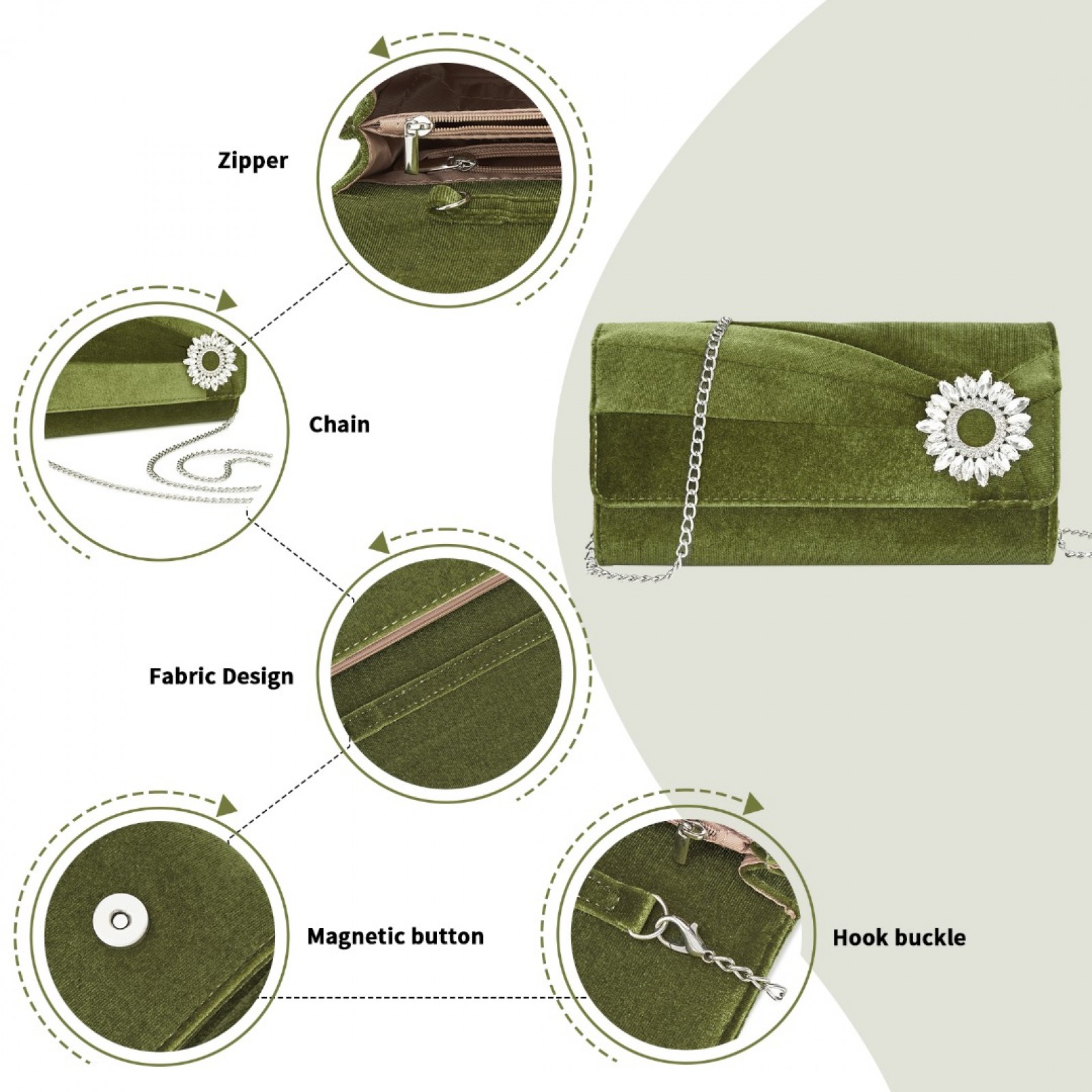 CLM2457 - Miss Lulu Elegant Velvet Evening Clutch with Crystal Ring & Detachable Chain Strap - Versatile Shoulder or Handheld Bag - Green