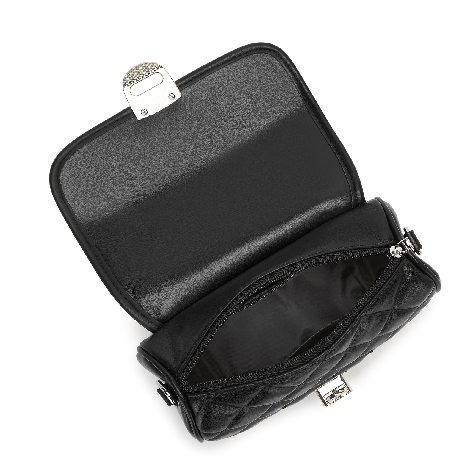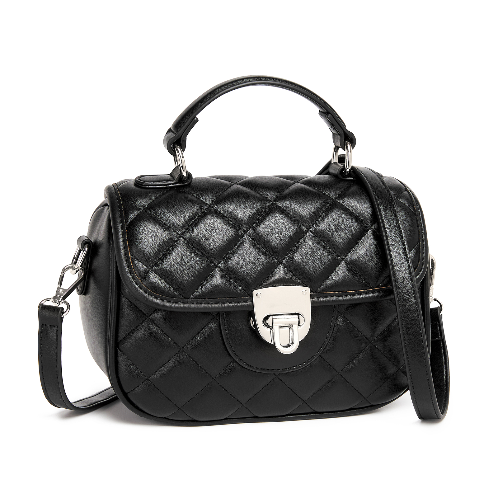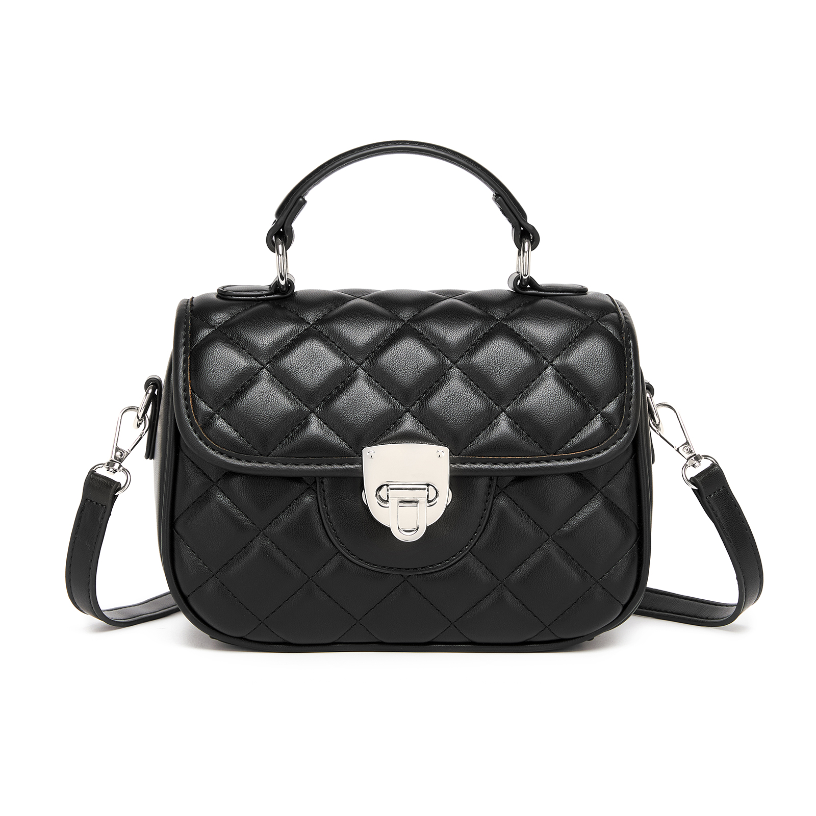 MSM2507 - Miss Lulu Practical Quilted PU Leather Crossbody Handbag with Secure Lock and Everyday Storage - Black