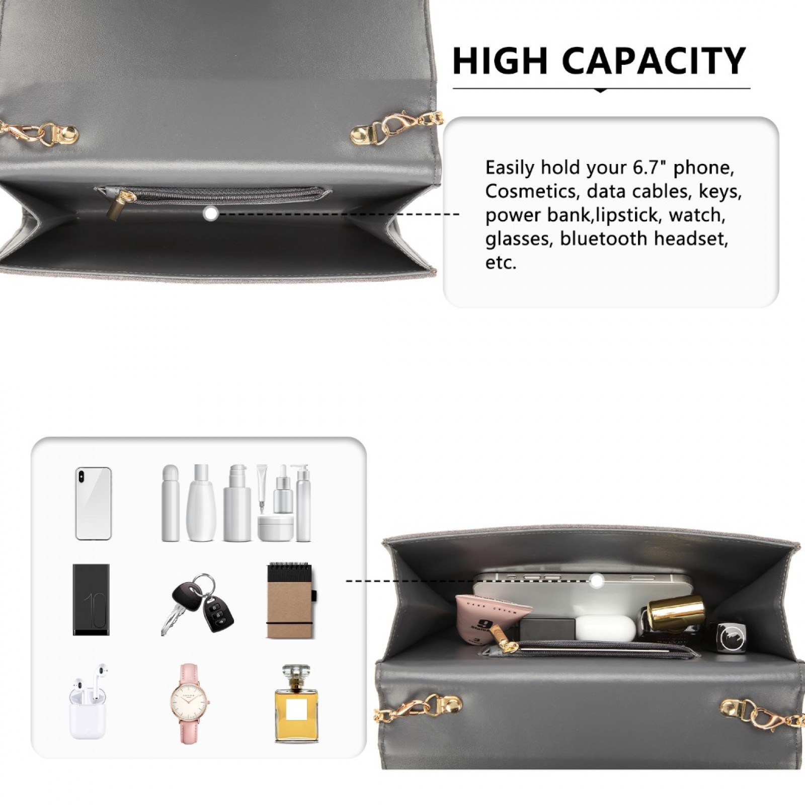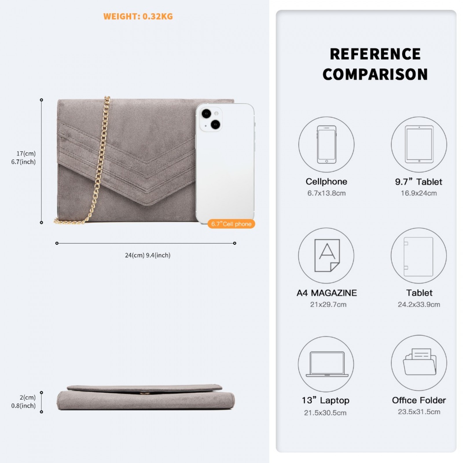 LP1963 - MISS LULU CHEVRON ENVELOPE CLUTCH BAG - GREY