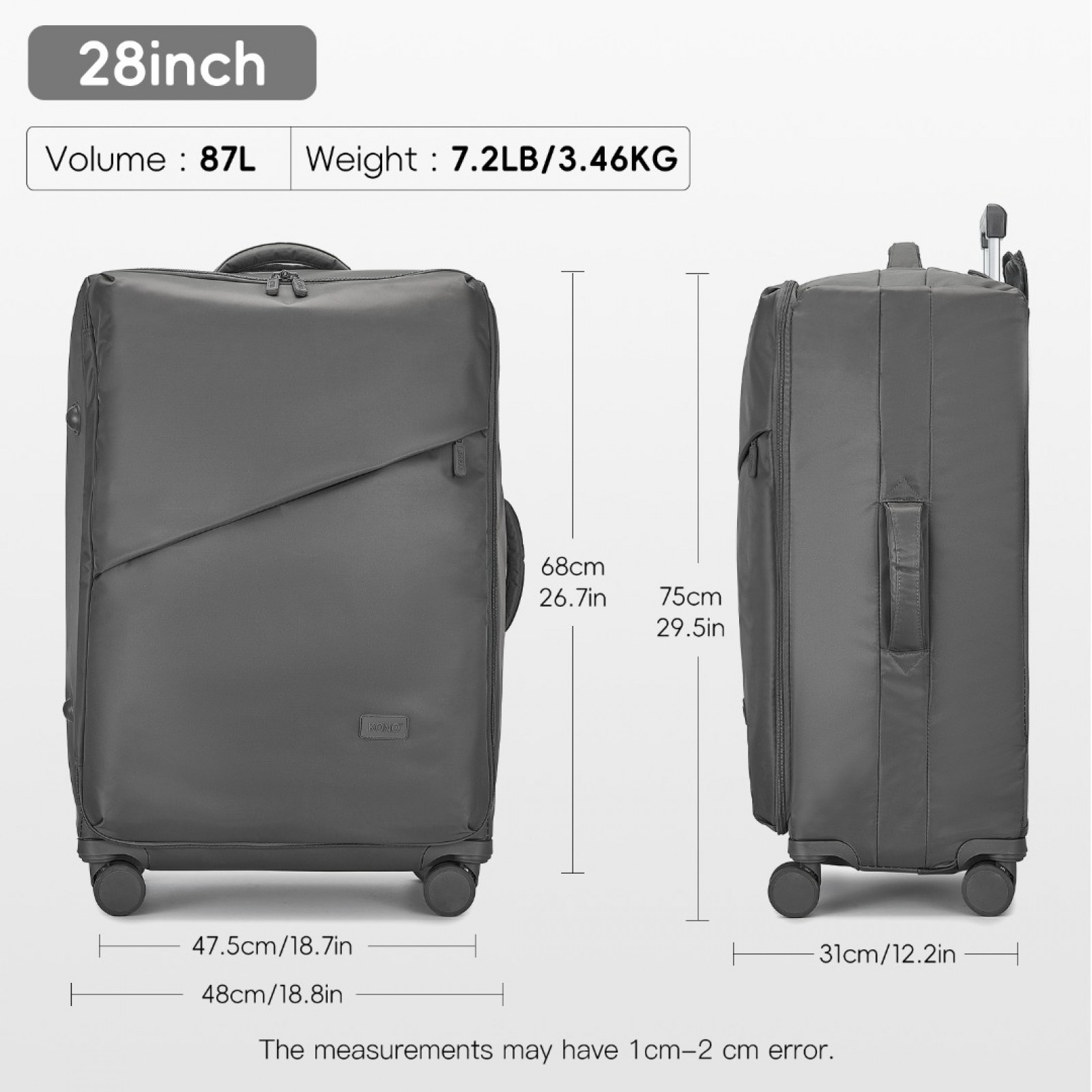 KSK2491 - Kono 28 Inch Lightweight Durable Soft Shell Suitcase with TSA Lock and Separate Wet/Dry Compartment - Grey