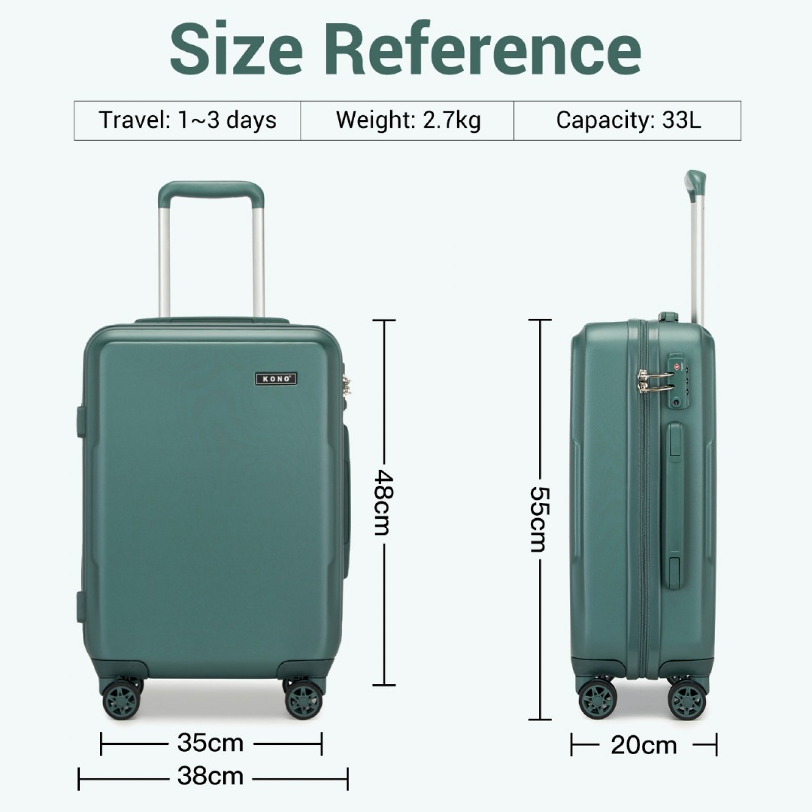 Whether you’re embarking on a weekend getaway or a longer adventure, this KONO suitcase combines style, functionality, and durability to make your travels stress-free and enjoyable.