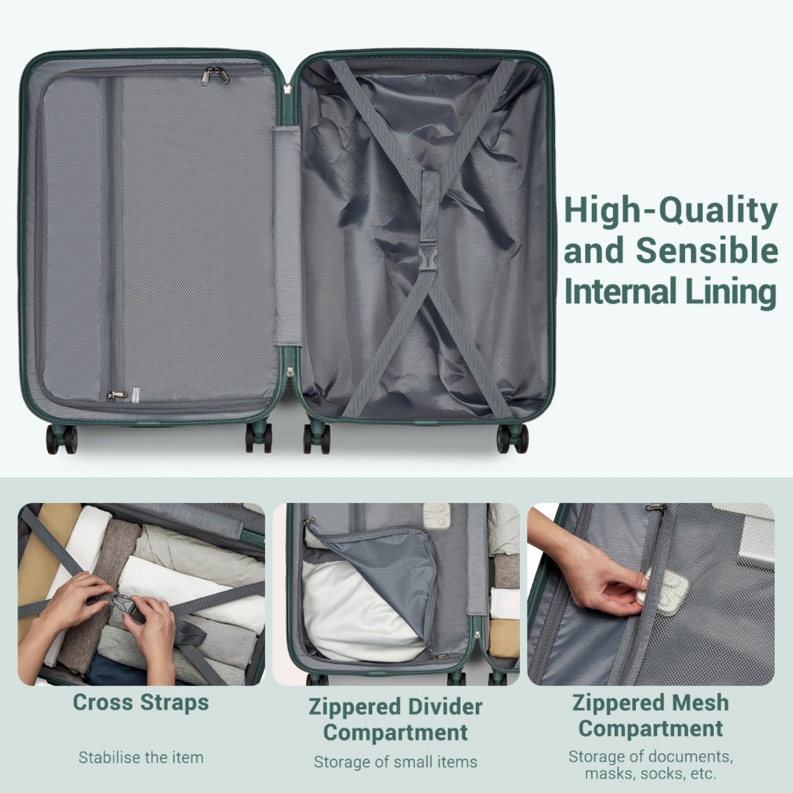 Outer material: Premium quality ABS+PC (lightweight, durable, impact-resistant, and offers excellent protection for your belongings).