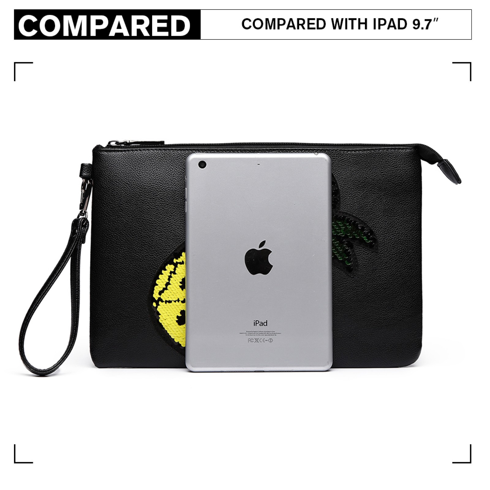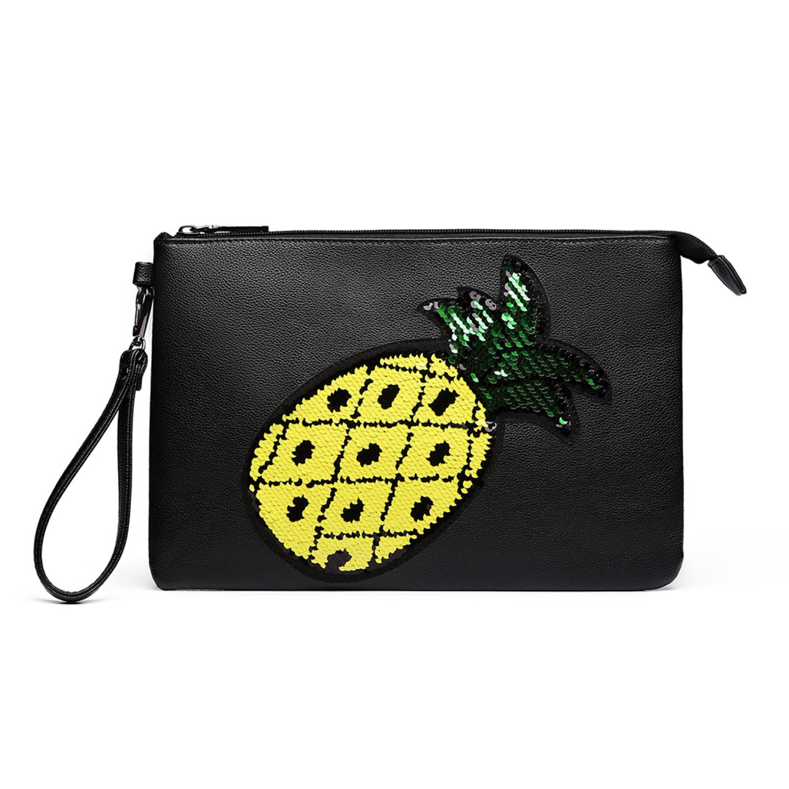 LT6822P-MISS LULU MISS LULU PU LEATHER SEQUIN PINEAPPLE CLUTCH BAG BLACK