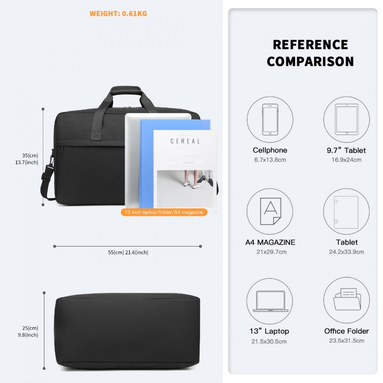 E1960L - Kono Lightweight Multi Purpose Unisex Sports Travel Duffel Bag - Black