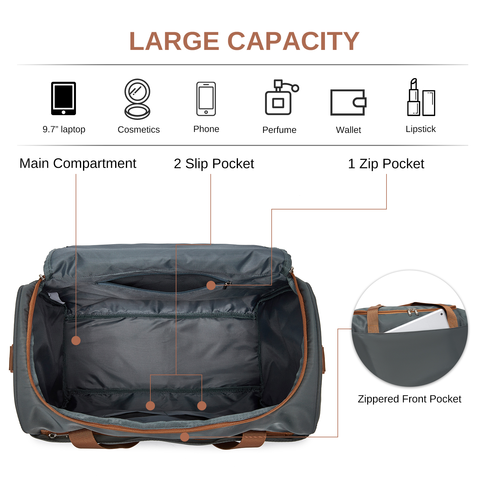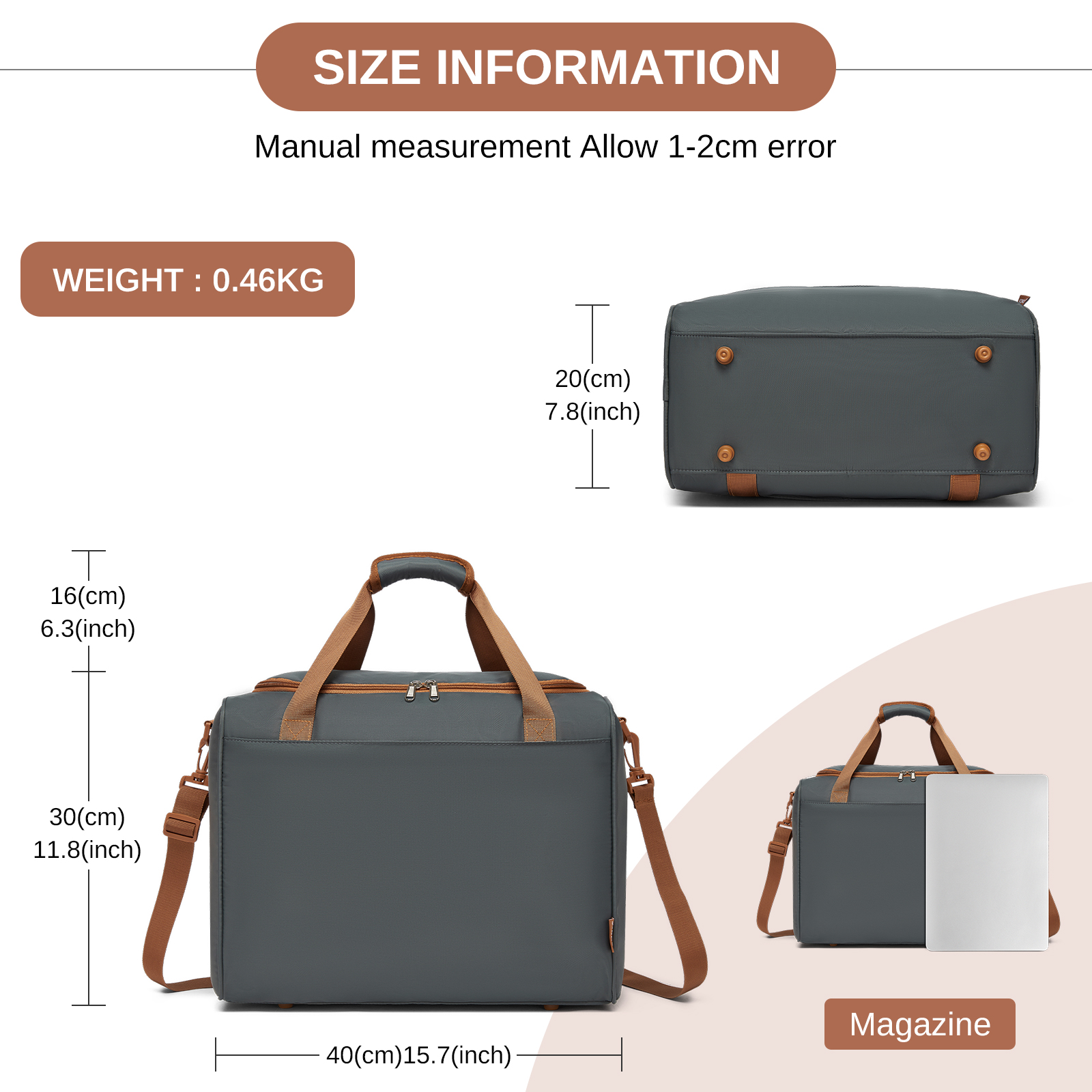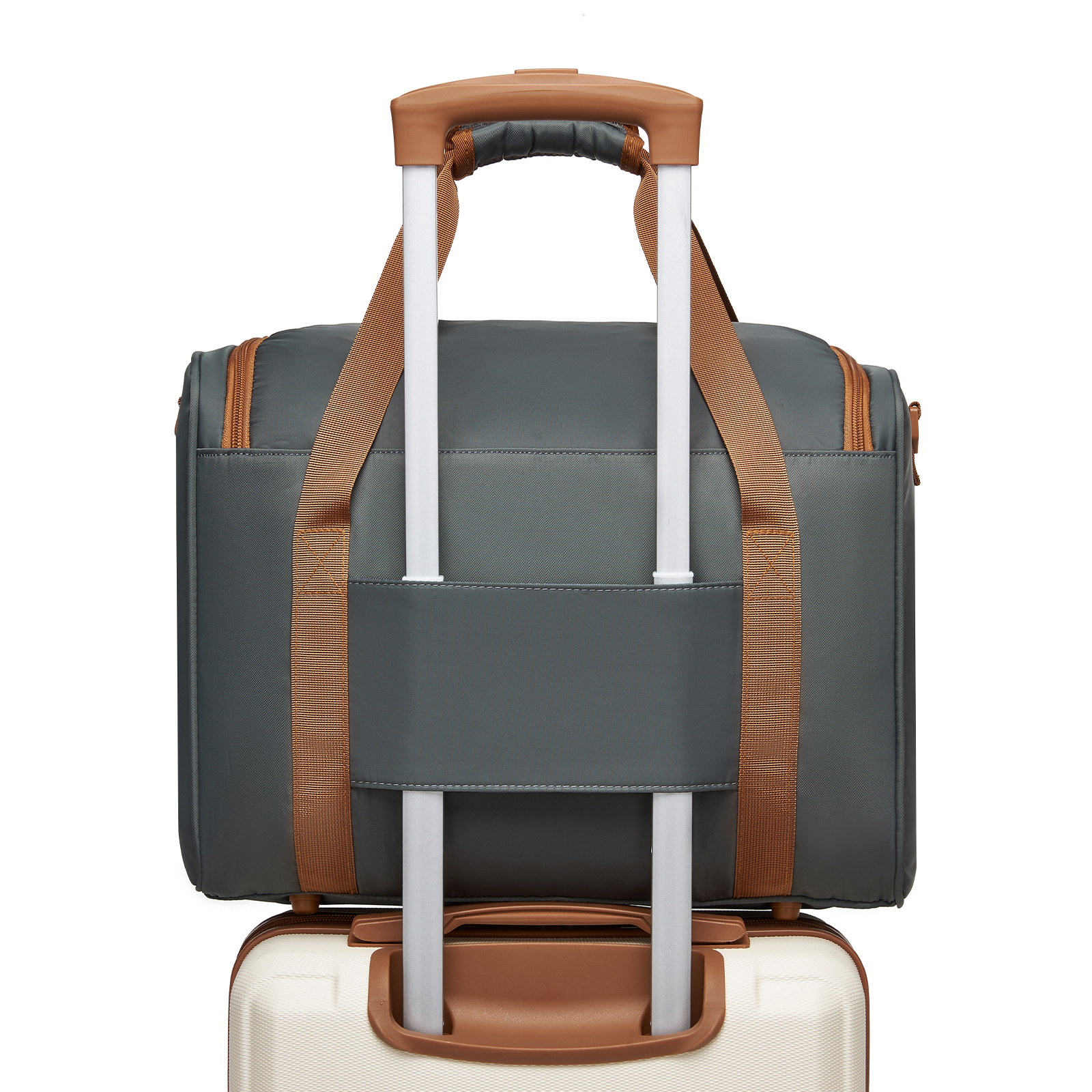 TVK2521 - Kono Compact and Lightweight 40×30×20 Personal-Item Travel Bag - U-Zip Wide Opening And Trolley Sleeve - Grey and Brown