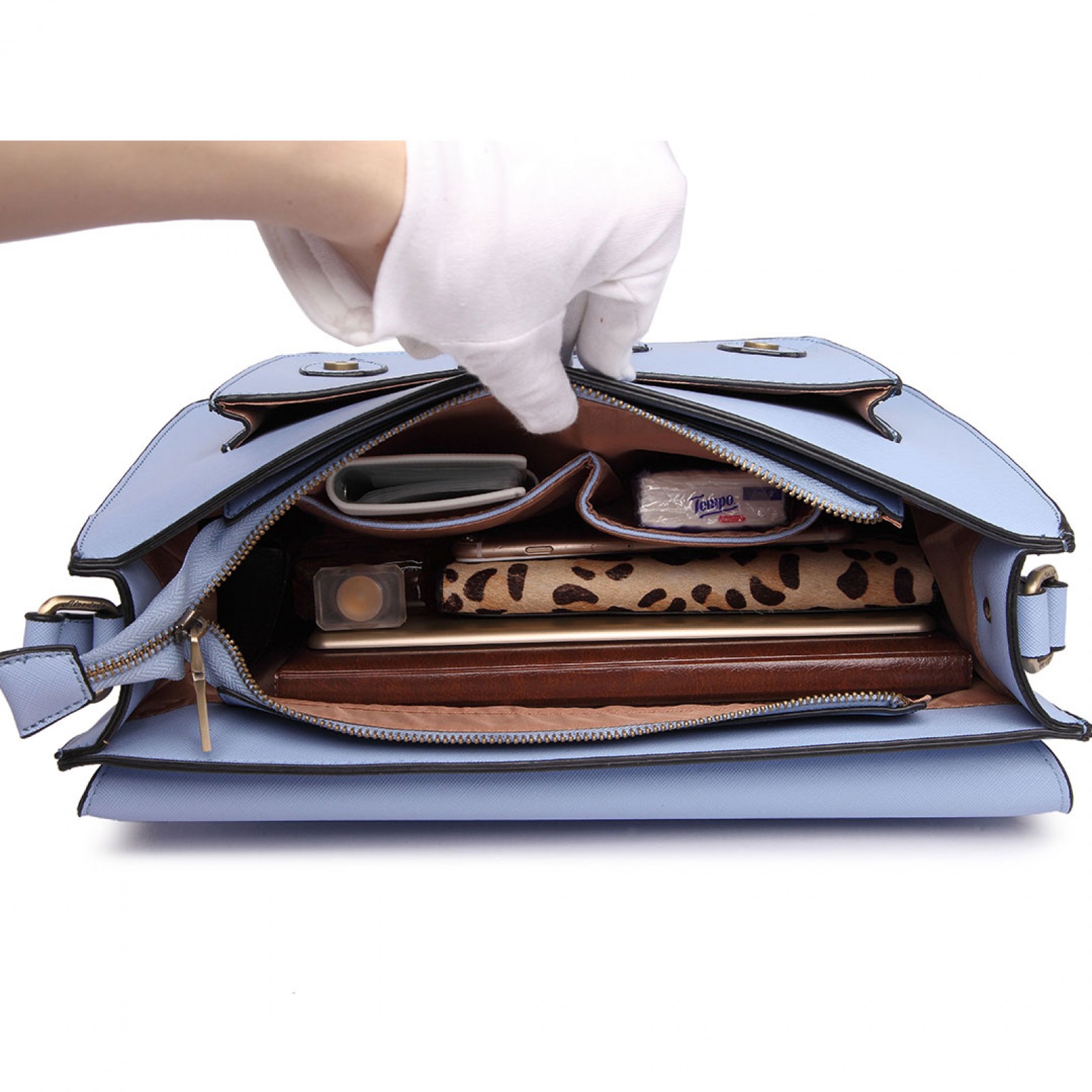 LT1665 - Miss Lulu Plain Leather Look School Work Satchel - Light Blue