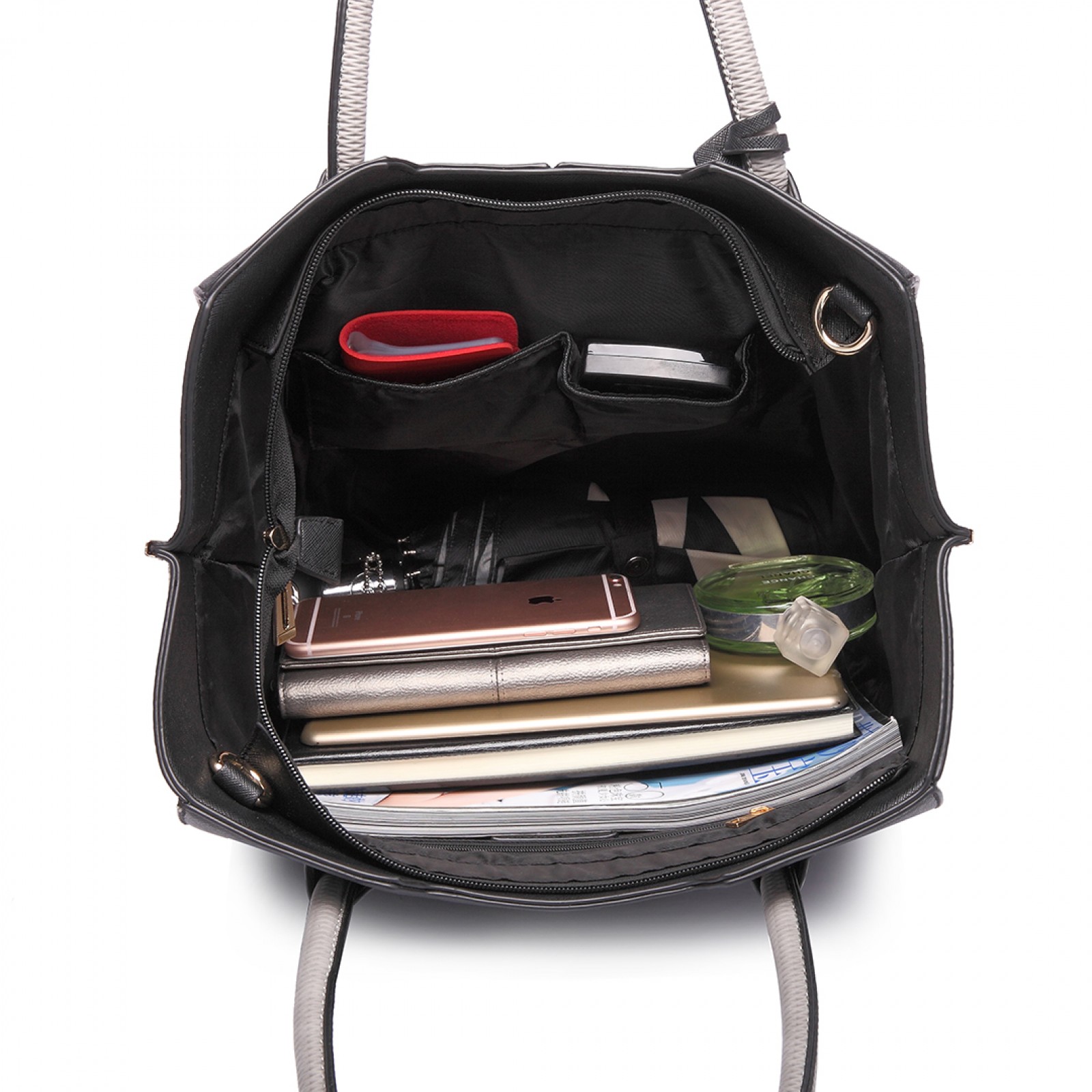 LT6625 - Miss Lulu Ladies Large Tote Bag Faux Leather Black