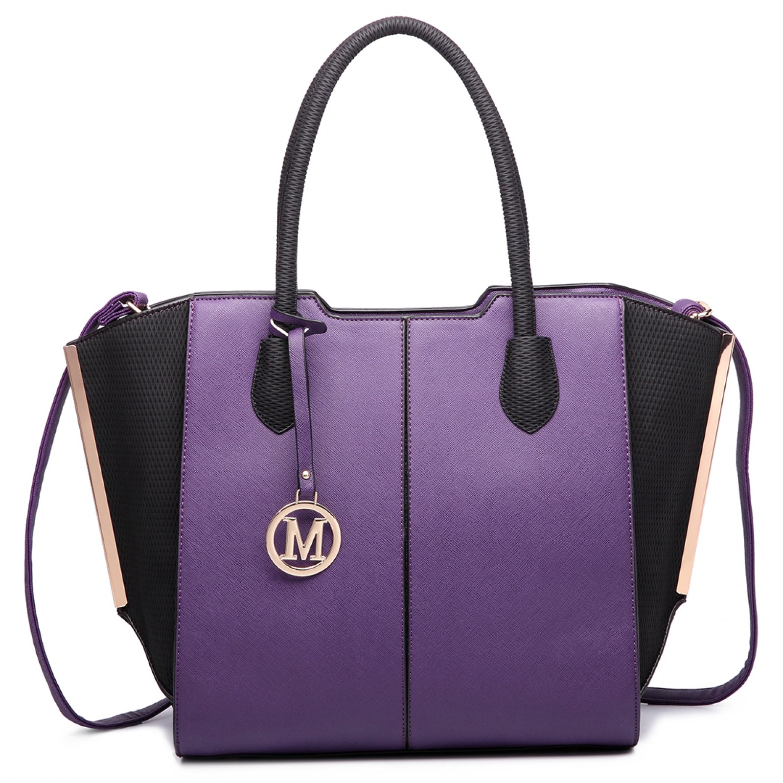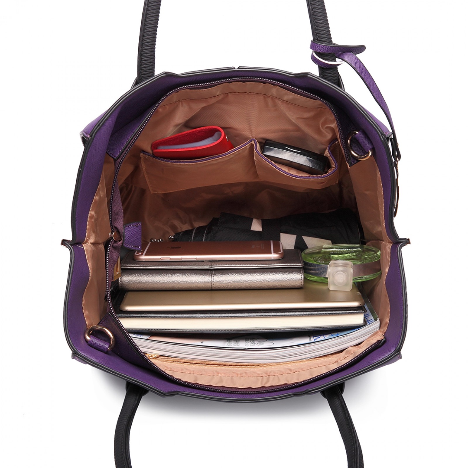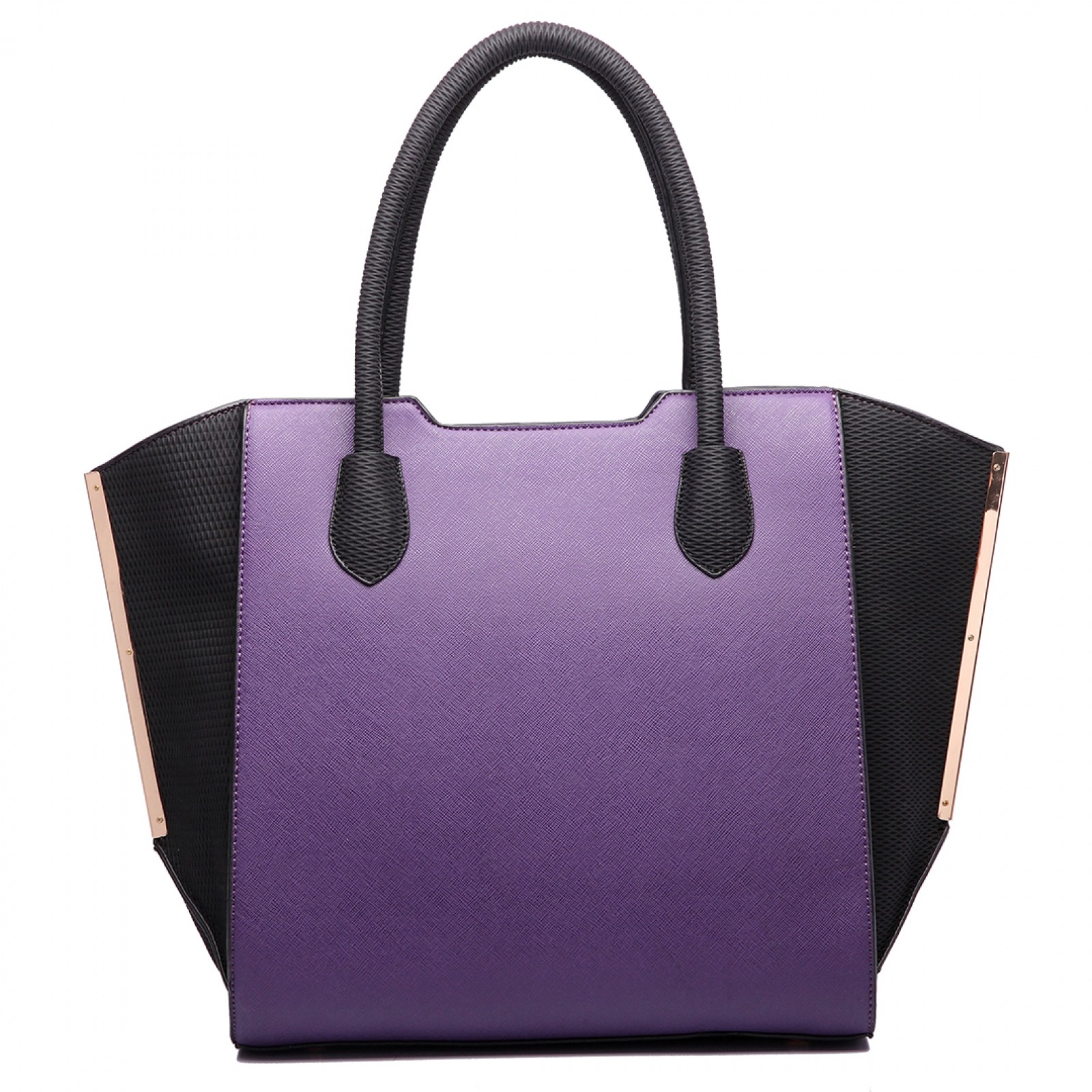 LT6625 - Miss Lulu Ladies Large Tote Bag Faux Leather Purple