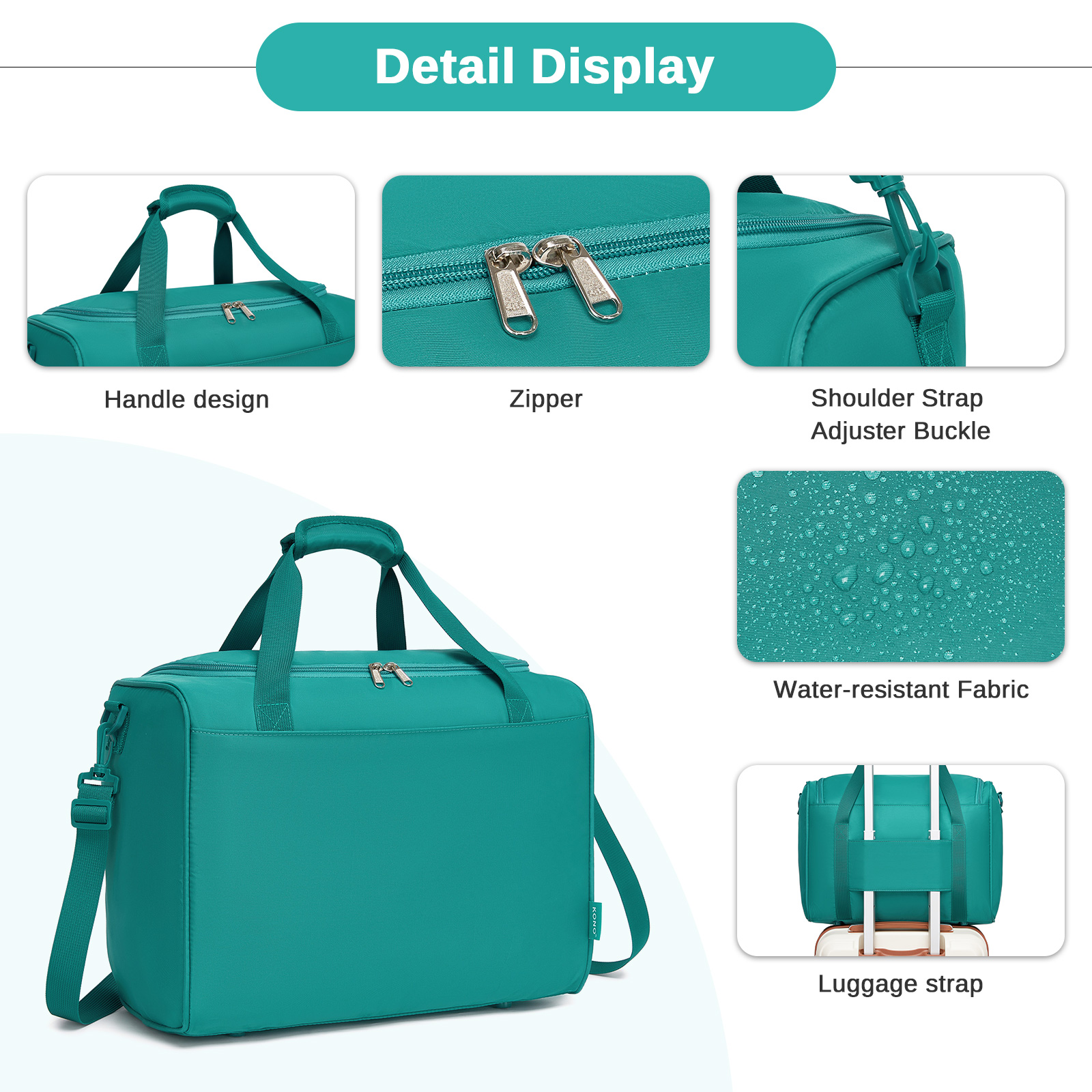 TVK2521 - Kono Compact and Lightweight 40×30×20 Personal-Item Travel Bag - U-Zip Wide Opening And Trolley Sleeve - Blue and Green