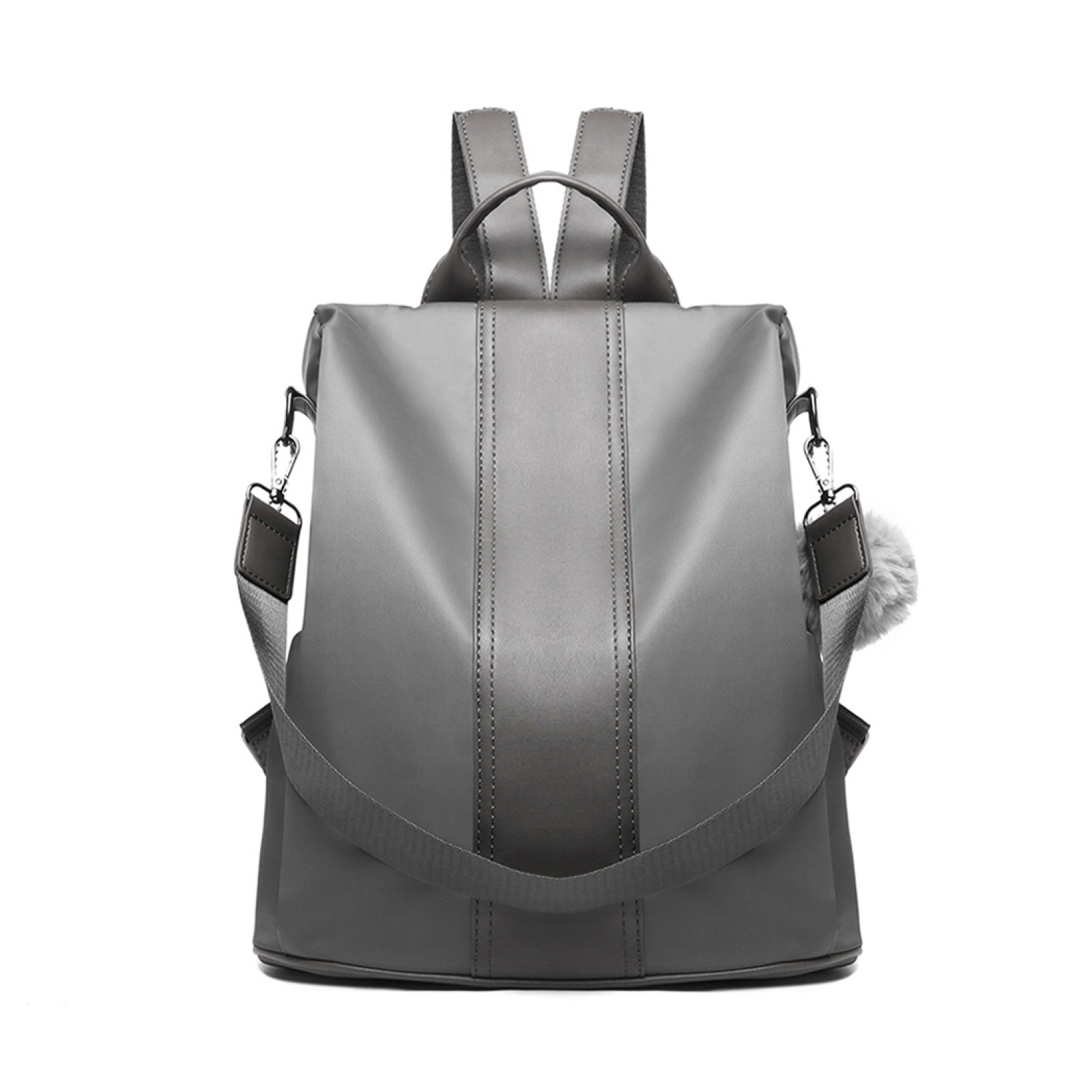 LG1903 - Miss Lulu Two Way Backpack Shoulder Bag with Pom Pom Pendant - Grey