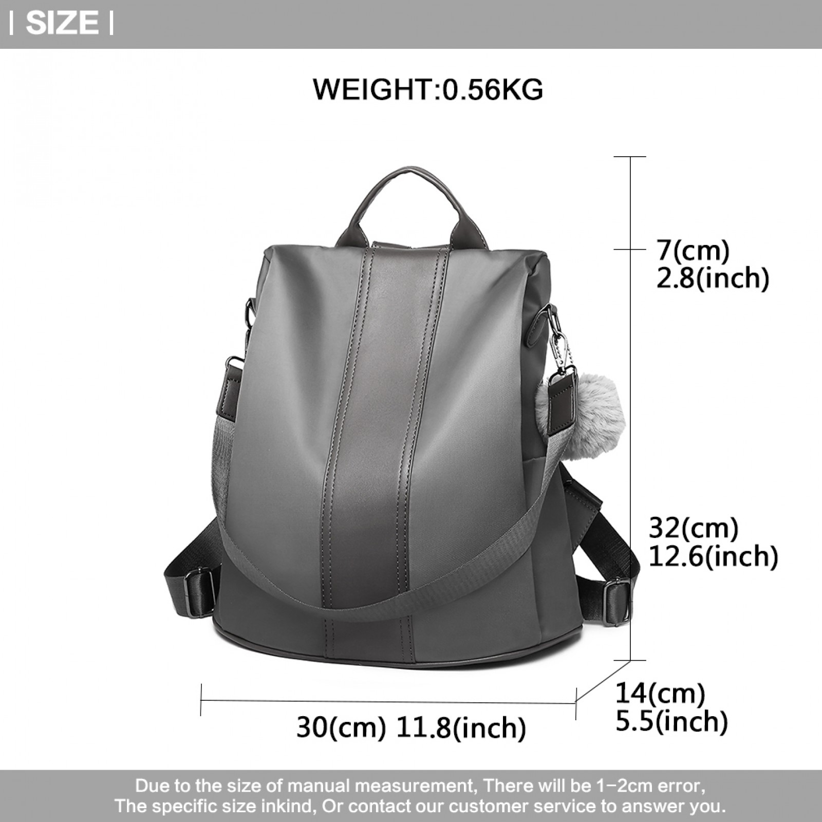30cm (L) * 14cm (W) * 32cm (H) / 11.8" (L) * 5.5" (W) * 12.6" (H); 0.56kg (All measurements are external, internal measurements may differ approx 1-2cm)
