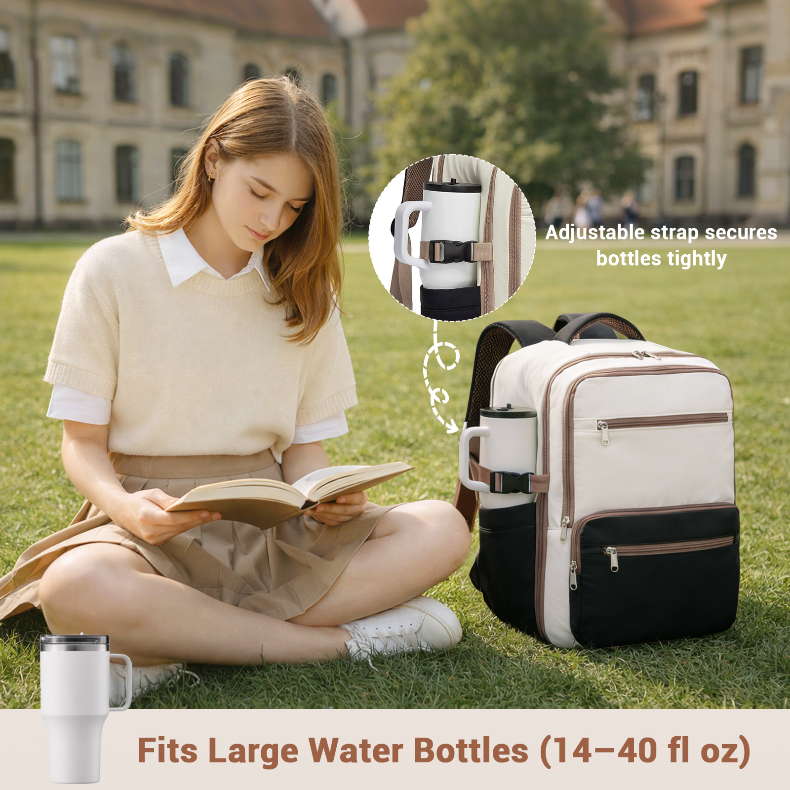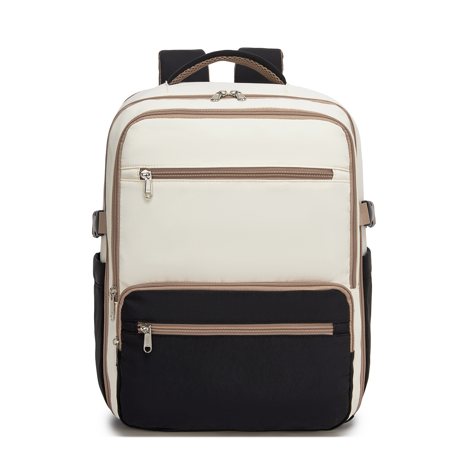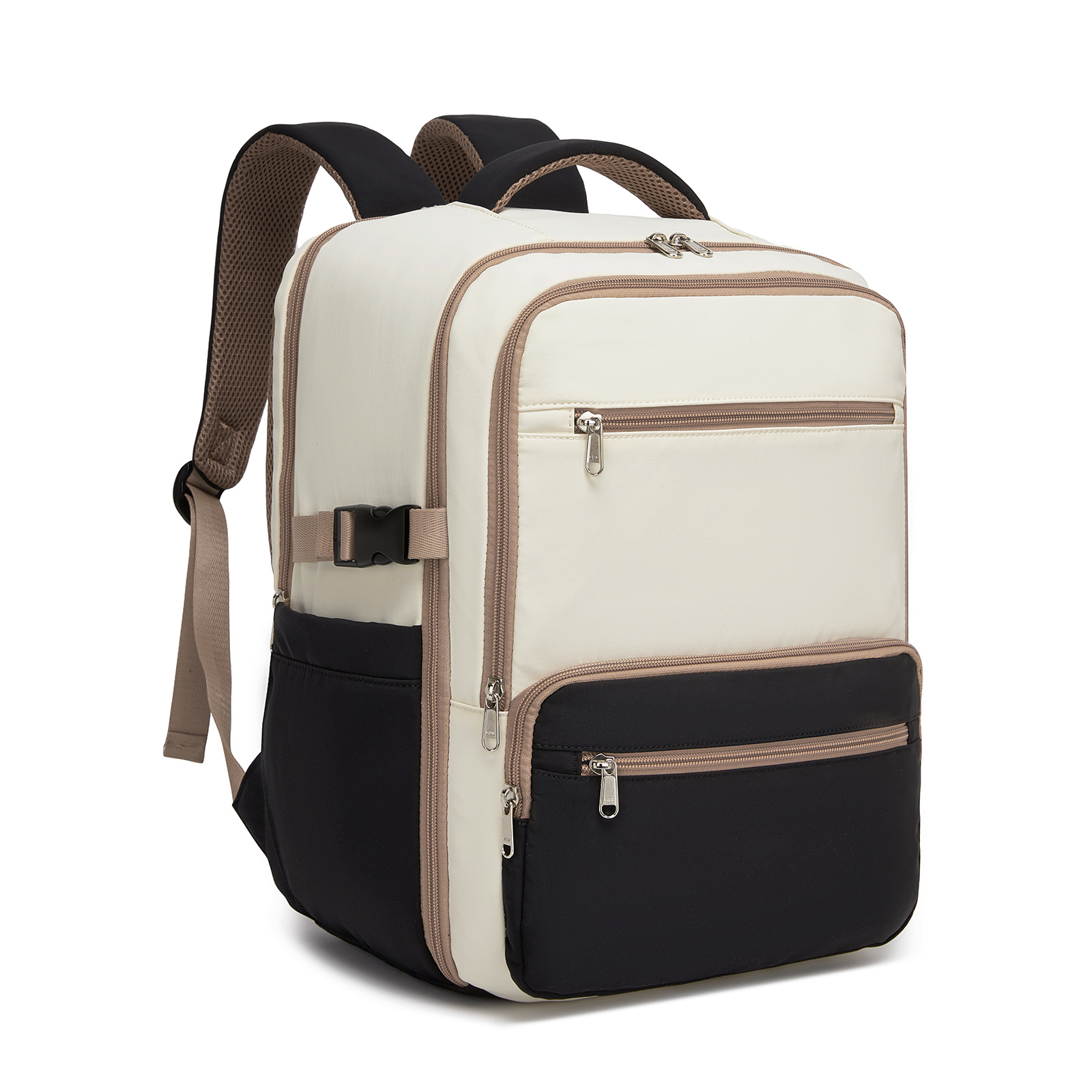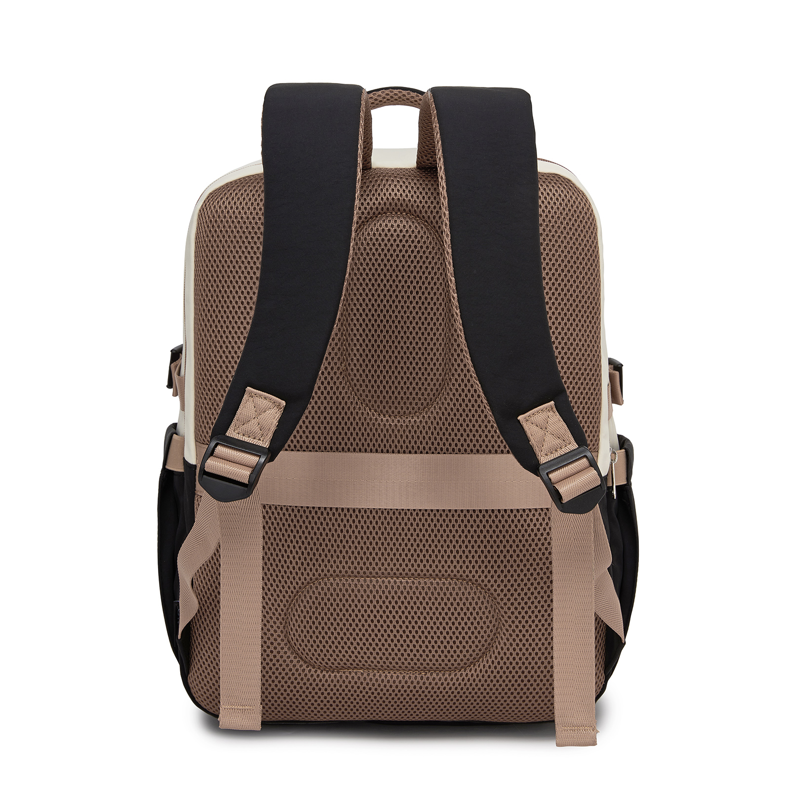 BPK2529 - Kono Compact 15.6" Laptop Travel Backpack - 40x30x20cm, Fits Under Seat Storage, with Trolley Sleeve - Beige and Black